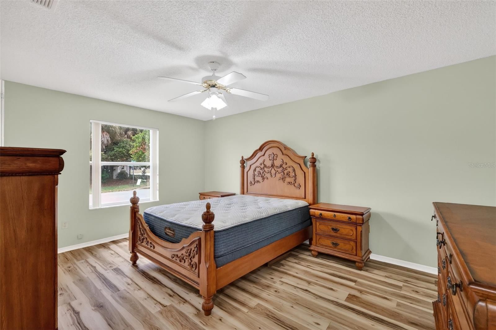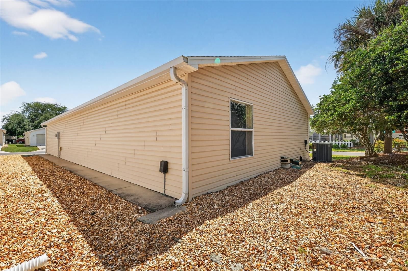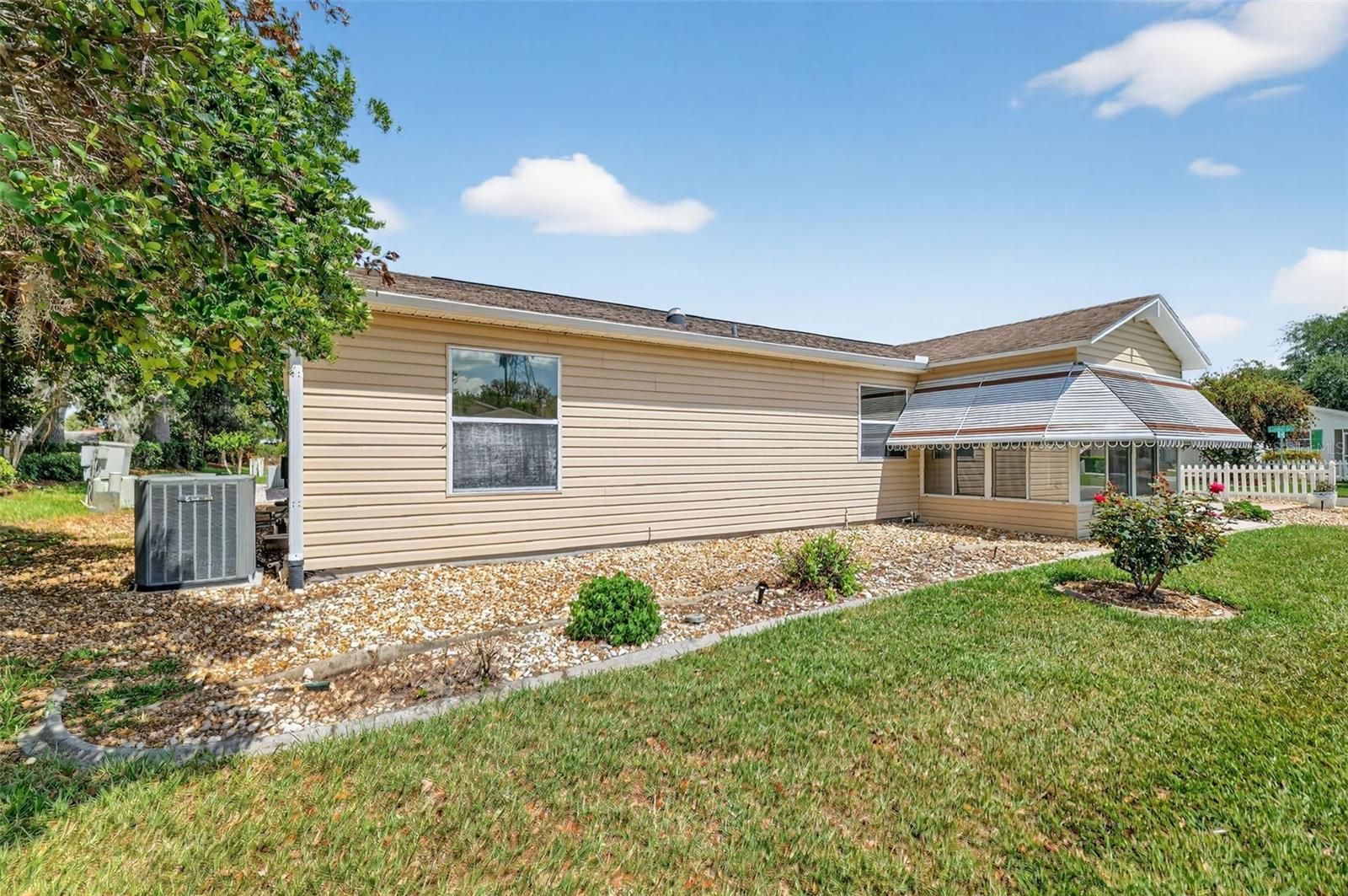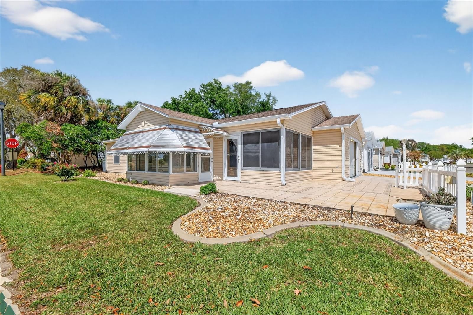 FANTASTIC 2/2 Colony Patio Villa featuring a bonus FLORIDA ROOM, GLASS-ENCLOSED LANAI, LOW-MAINTENANCE STONED planting beds, and EXTENDED DRIVEWAY for additional parking - ideally situated on a LARGE CORNER LOT in the highly sought after Village of Santo Domingo - JUST MINUTES to BOTH Spanish Springs Town Square and Lake Sumter Landing! BOND PAID! Welcoming you to this WONDERFUL home is an EXPANSIVE 23’x25’ FRONT PATIO - perfect for RELAXING in the Florida sunshine or ENJOYING fun-filled OUTDOOR ENTERTAINING with friends and family! From the patio, step into the GLASS-ENCLOSED LANAI featuring THREE SETS of DOUBLE windows with SOLAR shades, a ceiling fan, and a TILED floor. Enter through the front door into the OPEN-CONCEPT layout of the living, dining, and kitchen. Just off of this main area lies a 8’x12’ bonus under-air FLORIDA ROOM with a French door to the front patio. This FABULOUS room provides an ADDITIONAL 96sf of under-air living space and boasts SURROUNDING windows with convenient awnings and distant views of the El Diablo Golf Course. The AMAZING kitchen features light wood-grain cabinetry with PULL-OUTS, NEUTRAL countertops, PANTRY closet, breakfast bar, and an EAT-IN DINETTE area. There’s also a skylight that fills the room with ABUNDANT NATURAL LIGHT. The primary bedroom features a LUXURY VINYL PLANK flooring and as GENEROUS WALK-IN closet. Its en-suite bathroom is well-appointed with light wood-grain cabinetry, WALK-IN shower, and a LINEN closet. Bedroom two has a built-in closet and the second bathroom offers a light wood-grain vanity with NEUTRAL top, WALK-IN shower, and a hallway LINEN closet. Completing the package is an 18’x22’ one and a half car garage with convenient LAUNDRY area, shelving, and PLENTY of space for a car and golf cart! DON’T MISS YOUR OPPORTUNITY TO MAKE THIS WONDERFUL HOME YOUR OWN! The Village of Santo Domingo is CONVENIENTLY LOCATED near BOTH Spanish Springs Town Square and Lake Sumter Landing; Tierra Del Sol and La Hacienda Recreation Centers, Country Clubs, and Championship Golf Courses; multiple swimming pools and pickleball; and 466 with abundant shopping, restaurants, banks, medical, and more! PLEASE WATCH OUR WALKTHROUGH VIDEO OF THIS BEAUTIFUL HOME IN AN AMAZING LOCATION! Call today to schedule your Private Showing or Virtual Tour.