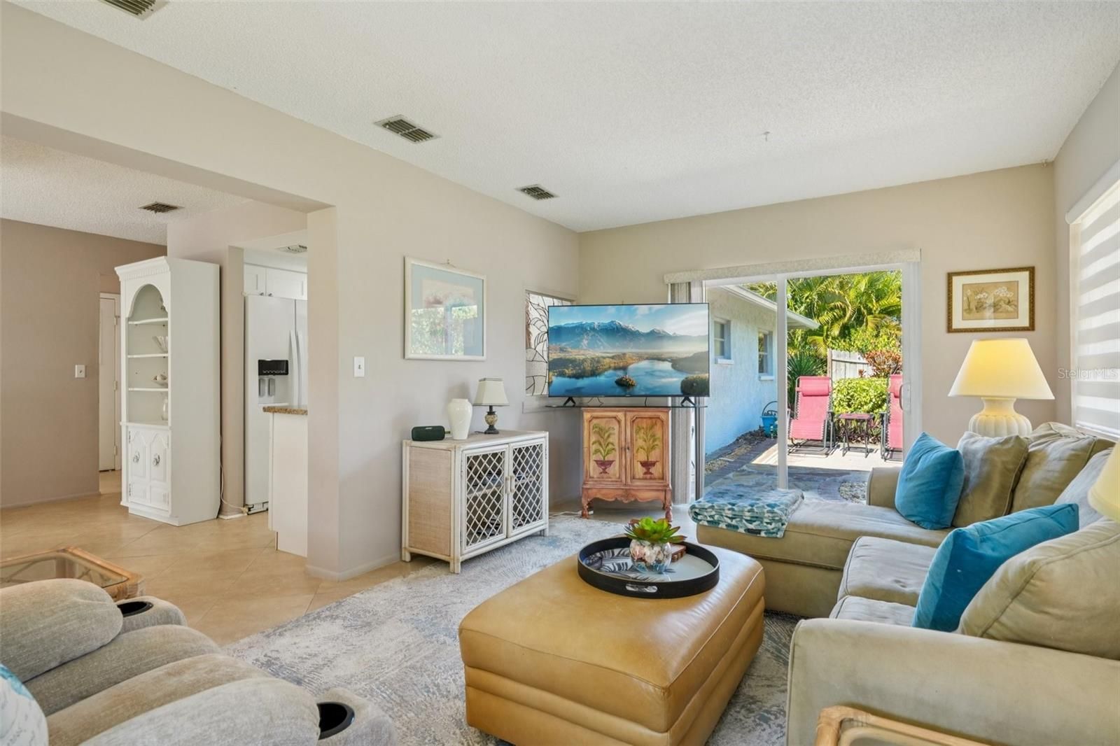 Brand NEW ROOF and Peaceful Greenbelt Views in Highland Lakes! Opportunity knocks in our area's most sought-after 55+ active adult community! This beautifully updated Concord model offers over 1,500 square feet of brilliantly designed living space and fantastic modern upgrades. From the moment you arrive, you are greeted by lovely curb appeal, a freshly painted driveway, and a welcoming front patio—the absolute perfect spot to sip your morning coffee and wave to your friendly new neighbors. Best of all? The roof is brand new (just one week old!), giving you total peace of mind for years to come! As you open the front door, gorgeous luxury vinyl floors lead you into a generous living room that easily accommodates both seating and dining areas. At the heart of the home is a beautifully remodeled kitchen featuring gleaming granite countertops. It perfectly opens up to a versatile dining or sitting area that flows seamlessly into the back lanai. A newer sliding glass door invites you out to your rear patio, where you can relax and look out over a large, peaceful greenbelt. Tucked quietly on one side of the home are two generous-sized bedrooms. The primary suite serves as a true retreat, boasting a beautifully remodeled en-suite bathroom with stunning contemporary tile in the walk-in shower. Add in the convenience of a large inside laundry room complete with a utility sink, and this home truly checks every box! Where else can you find this much value? Your Highland Lakes HOA membership remains low and unlocks a premier lifestyle that feels like a year-round vacation. Your community amenities include Free Golf for Two: No greens fees on the private 27-hole executive golf course, Two community pools, tennis courts, and shuffleboard, Lake Tarpon Access: Enjoy private boat access to the lake, plus RV and boat storage, an active clubhouse and lodge featuring performing arts, bowling leagues, fitness facilities, arts & crafts, and so much more! This turn-key gem won't last long. Schedule your showing today and start living the Highland Lakes lifestyle!