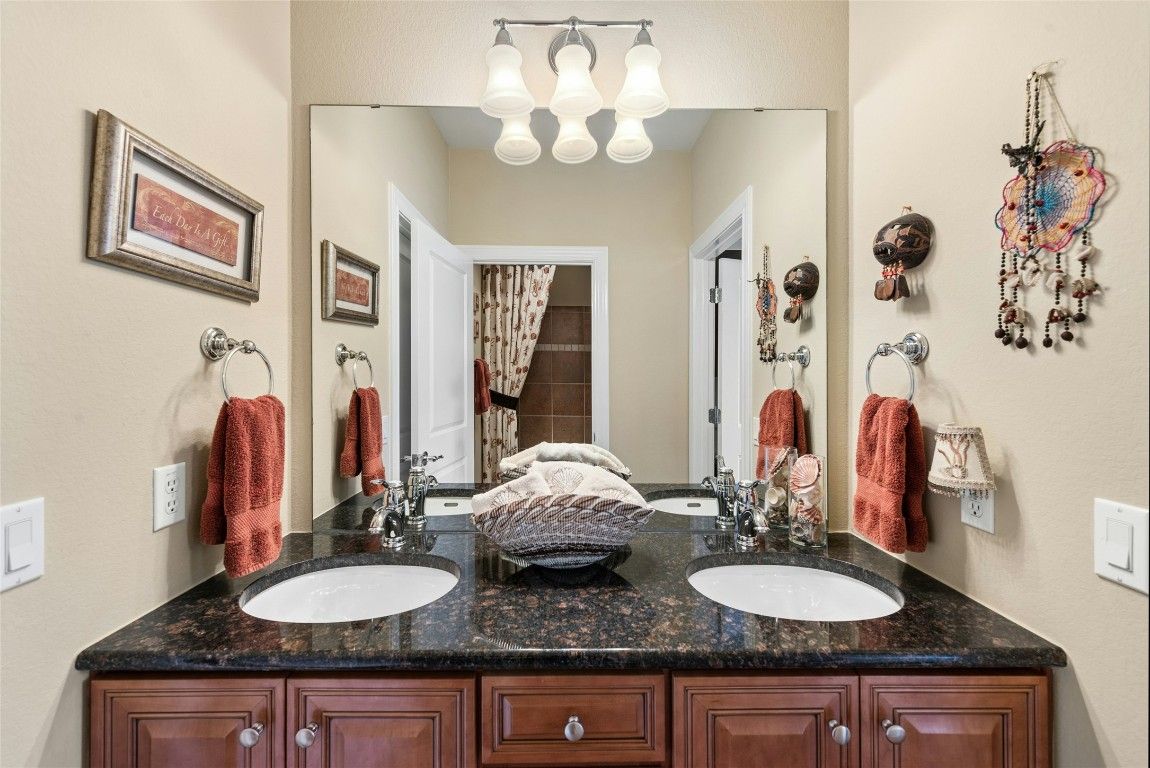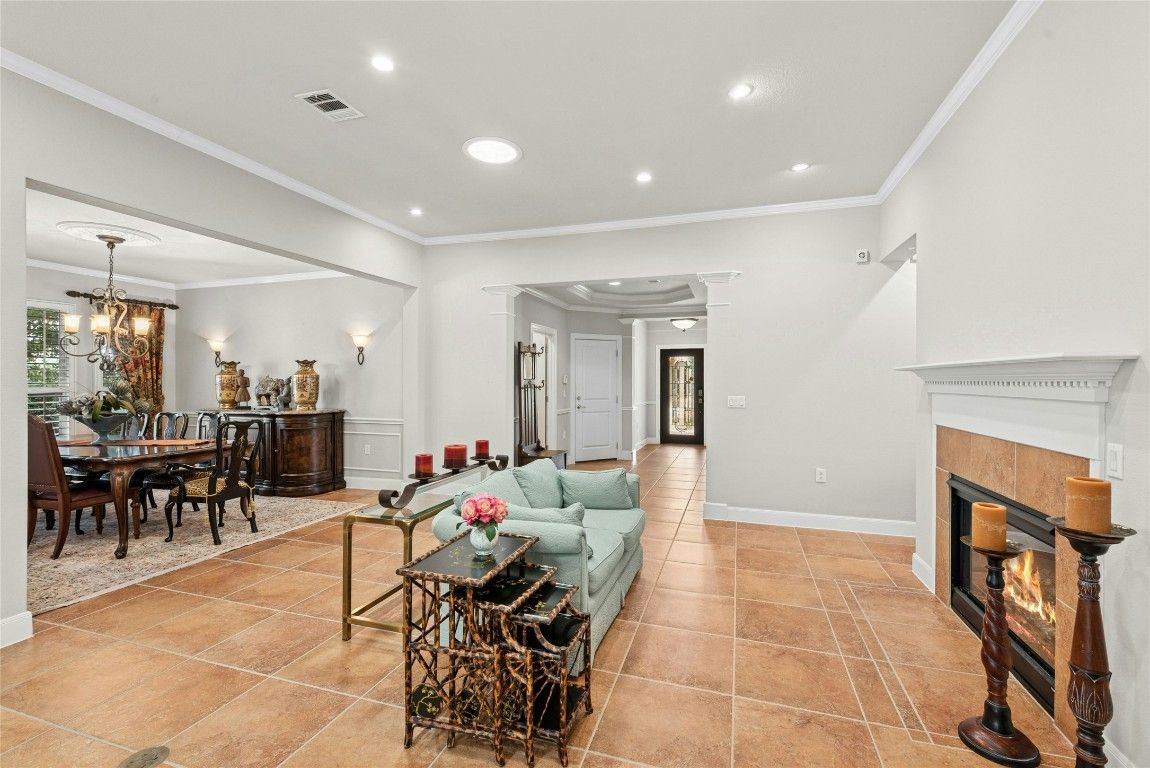 - Ceiling Fan(s), Crown Molding, Separate/Formal Dining Room, Double Vanity, Entrance Foyer, French Door(s)/Atrium Door(s), Granite Counters, Kitchen Island, Multiple Living Areas, Multiple Dining Areas, Main Level Primary, NoInteriorSteps, Pantry, Recessed Lighting, Walk-In Closet(s), Wired for Sound
