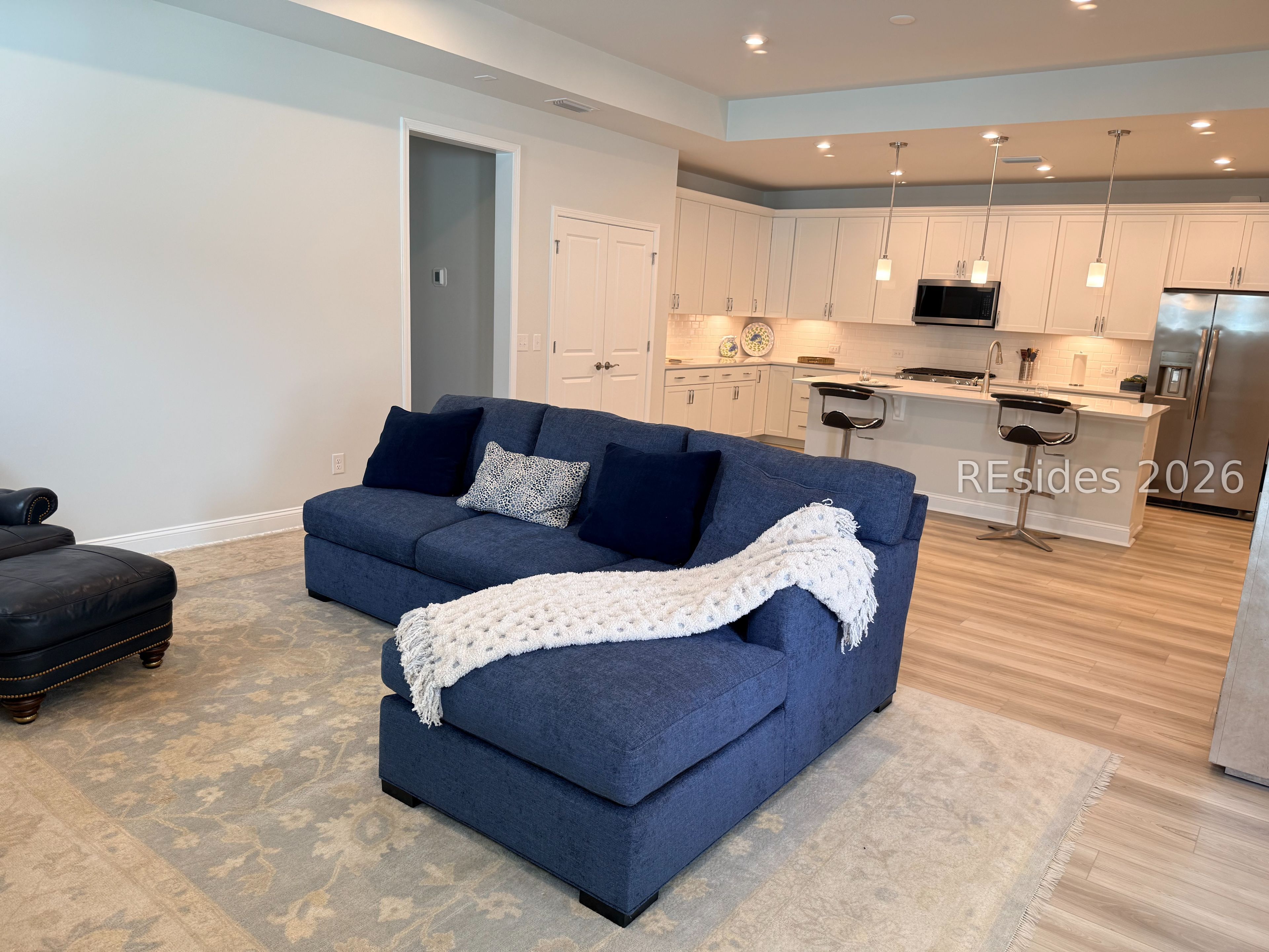 Caledonia Duet with Deluxe Upgrade Package located in the newest area of Sun City Hilton Head. Beautifully upgraded waterfront home offers modern design and the security of a private gated entrance. The home welcomes you through a covered lanai entry into a spacious great room concept designed for comfortable living and entertaining. The gourmet kitchen features an oversized island with quartz countertops, abundant cabinetry, and a generous pantry for storage. The upgraded KitchenAid appliance package includes a gas range. The private owner's suite offers a relaxing retreat with a large walk-in closet, double quartz vanity, and a separate water closet for privacy. Deluxe lighting and trim package throughout the home. New GE W&D. Covered and screened waterfront lanai patio, ideal for enjoying the Lowcountry setting. Walk to the NEW 42,000sq-ft amenity center. 3 golf courses & many restaurants.
