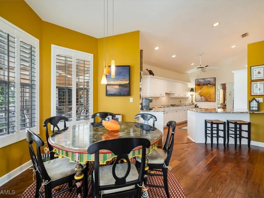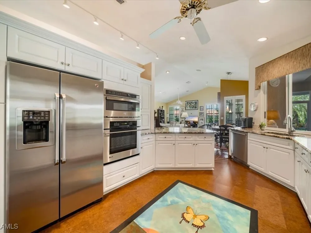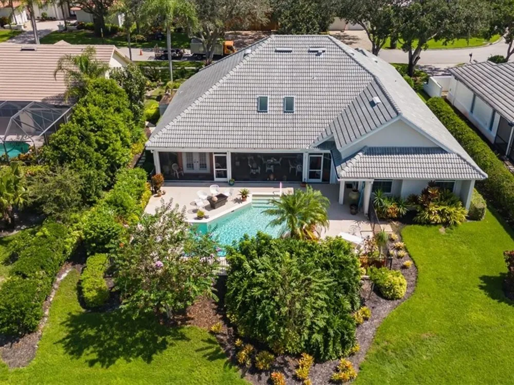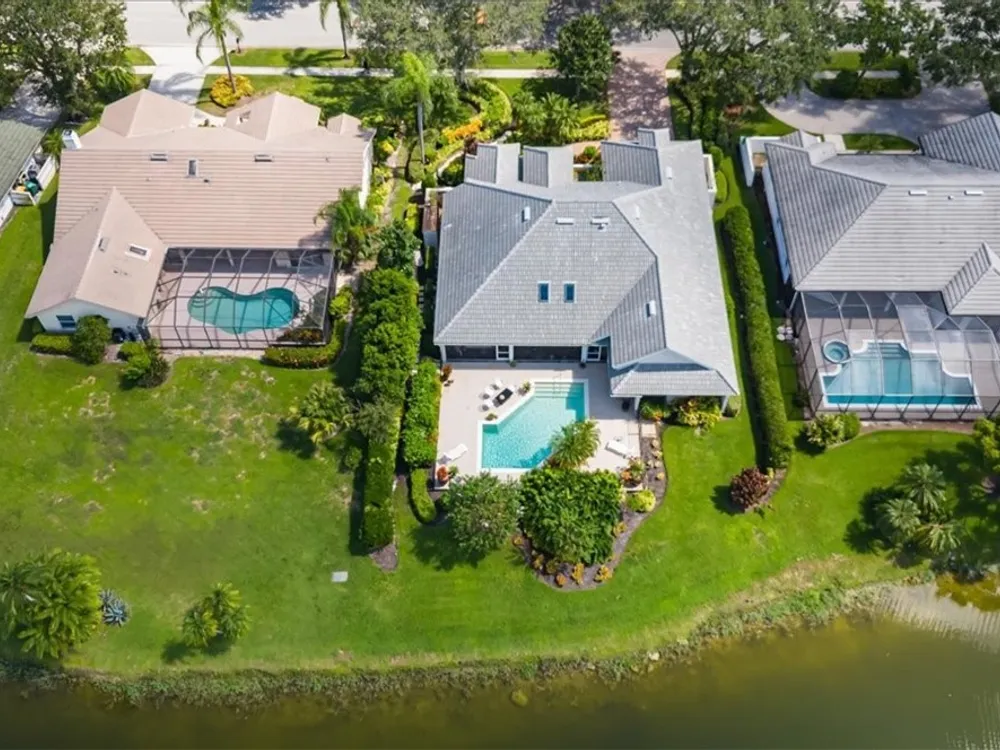 This beautifully maintained home in the Vineyards offers timeless style and easy Florida living on a southwest-facing lakefront lot with lush landscaping, great curb appeal, and a brand-new roof completed in 2023. A double-door entry with glass accents and a palladian window opens to soaring 12’ ceilings, hardwood floors through the main living areas include: living room, dining room, family room, breakfast nook and hallways. Sunny and brightly lit home sparkles with natural light. The formal dining room shows off decorative millwork, a dramatic picture window with custom draperies, and tall ceilings, while the living room features hardwood floors, sliders that fully pocket to the lanai, and a welcoming flow. The kitchen blend’s function and charm with white cabinetry, cork flooring, granite counters, stone backsplash, stainless appliances, and an oversized sink overlooking a pass-through window to the lanai. A bay-window breakfast nook with pendant lighting opens to the bright family room with plantation shutters, sliders to the lanai, and a wet bar perfect for entertaining. The owner’s suite is a true retreat with its own vestibule, three closets, French door access to the pool, and a spa-inspired bath with oversized vanity, separate makeup space, floating soaking tub, walk-in seamless shower, and enclosed water closet. Two guest suites offer comfort and privacy, and a separate den with vaulted ceilings, built-ins, and a large picture window that works as a home office or optional fourth bedroom. Outdoor living is easy with an expansive covered and screened lanai featuring paver decking, recessed lighting, a ceiling fan, and electric shutters, all overlooking sparkling lake views. Additional highlights include an oversized paver driveway and walkways, a 2-car garage with attic access, and a laundry room with utility sink. With southwest exposure filling the home with light, you’ll love the relaxed vibe, and while Vineyards doesn’t require club membership, options are available to enjoy two 18-hole golf courses, a racquet center with 12 Har-Tru tennis courts (six lit for night play) and eight gel-cushioned pickleball courts with LED lighting, multiple dining venues, plus a world-class wellness center offering a gym, spa, barber shop, salt cave, and more.