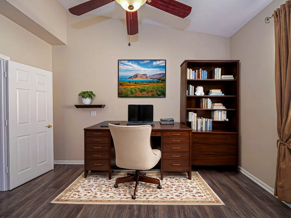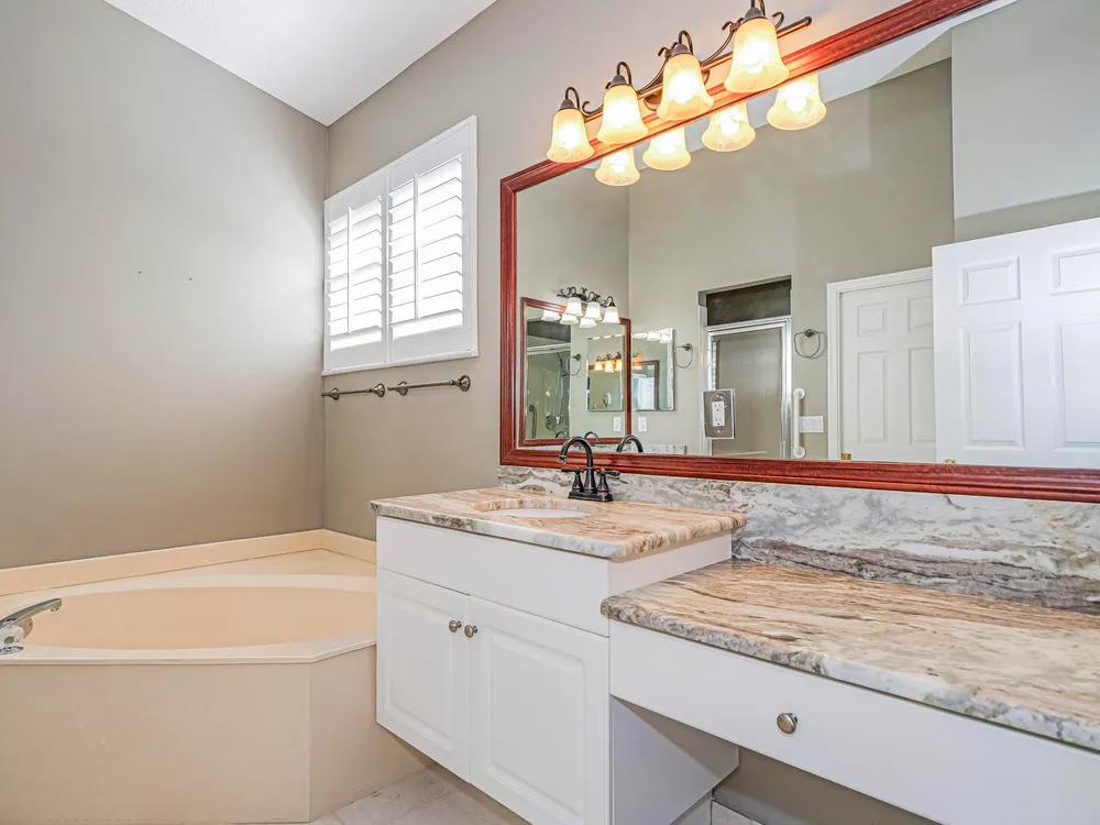 - Cathedral Ceiling(s), Pantry, Split Bedrooms, Walk-In Closet(s), Home Office, Living/Dining Room, Eat-in Kitchen, Blinds, Single Hung Metal Window(s), Sliding Window(s), Dual Sinks, Separate Shower, Bathtub