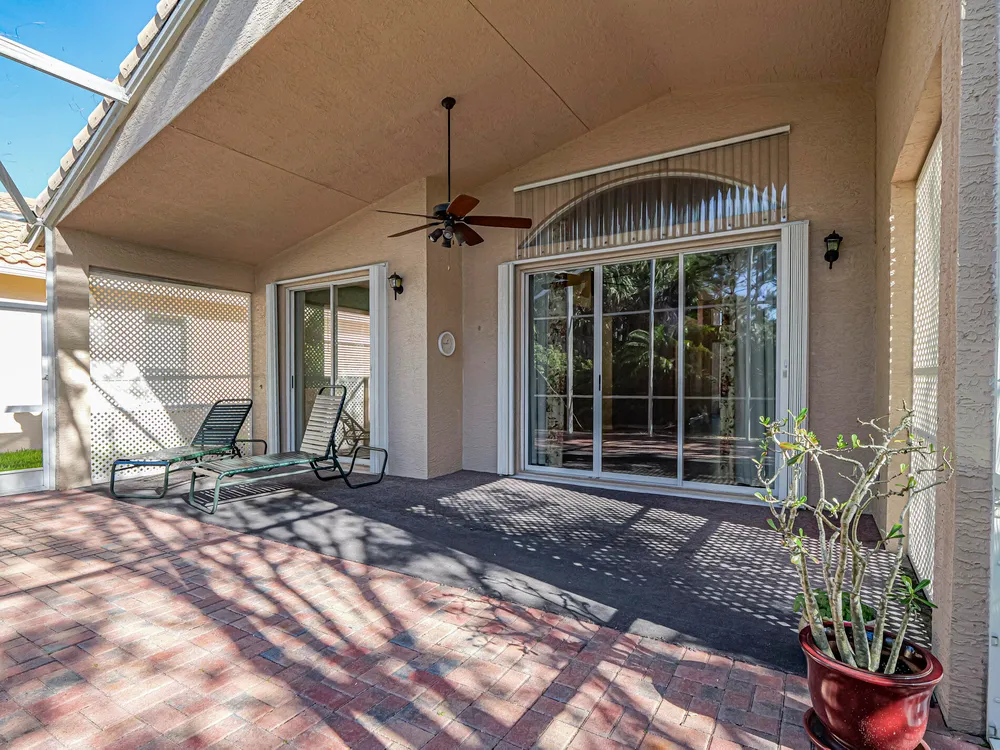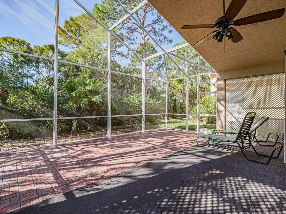 Welcome to this two bedroom plus den 2 bath home nestled in a serene and secure 55+ community . This home features an open floor plan perfect for entertaining or relaxing. The bright and airy living room opens to a large extended screened patio ideal for morning coffee or evening gatherings. The main bedroom suite offer a peaceful retreat with an en-suite bathroom and generous closet space. The community amenities include a clubhouse, pool , fitness center and 9 hole golf course ensuring an active and social lifestyle. Conveniently located near shopping, dining and healthcare facilities this home is perfect for those seeking a fulfilling retirement experience.
