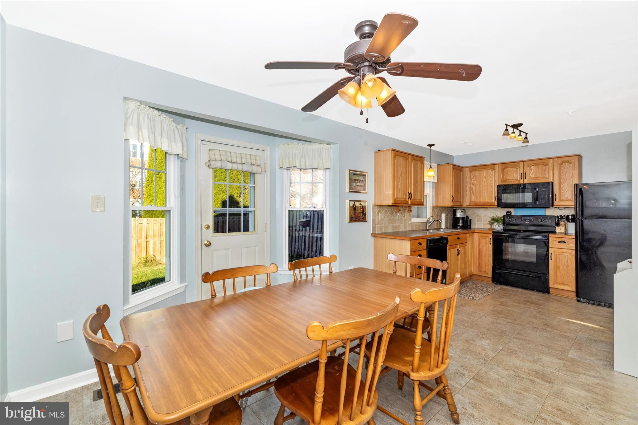 Welcome to 215 Stull Court in Thurmont, Maryland! This charming brick-front end-unit townhome offers a warm and inviting layout with thoughtful updates and plenty of natural light. Step inside to a sunny living room with window seat and wood floors, creating the perfect space for everyday comfort or entertaining. The kitchen offers updated LVP flooring, a stylish ceramic tile backsplash, a large pantry and ample cabinetry. Just off the dining area is a convenient main-level laundry area, making daily chores a breeze.The spacious dining area sits adjacent to the kitchen and provides easy access to the backyard perfect for outdoor dining and relaxing. Upstairs, you’ll find a generous primary bedroom with rich wood floors, a private en-suite bath, and abundant closet space. Two additional bedrooms and a well-appointed hall bath complete the upper level. The finished lower level offers a cozy family room with a fireplace, ideal for movie nights or evenings at home. A separate storage/utility room provides plenty of extra space for organization. Outside, the large fenced backyard features a patio, offering a private area for enjoying morning coffee or gathering with friends. This end-unit townhome includes two assigned parking spaces right out front for maximum convenience. Major mechanical updates include a new HVAC system installed in 2021 and a water heater installed in 2024, giving peace of mind for years to come.