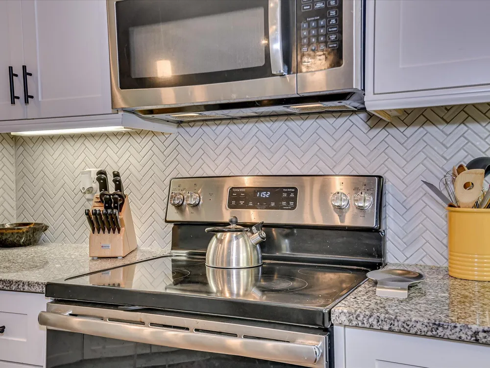 - Built-In Microwave, Refrigerator, Electric Range, Disposal, Dishwasher