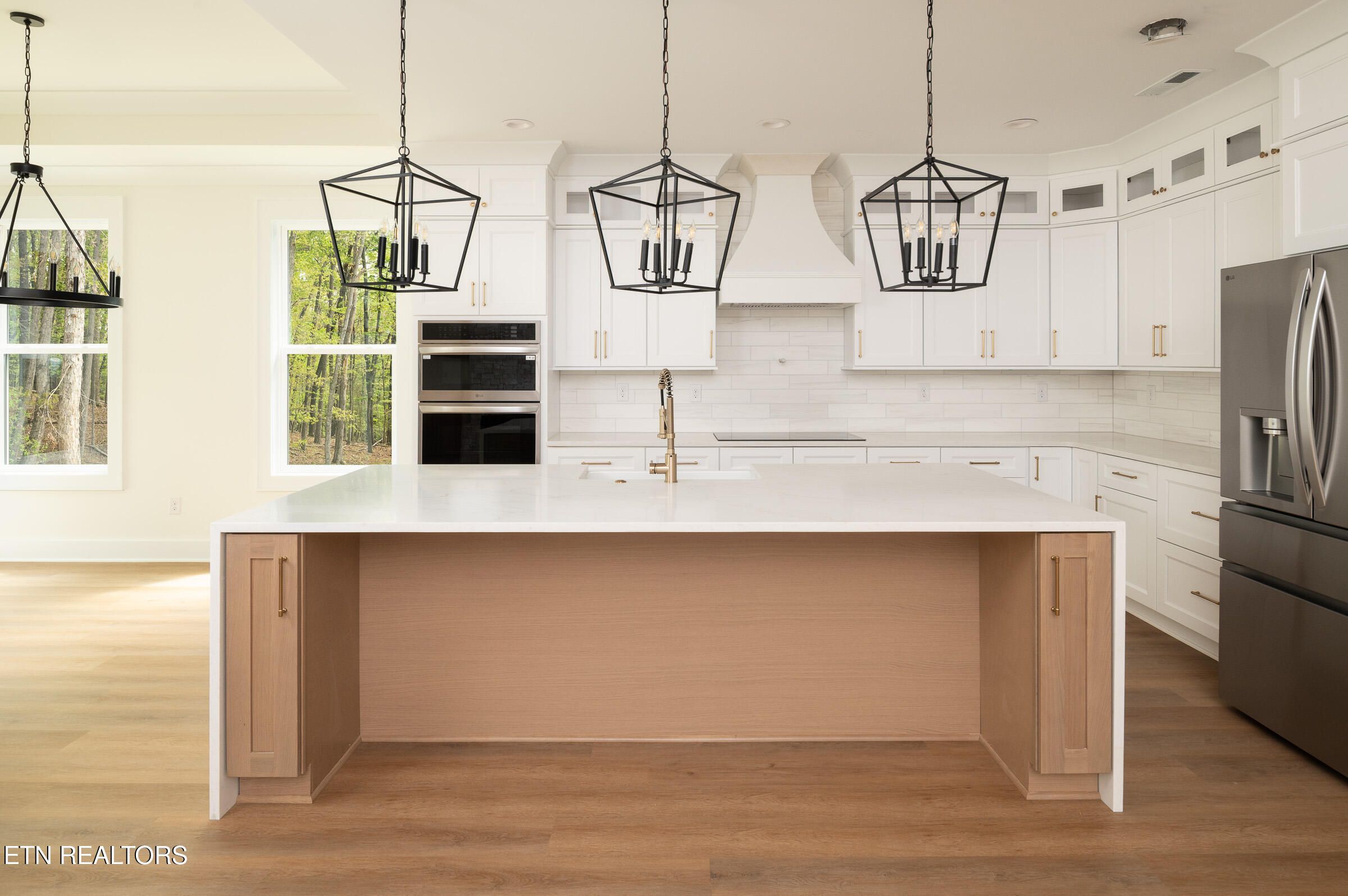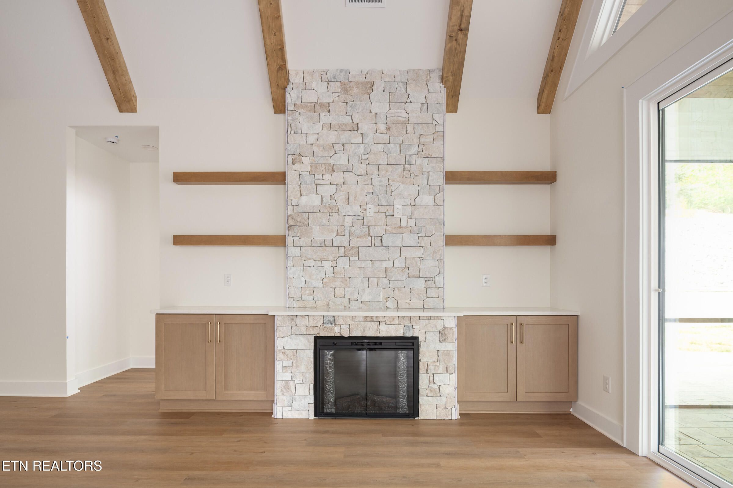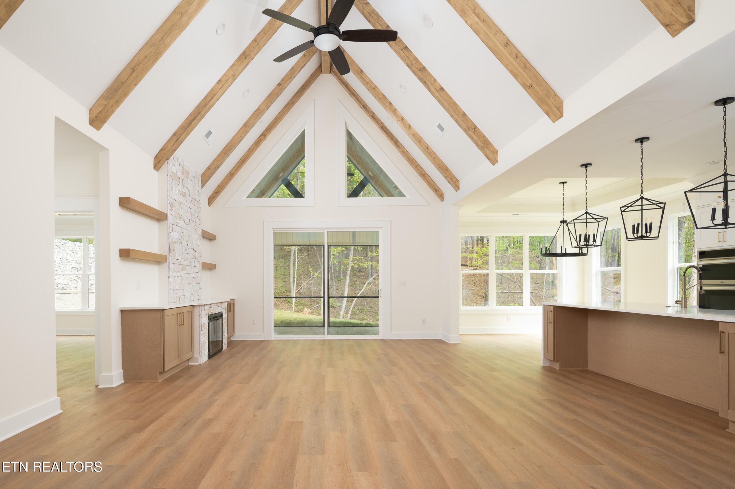 Discover comfort and quality in this beautifully built new home centrally located in Tellico Village. The great room features a cathedral ceiling, and an electric stone fireplace that creates a warm, inviting space to gather. The kitchen is both functional and stylish, with stainless steel appliances, quartz countertops, a tiled backsplash, plenty of cabinetry, and a large pantry for extra storage. The primary suite offers a quiet retreat with lots of natural light and a spacious walk-in closet with built-ins. The attached bath includes double vanities, a custom-tiled walk-in shower, and a soaking tub. Throughout the home, you'll find durable luxury vinyl plank flooring. Just off the garage entrance, a mudroom provides a convenient spot to keep things organized. Out back, enjoy a covered and screened patio overlooking a private, wooded green space. There's also a fire pit area, making it easy to relax or entertain outdoors. The yard is professionally landscaped and includes an irrigation system. In addition, on the right hand side of the property is common area which enhances the sense of privacy. The oversized three-car garage includes a utility sink and extra storage space above.Tellico Village amenities include golf, wellness center, yacht club, trails, and lake activities. Move-in ready and waiting for its first owners!