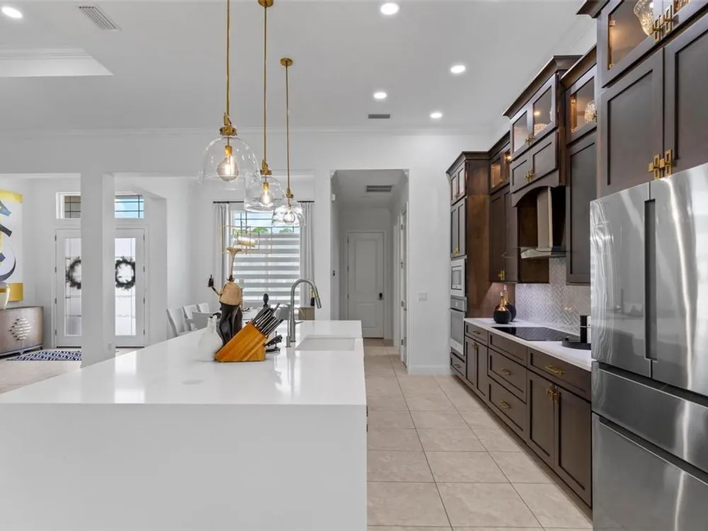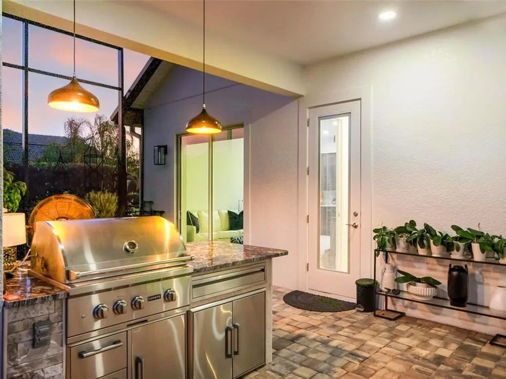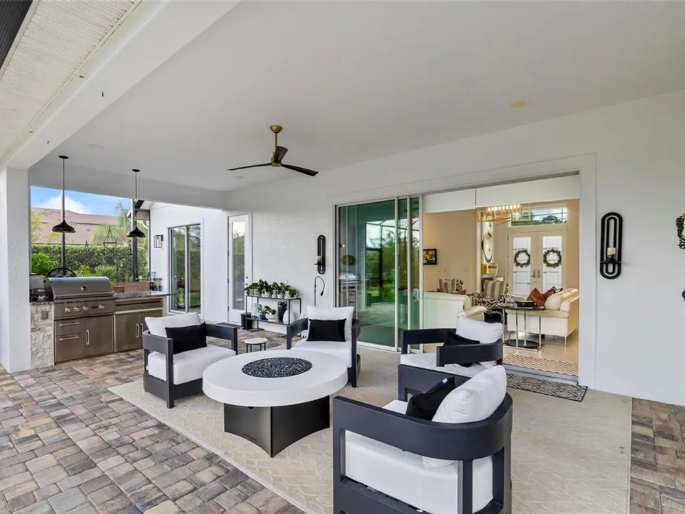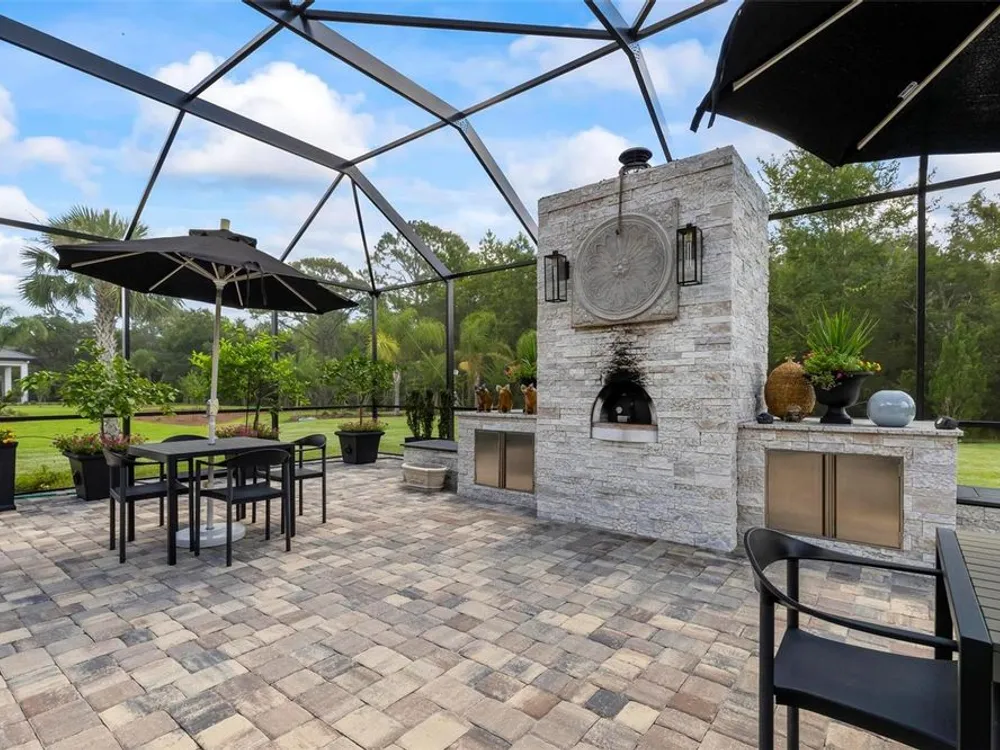NEW listing in Wild Oaks of Grand Haven. This Skyway Builders Home has been elegantly upgraded by the current home owners transforming it into a Designers Dream Home. The newly added outdoor living area features a Custom Designed Wood Burning Pizza oven, and a separate outdoor Grill and counter bar area for both Entertaining and Relaxing. This open floor plan features a Great Room with an exquisitely tiled wall all open to the Formal Dining Room, and a redesigned kitchen with a Cambria Quartz Waterfall Island, Lighted Glass cabinets and all New Appliances including a Dacor Six burner Induction Range, and a separate dinette area all looking out to your outdoor entertaining area overlooking a private reserve. This area features olive trees, citrus trees, and a dedicated Herb Garden to enhance your outdoor pizza experience. This Unique floor plan was also designed to give you the flexibility to have a separate Media Room, or being able to create an In-Law Suite or Separate Office with its own private entrance and walkway. Plus, all bathrooms have been totally remodeled using Cambria Quartz Counter tops, Kohler sinks & faucets, and Designer Mirrors. Plus, new designer lighting and extra outlets throughout the house, and new engineered wood flooring in bedrooms and all house water purification filter has been added and much more…..The outdoor Landscaping has been totally replaced with a new extended Paver driveway and walkways. Also, NEWLY REPLACED: (2025) Air Conditioner with 5-inch media filter with Bio Guard UV light for extra clean air, and a new well for watering outdoor lawn and landscaping (no recycled water costs). Plus, the oversized 2 car garage has extra storage in an air-conditioned mechanical room and wall-to-wall cabinets for more storage and it is also equipped with a 240 outlet for an electrical car. As a Grand Haven Resident you can enjoy all the established amenities such as: 2 Heated Community swimming pools, 2 Fitness Centers, 7 Tennis courts, Pickleball courts, bocce, walking trails, the Village center social Hub and restaurant and more. Grand Haven also has an 18 Home Jack Nicklaus Signature Golf Course, Restaurant and Club House overlooking the Intercoastal Waterway. Memberships are still available. Come see this Home it is move in ready.
