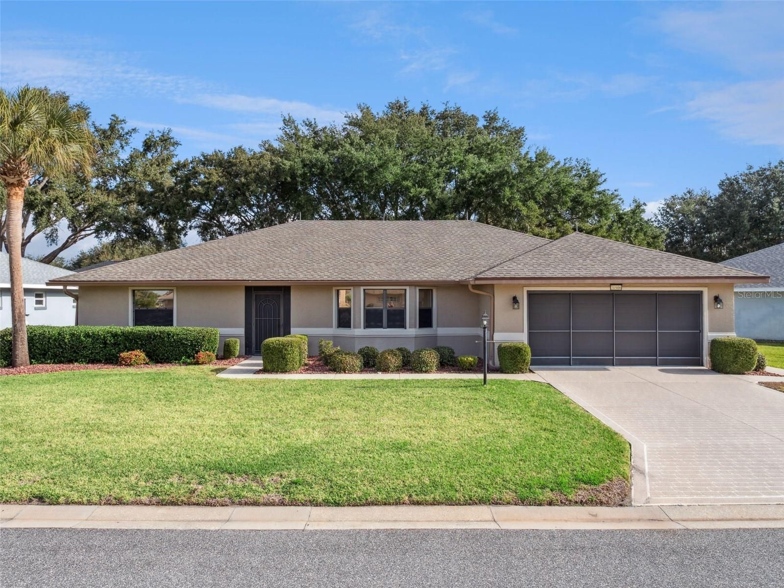 One or more photo(s) has been virtually staged. Welcome to this move-in ready three-bedroom, two-bathroom block and stucco home located in the highly sought-after 55+ gated golf community of Royal Highlands. Nestled on a quiet court, this residence features fresh interior and exterior paint, a water softener, central vacuum system, and a transferable termite bond for your peace of mind. The Majestic Model split bedroom floor plan offers a screened entry, a spacious Florida Room, and a versatile bonus area, providing both casual and formal living spaces to suit your lifestyle. The home is immaculately maintained—clean as a whistle! The kitchen boasts Corian countertops, refaced cabinets, a gas range, a full stainless steel appliance package, a pantry, garbage disposal, and easy-care laminate floors. Both bathrooms are updated with granite counters. The primary bathroom features a relaxing soaker tub, ample customized closets, and a step-in shower. Additional highlights include luxury vinyl plank (LVP) flooring, a new gas clothes dryer, an open patio in the backyard, 3M window tinting, lightning rods on the roof, pull-down attic stairs, and a utility sink in the garage. Enjoy the peace of mind of a brand-new 2024 roof! There is lovely green space between homes, and you’ll appreciate the close proximity to community amenities and a short drive to SR27. Lake County boasts over 1,500 named lakes, and Royal Highlands is conveniently located near the Florida Turnpike, I-75, Orlando International Airport (MCO), amusement parks, historic districts, shopping, and medical facilities. Royal Highlands offers an impressive array of amenities, including an 18-hole golf course with a full-service restaurant, a driving range, two pools, courts, a softball field, arts and crafts rooms, a fitness center, a library, Great Hall with theater stage & dance floor, and you’ll find a billiards room at the Recreation Center. Call today to schedule your private tour and experience all this vibrant community has to offer!