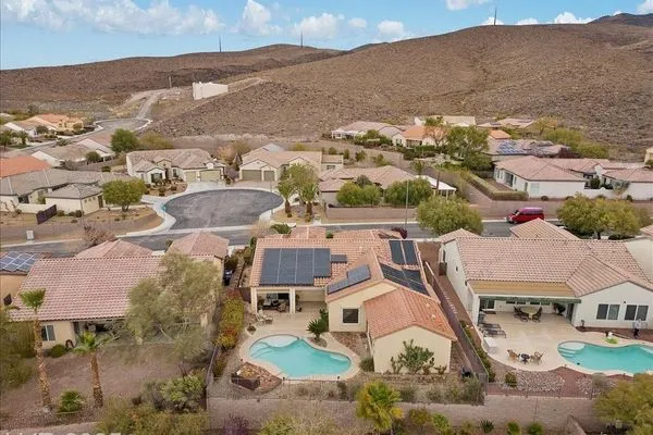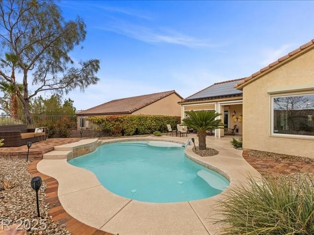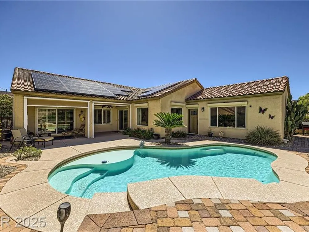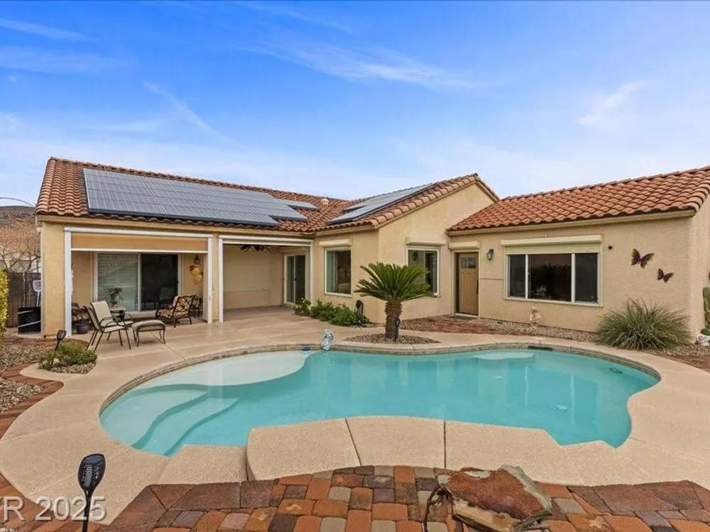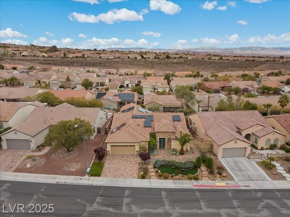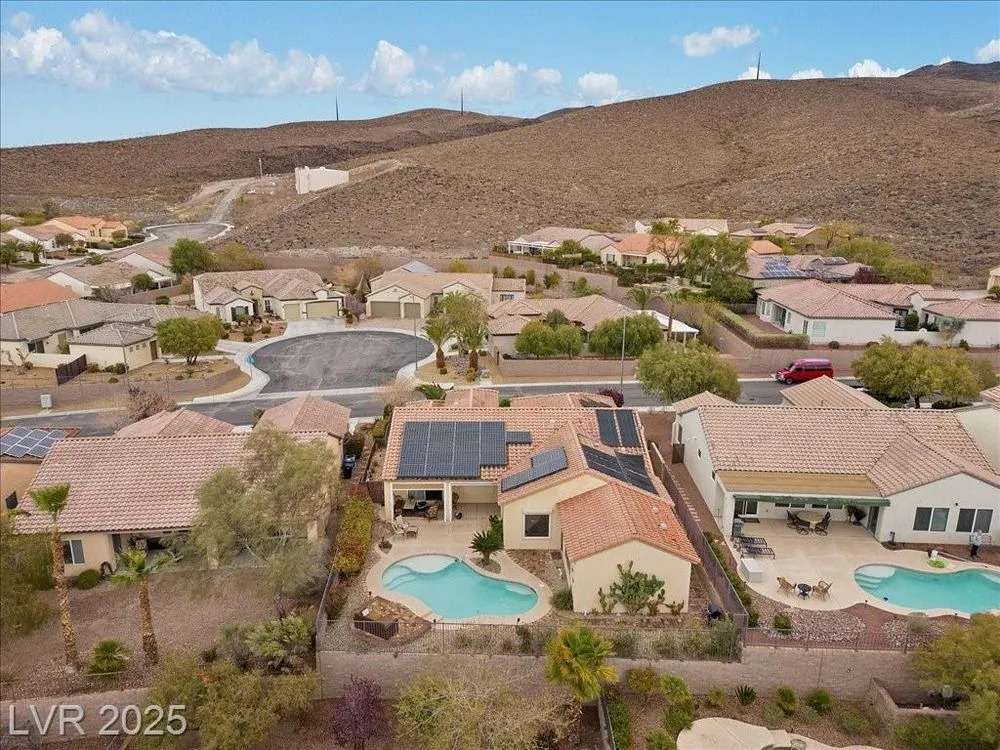 Fresh new listing in Sun City Anthem showcasing the highly sought-after Montgomery plan with 2,550 sq. ft. plus a 360 sq. ft. private addition that includes a full bath and private rear yard access, ideal for a guest suite, separate living quarters, or extra bedroom. Thoughtful upgrades throughout include paid solar with an average $14 monthly energy bill, Rolladen shutters, new AC/HVAC and appliances in 2023, and tasteful finishes that enhance comfort and efficiency. The backyard is a private retreat with a sparkling saltwater, solar-heated pool, perfect for relaxing or entertaining. Enjoy all that the premier 55+ Del Webb Sun City Anthem community offers, including golf, state-of-the-art fitness centers, indoor and outdoor pools, pickleball, social clubs, and a vibrant lifestyle just minutes from shopping, dining, and entertainment.