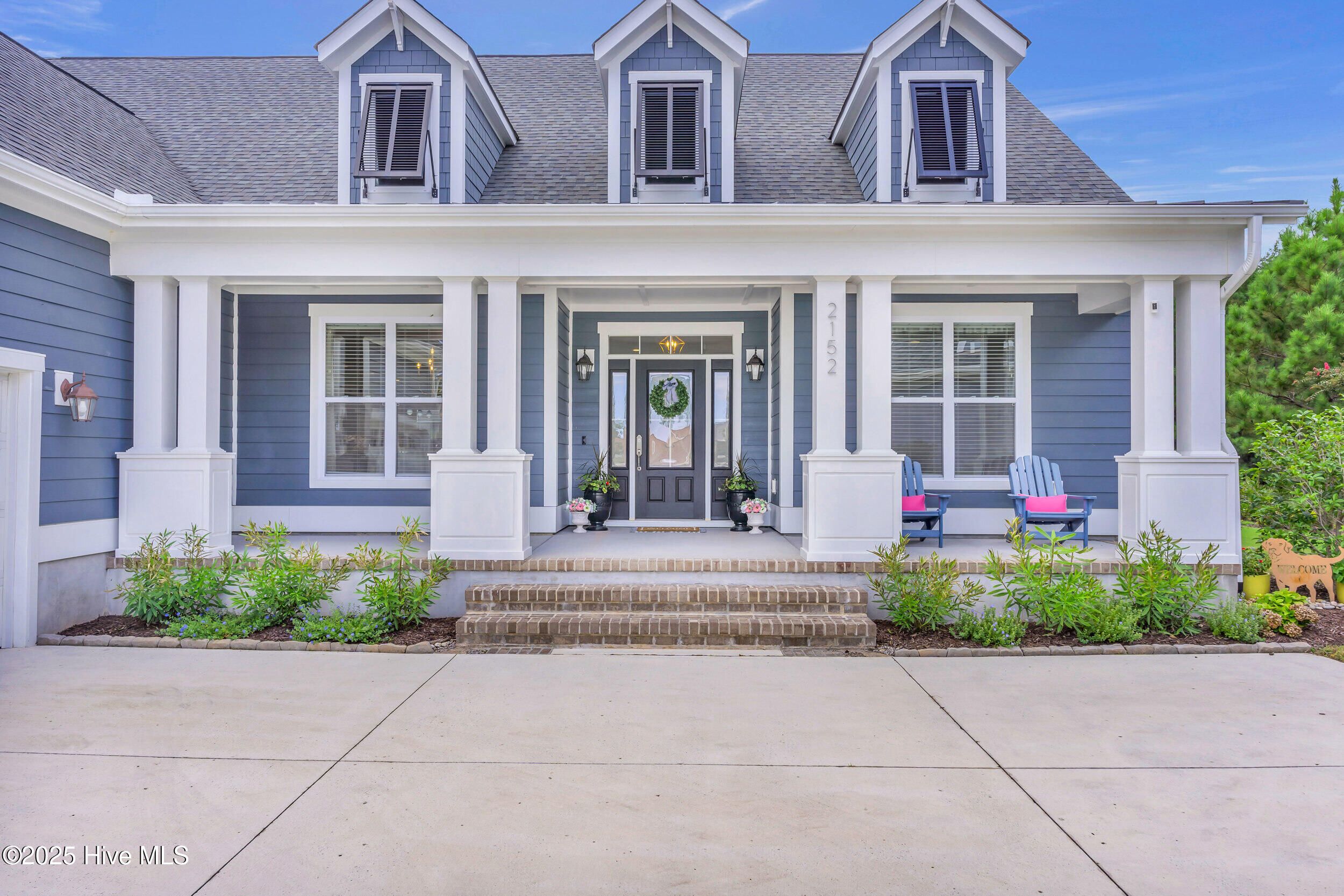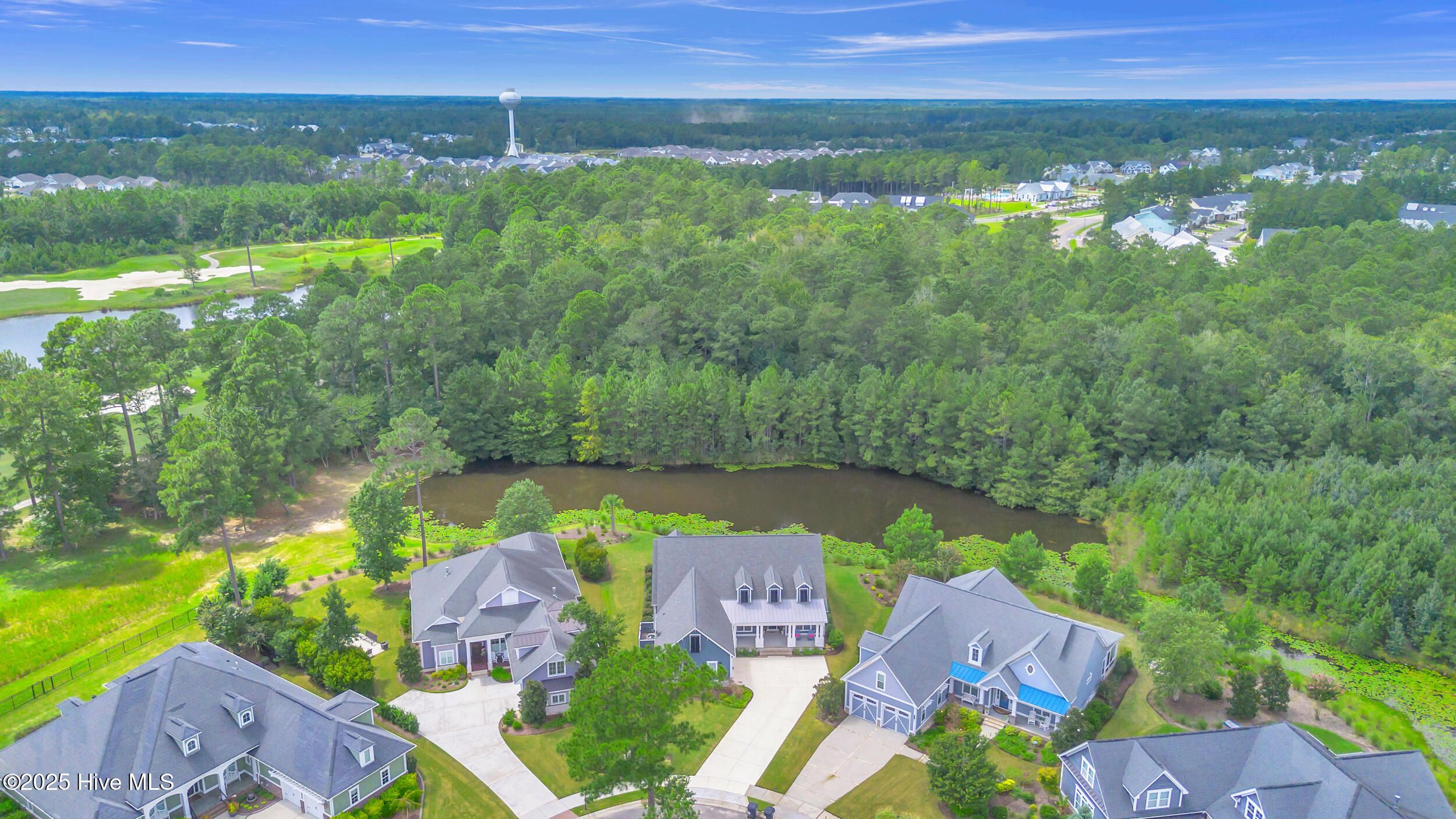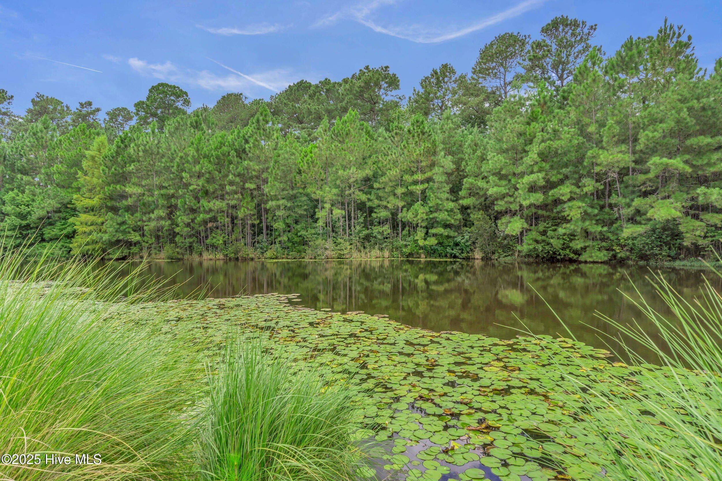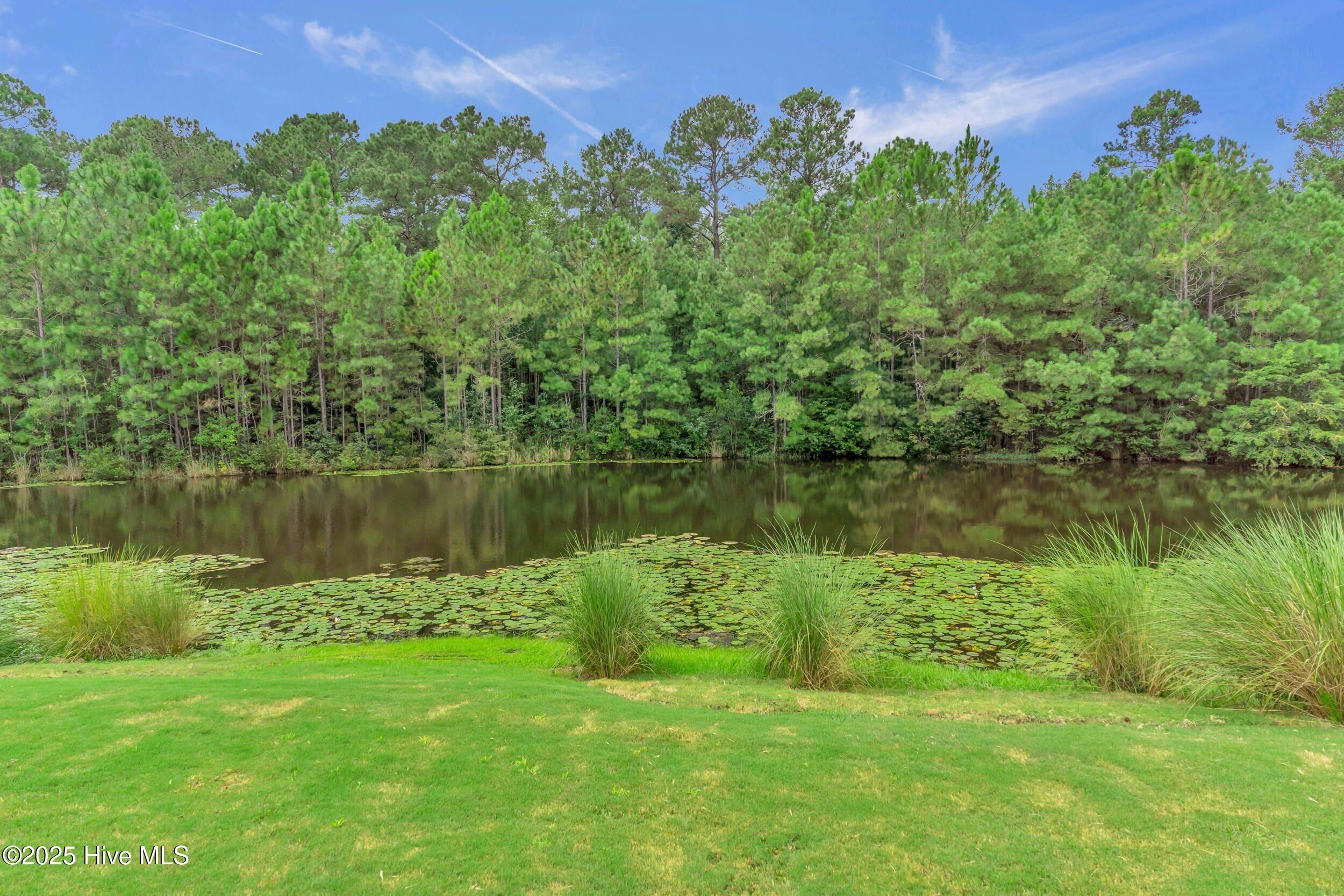 Welcome to this exquisite, one level, 3 bedroom home, where every detail has been thoughtfully designed for luxurious living. Situated on a private cul de sac backing up to serene water and pond views, this home offers an irreplaceable private retreat. Step inside to an open floor plan that is perfect for entertaining and everyday life. The main living areas are adorned with elegant crown moldings, wainscotting, and built in bookshelves, adding a touch of craftsman sophistication. Oak hardwood floors blend seamlessly into the heart of the home, the chef inspired kitchen, It features an oversized island with plenty of seating, gleaming granite counter tops, white cabinetry with pull out shelves and under cabinet lighting, stainless steel appliances, gas range, vented hood and lots of windows to take in the views. There is a custom designed unique wine room dedicated for relaxation and conversation. The wet bar is centrally located between the kitchen, wine room and main living room. The owners suite is spacious, and has a wall of windows to showcase the water views. It has a tray ceiling, walk-in closet, and a private en suite bathroom. The spa-like bathroom has a tiled walk-in shower, double sink vanity, framed mirror, recessed lighting and tile floors. There are two additional bedrooms, one featuring a Murphy bed from Southport Murphy beds and three additional bathrooms. Relax and Unwind on the porch, where the retractable screens and outdoor wired fans allow you to enjoy the fresh air and stunning views without a worry. There is a patio for outdoor dining and grilling and upgraded landscaping. Additional features include 2 car side loading garage, termite bond, large laundry room with wrap around upper and lower cabinetry, floored attic space, gutters, Ring system, hardiplank siding, and irrigation. You have to take time to experience this home and all it has to offer.