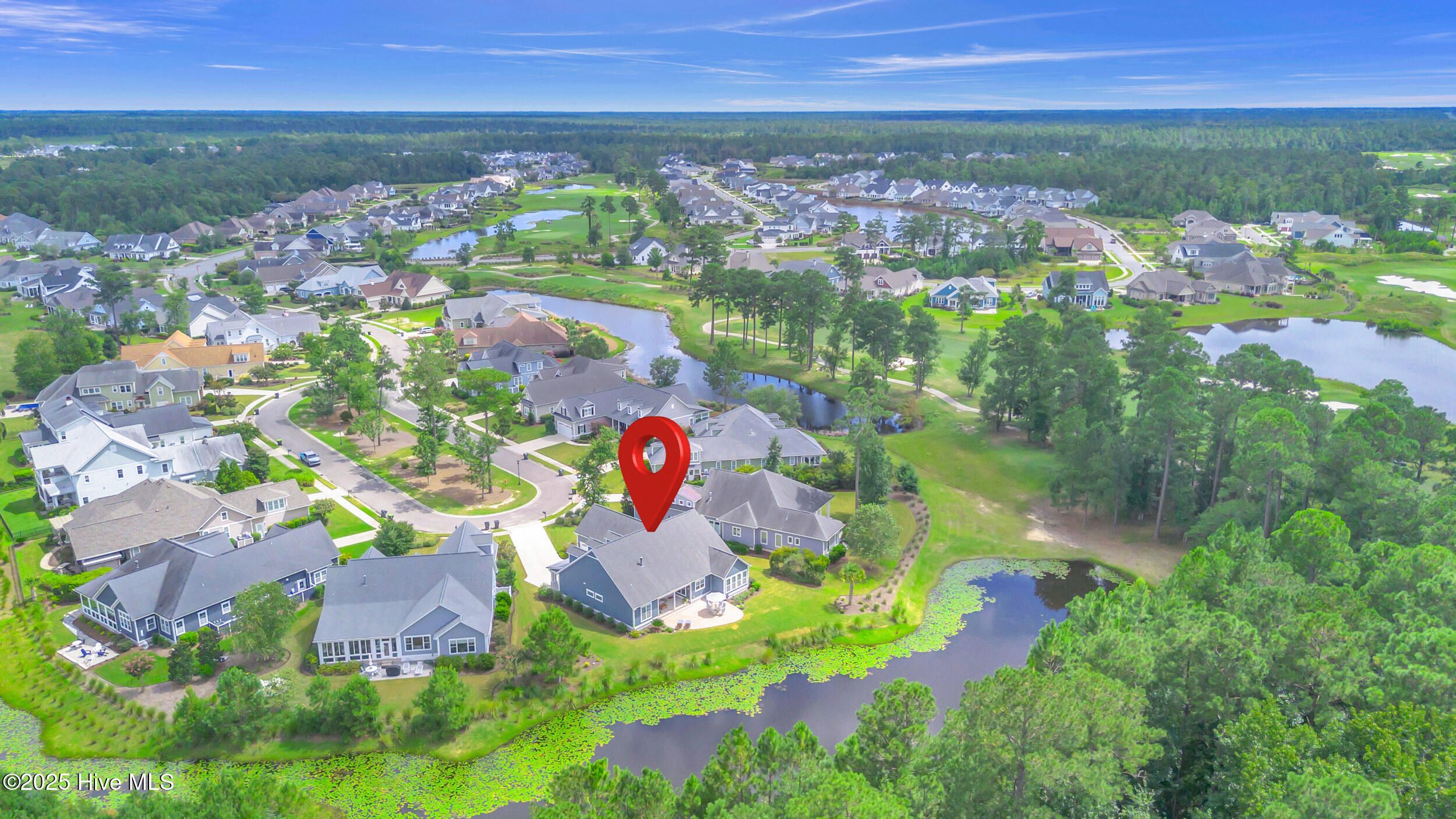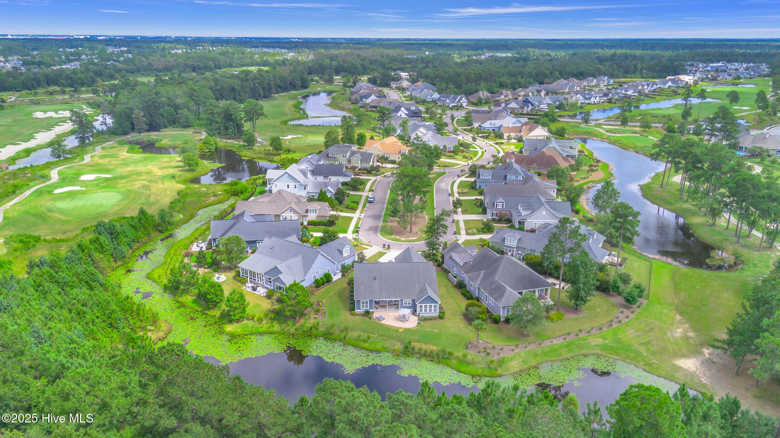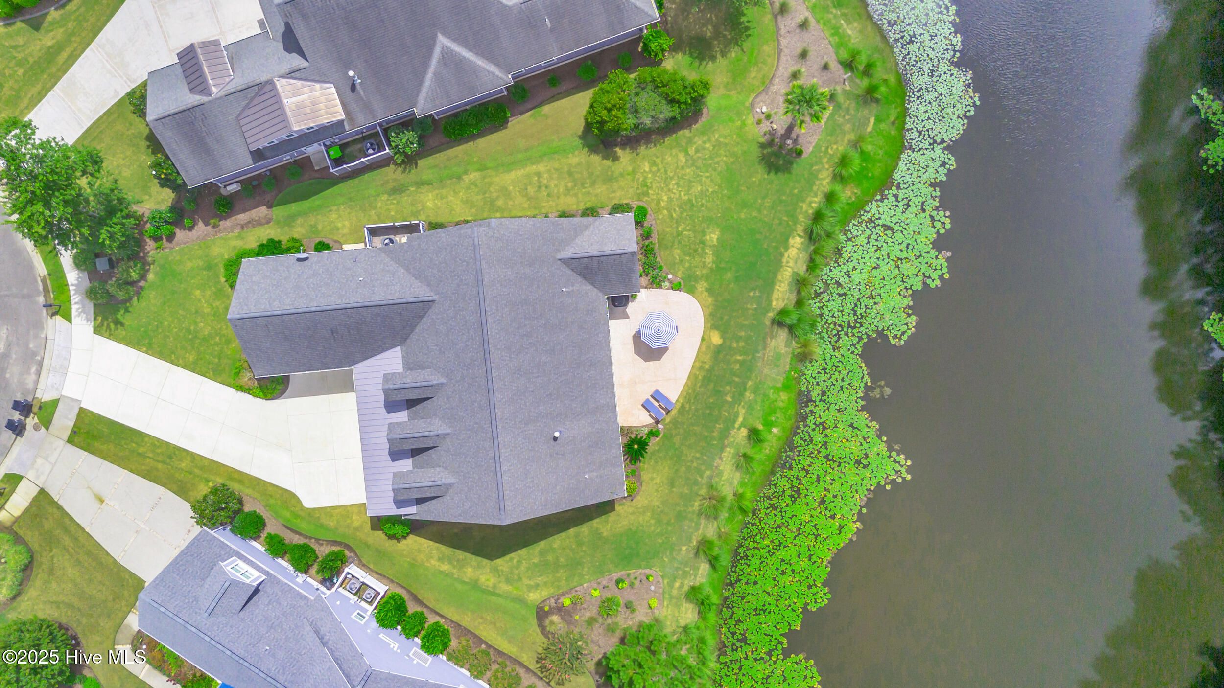 Welcome to this exquisite, one level, 3 bedroom home, where every detail has been thoughtfully designed for luxurious living. Situated on a private cul de sac backing up to serene water and pond views, this home offers an irreplaceable private retreat. Step inside to an open floor plan that is perfect for entertaining and everyday life. The main living areas are adorned with elegant crown moldings, wainscotting, and built in bookshelves, adding a touch of craftsman sophistication. Oak hardwood floors blend seamlessly into the heart of the home, the chef inspired kitchen, It features an oversized island with plenty of seating, gleaming granite counter tops, white cabinetry with pull out shelves and under cabinet lighting, stainless steel appliances, gas range, vented hood and lots of windows to take in the views. There is a custom designed unique wine room dedicated for relaxation and conversation. The wet bar is centrally located between the kitchen, wine room and main living room. The owners suite is spacious, and has a wall of windows to showcase the water views. It has a tray ceiling, walk-in closet, and a private en suite bathroom. The spa-like bathroom has a tiled walk-in shower, double sink vanity, framed mirror, recessed lighting and tile floors. There are two additional bedrooms, one featuring a Murphy bed from Southport Murphy beds and three additional bathrooms. Relax and Unwind on the porch, where the retractable screens and outdoor wired fans allow you to enjoy the fresh air and stunning views without a worry. There is a patio for outdoor dining and grilling and upgraded landscaping. Additional features include 2 car side loading garage, termite bond, large laundry room with wrap around upper and lower cabinetry, floored attic space, gutters, Ring system, hardiplank siding, and irrigation. You have to take time to experience this home and all it has to offer.