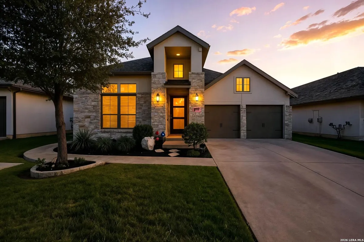 OPEN HOUSE SUNDAY 12-3. Sellers offering up to $10,000 in Concessions towards buyers closing cost or rate-buy down. Experience Hill Country living at its finest in this stunning custom Perry Home in Veramendi! Featuring 3 bedrooms, 2.5 baths,3-CAR tandem garage plus an Office. This thoughtfully designed home offers high ceilings, floor-to-ceiling windows, luxe ceramic tile and designer accents throughout. Spacious open concept living area and chef's delight kitchen boasts endless custom cabinets and counterspace, gas 5 burner range, designer tile backsplash and range hood, a stunning quartz island, and walk-in pantry and is perfect for gathering and entertaining. The spa-like owner's retreat includes dual vanities, an upgraded shower, and two spacious walk-in closets. Secondary bedrooms share a stylish Jack-and-Jill bath, and the French-door study offers versatile space. Step outside, and you'll discover one of this home's most impressive features - a backyard designed for true Texas outdoor living. The extended covered patio invites you to relax and unwind year-round, while the awning, privacy fencing, and shade additions create a comfortable, secluded environment for morning coffee or evening gatherings under the stars. The xeriscape landscaping blends seamlessly and is as functional as it is beautiful, including a 50-amp connection ready for a hot tub. Enjoy the easy Hill Country lifestyle in Veramendi, with top-rated schools, trails, and close proximity to New Braunfels attractions. This home defines comfort, elegance, and effortless Texas living! Come and see this beautiful Perry Home today.