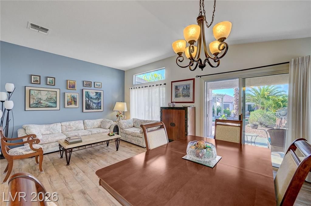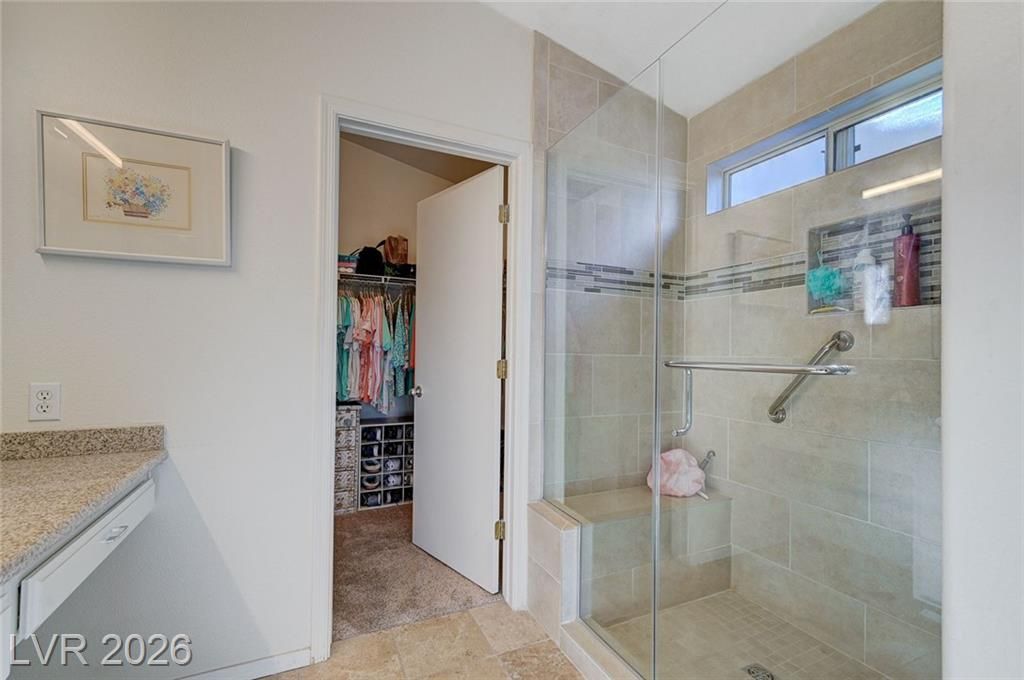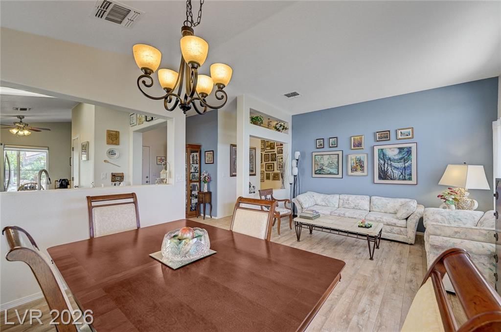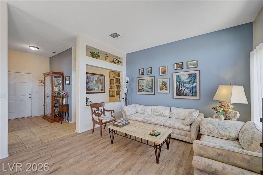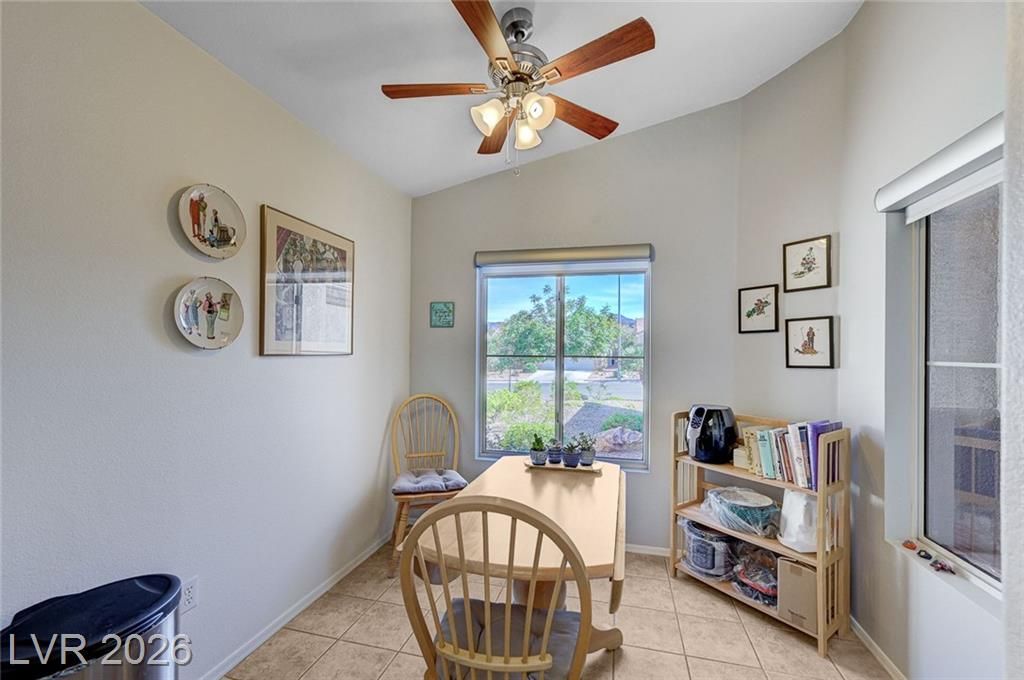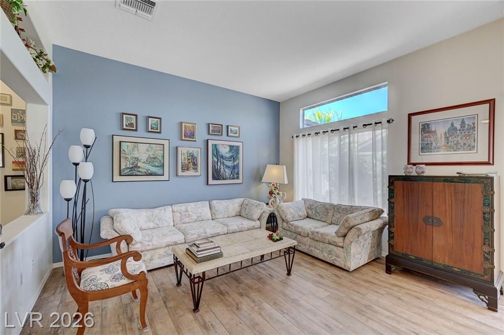 Highly sought-after floorplan in Sun City MacDonald Ranch on a premium lot with peaceful, open views. Enjoy beautiful cabinetry with glass accents, granite countertops, stainless steel appliances, newer flooring, and a fully upgraded walk-in tile shower. Major improvements include brand new ductwork, a premium whole-house filtration system, and epoxied garage floor and garage storage cabinets. The exterior is just as impressive with stunning curb appeal, a paver driveway, designer landscaping, and a covered patio that opens to quiet, serene views; ideal for relaxing or entertaining. Additional features include a separate indoor laundry room and thoughtful updates throughout.Located in one of Henderson’s most desirable 55+ communities, just minutes from The District at Green Valley Ranch, Target, Trader Joe’s, top dining, and easy 215 access. Enjoy resort-style amenities including clubhouse, golf, fitness center, pool, on-site dining, and more, all with a low HOA.