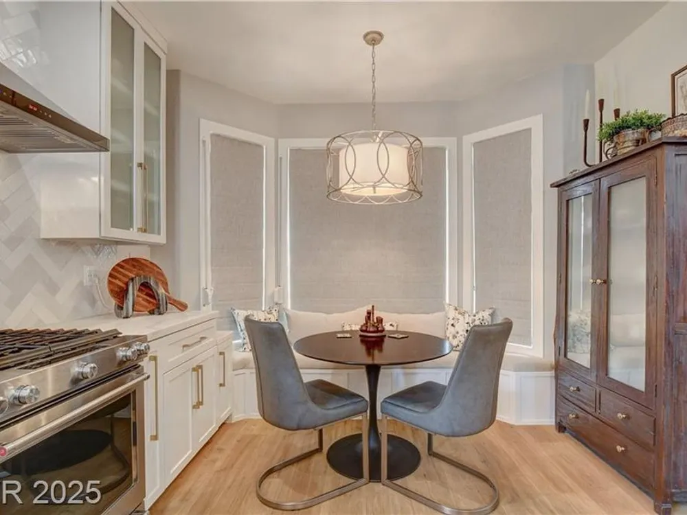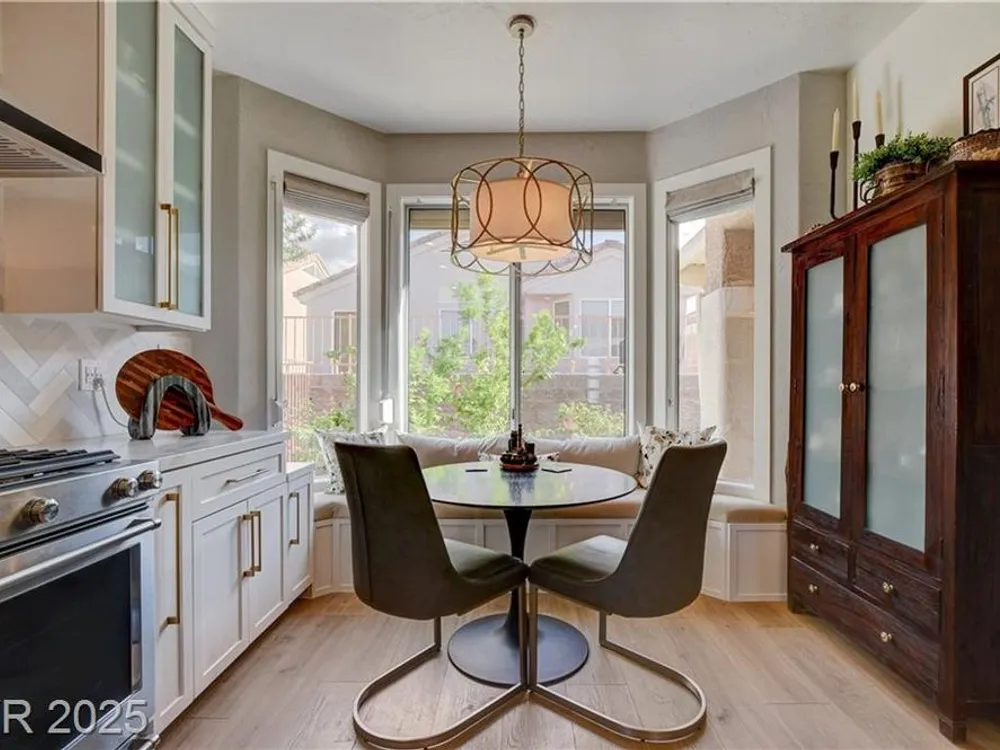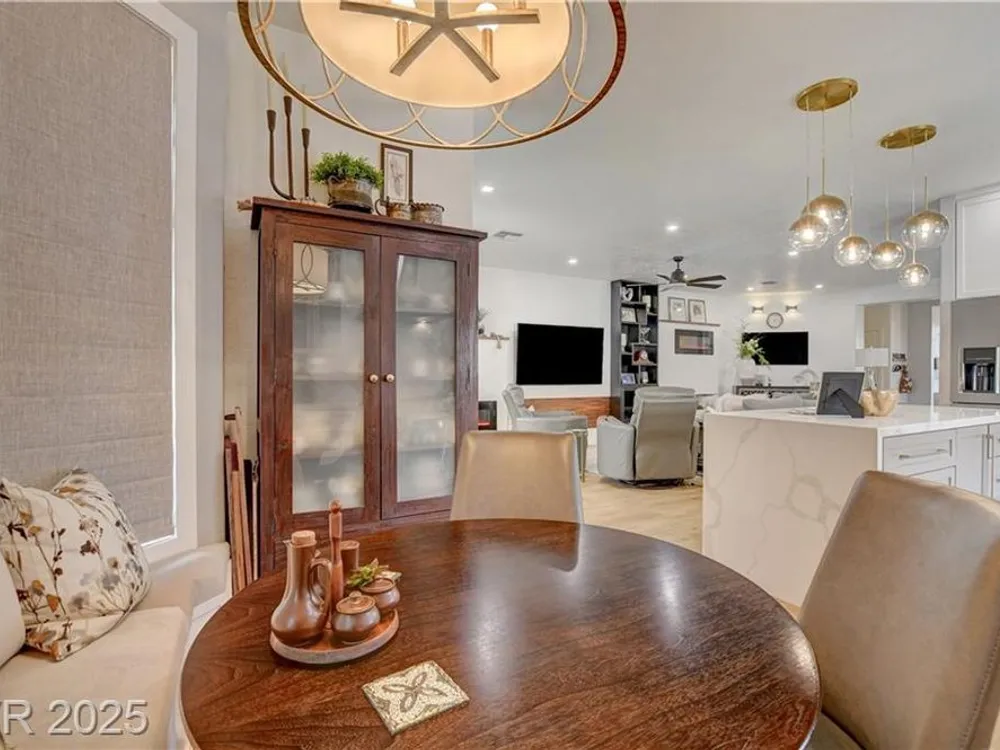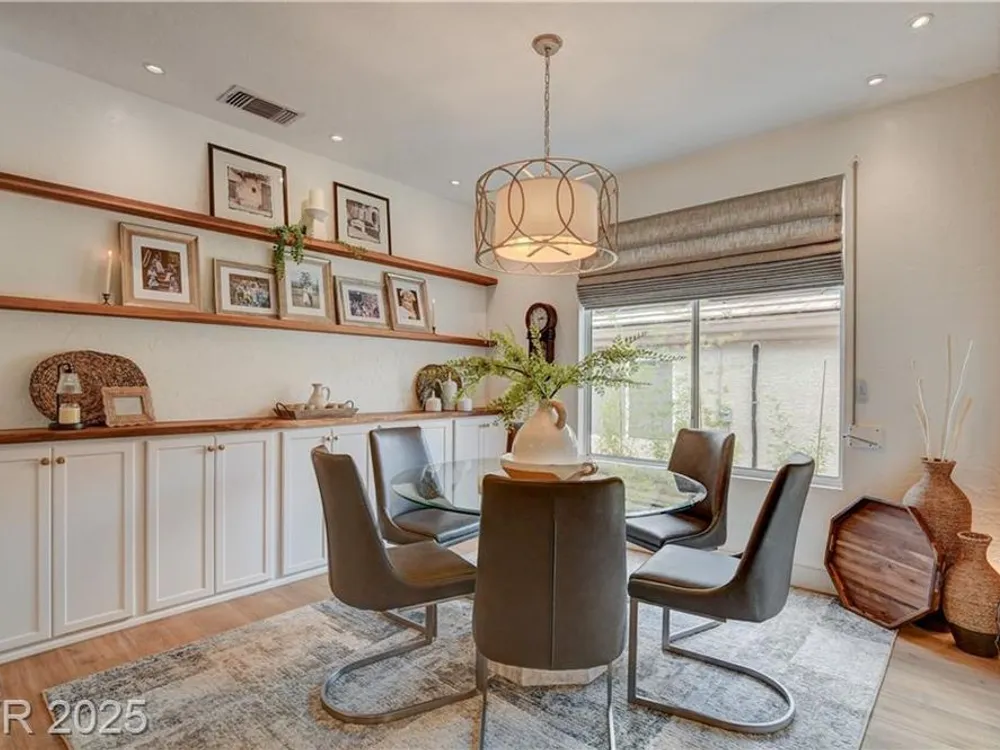 Welcome to luxury desert living in the coveted 55+ community of Sun City MacDonald Ranch! This stunning 1,770 sq ft, 2 bed, 2 bath home is a showpiece of thoughtful design and high-end craftsmanship.Featuring a hand-troweled finish throughout, the home offers a warm, refined atmosphere with gorgeous LVP flooring & designer touches at every turn. The open-concept layout showcases a chef’s dream kitchen with waterfall quartz counters, stunning tile backsplash, stainless steel appliances, soft-close cabinetry, large pantry and striking pendant lighting. The elegant dining room is enhanced by custom built-in cabinets and floating wood shelves—perfect for both function and flair. Retreat to the serene primary suite boasting custom built-in cabinetry with designer armoire. Enjoy the spa-inspired en suite bath with floor-to-ceiling porcelain tile, a custom shower, custom double sink with exquisite built-in cabinetry.Move-in ready and masterfully upgraded—this is Sun City living at its finest.