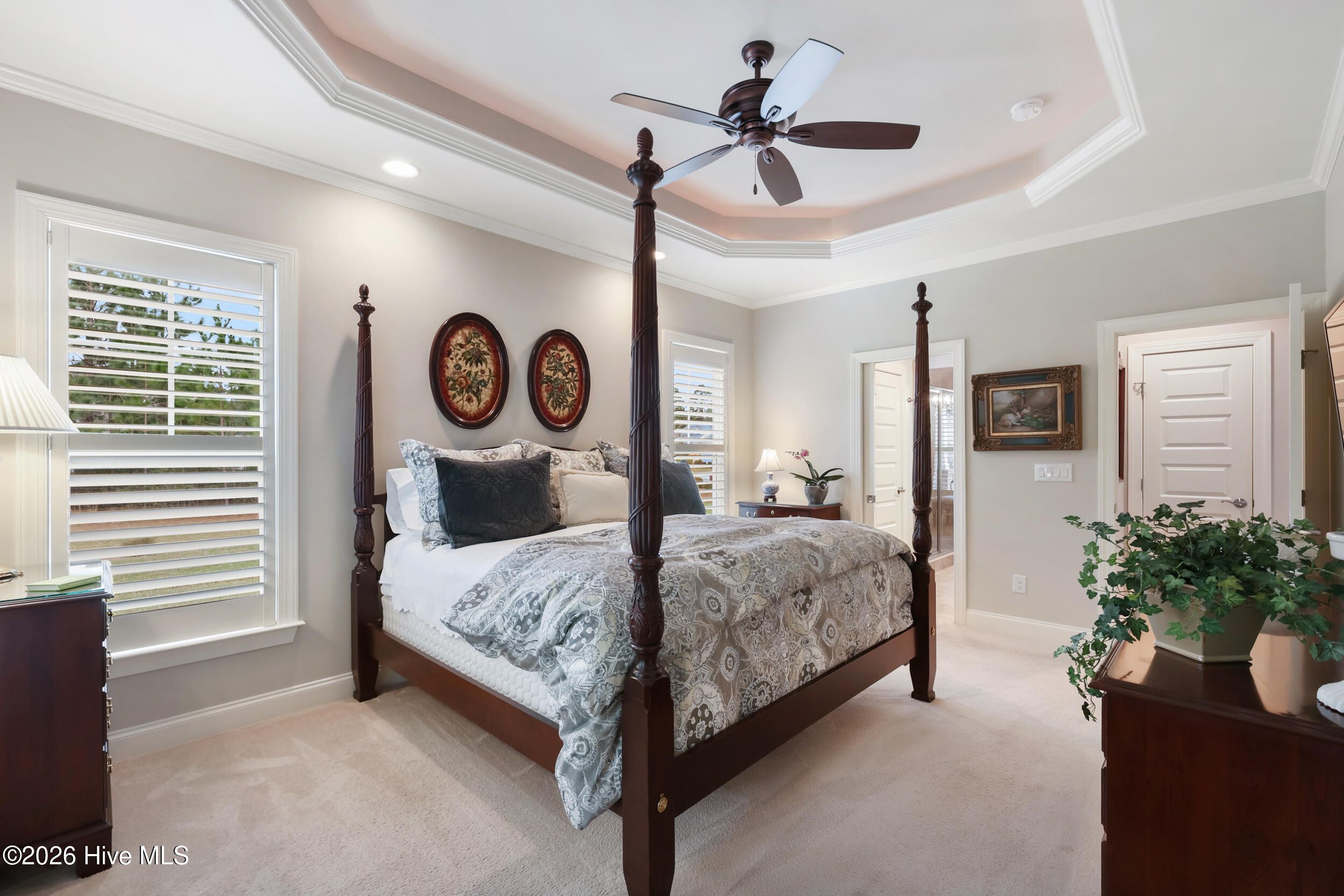 - Master Downstairs, Walk-in Closet(s), Tray Ceiling(s), High Ceilings, Entrance Foyer, Ceiling Fan(s), Pantry, Walk-in Shower