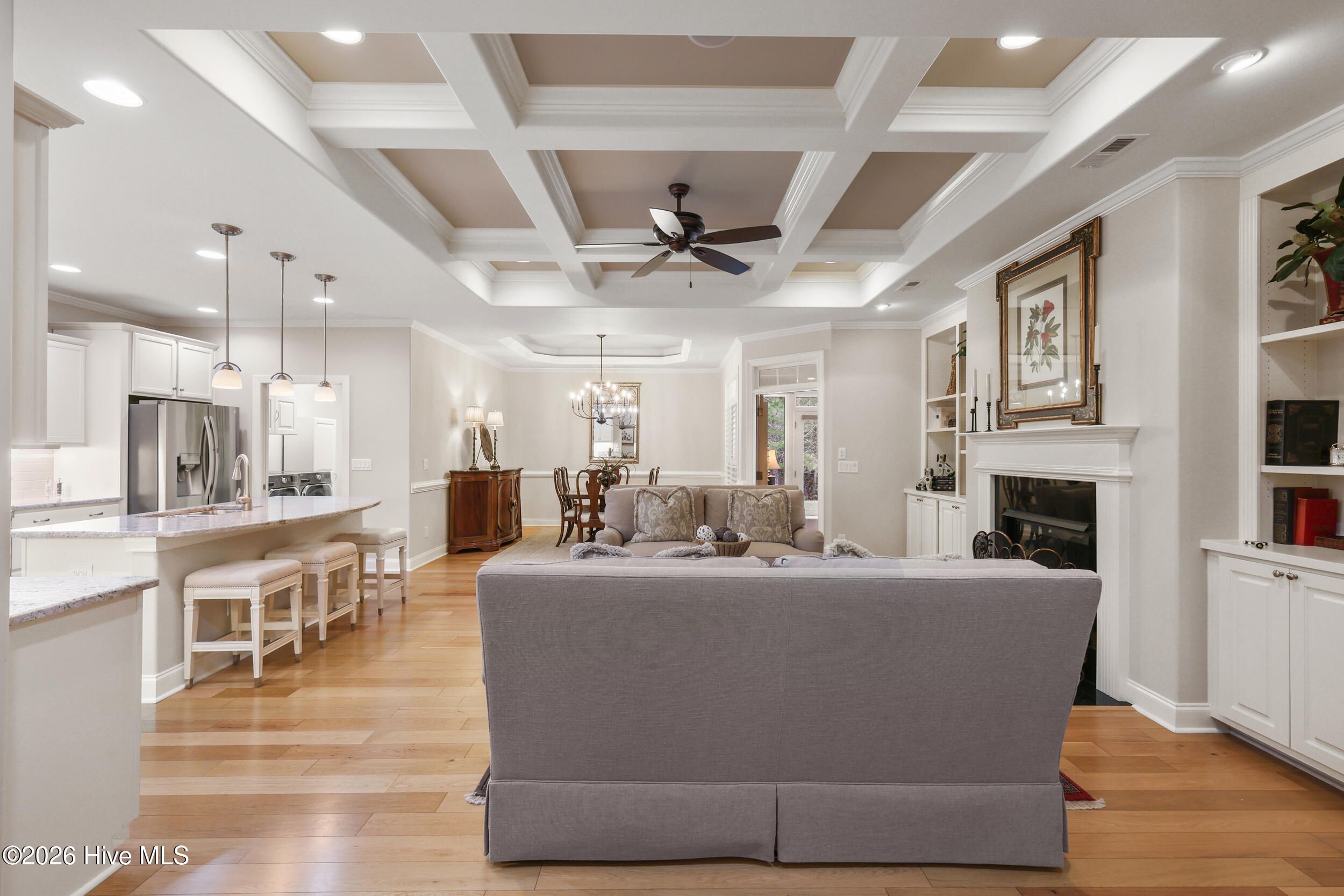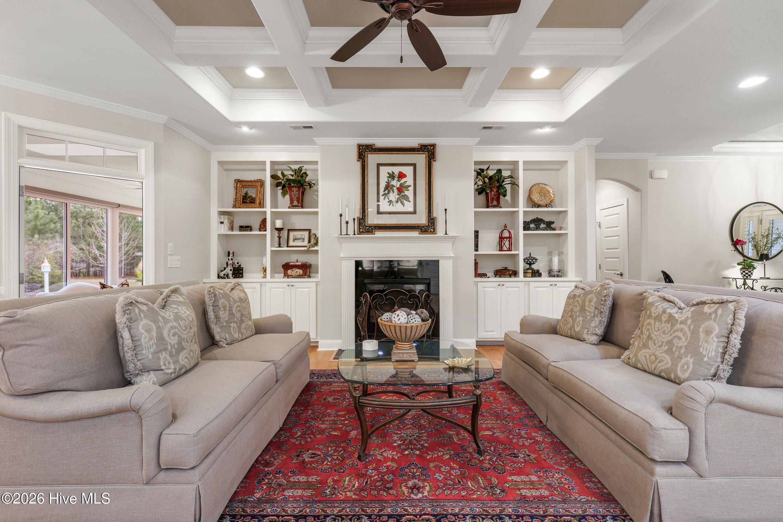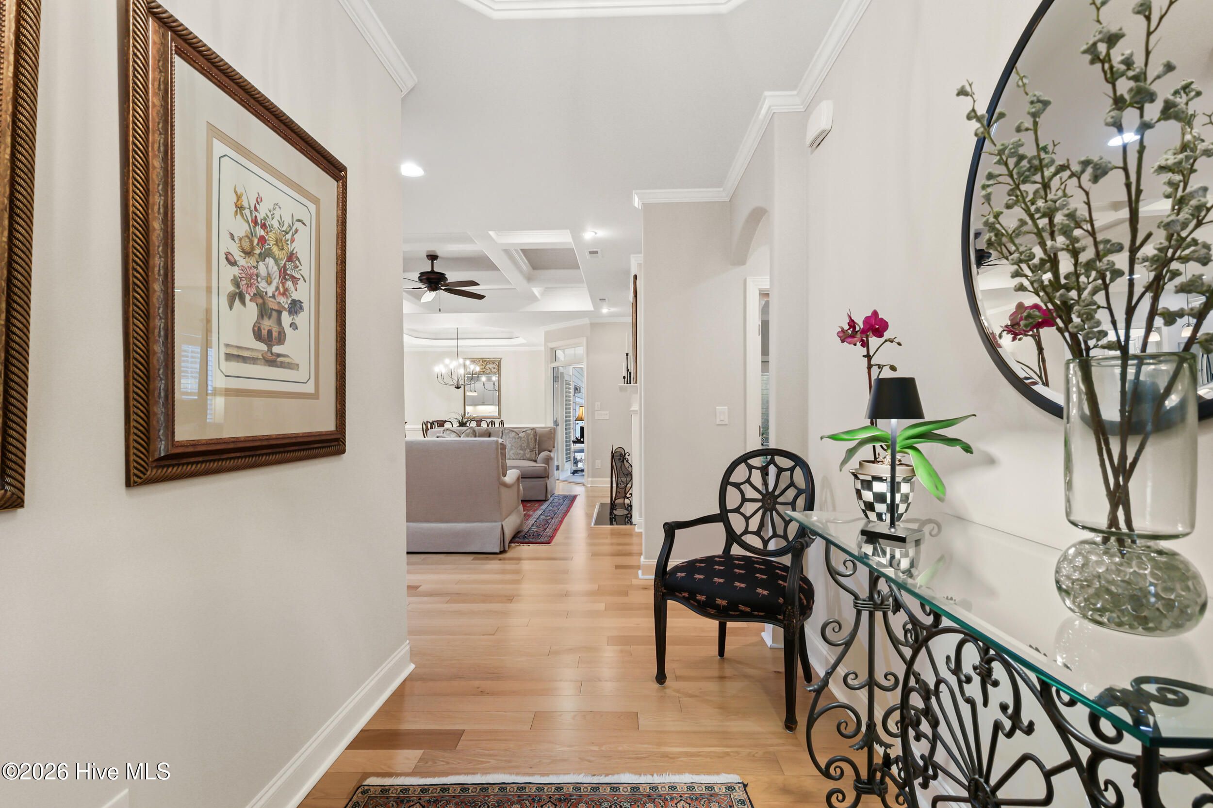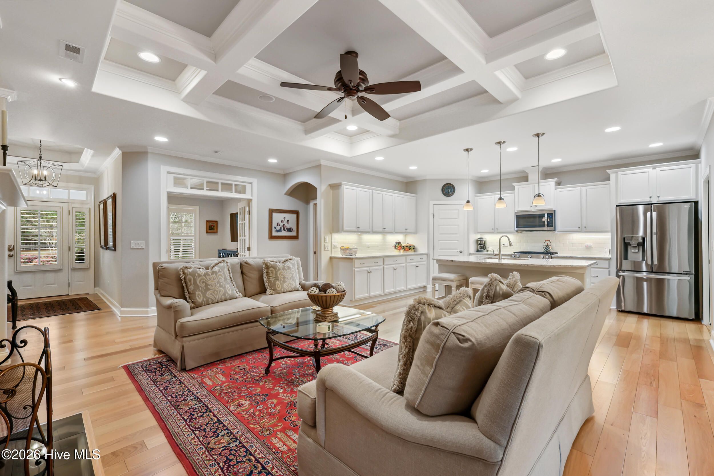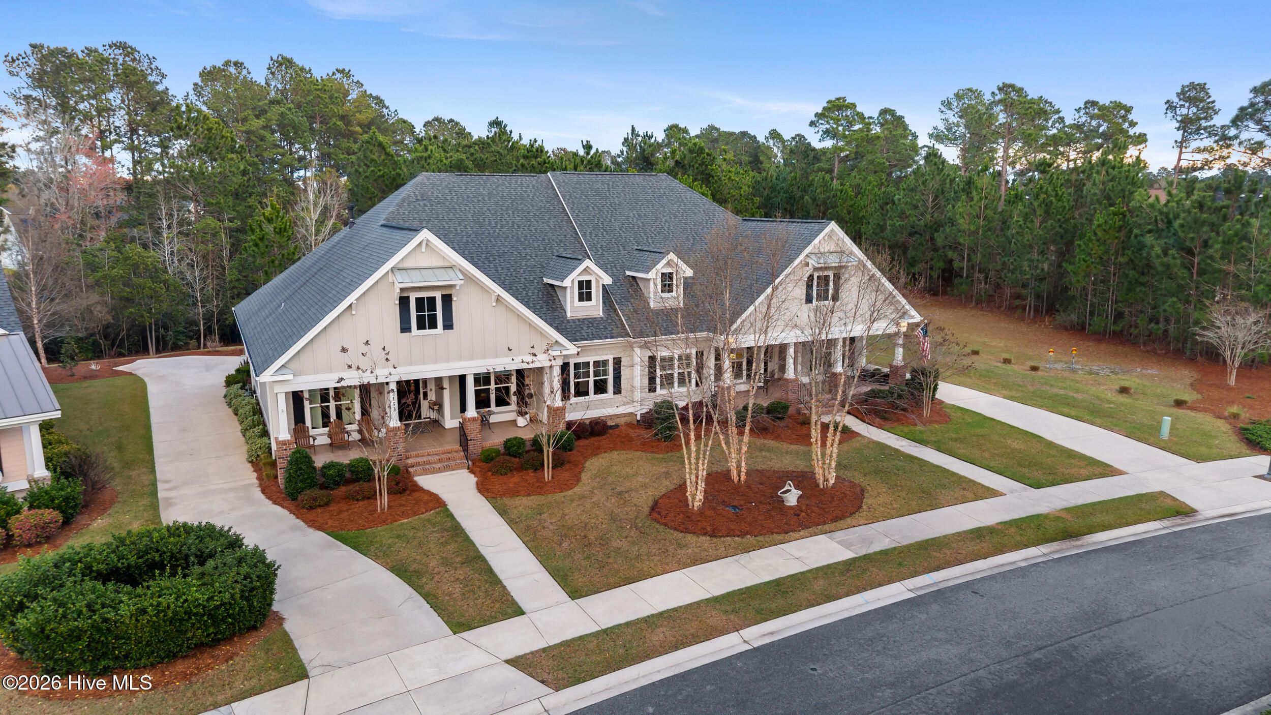 Beautifully maintained townhome by Trusst Builder Group, ideally located in the sought-after Shelmore neighborhood of Brunswick Forest. Enjoy a short stroll to Hammock Lake's fitness center, pool, and scenic lakefront beach. This rare homesite offers exceptional privacy with wooded views behind and no neighboring home on one side or directly across the street. A welcoming covered front porch leads into the foyer and open-concept Cedar Island II floor plan. The great room is both inviting and refined, featuring a gas fireplace flanked by custom built-ins, a coffered ceiling, and seamless access to a glass-enclosed sunroom (not heated/cooled) complete with remote-control sun shades -perfect for year-round enjoyment of the natural surroundings. The kitchen is designed for both everyday living and entertaining, offering abundant cabinetry, a center island with seating, subway tile backsplash, upgraded granite countertops, walk-in pantry, and stainless steel appliances. The dining area is accented with chair rail detailing and an illuminated tray ceiling. A dedicated office with glass French doors and a coffered ceiling provides an ideal work-from-home space. The primary suite is a private retreat with an illuminated tray ceiling, direct access to the lanai, and a luxurious ensuite bath featuring a quartz vanity, walk-in tiled shower, linen closet, and oversized walk-in closet. The main level also includes a secondary bedroom and full bath, spacious laundry room, and two-car garage. Upstairs, a versatile bonus room with walk-in attic access is complemented by a full bath - ideal for guests or additional living space. Additional highlights include hardwood flooring throughout the main living areas, plantation shutters, whole-house surge protection, generator, multi-zone HVAC, extended backyard patio, integrated sound system, and natural gas connections for the stove, fireplace, and water heater. HOA dues include full landscaping maintenance, master insurance, and select exterior building maintenance. Residents of Brunswick Forest enjoy exceptional amenities including multiple fitness centers, indoor and outdoor pools, tennis and pickleball courts, parks, trails, kayak/boat launch, playgrounds, and more.