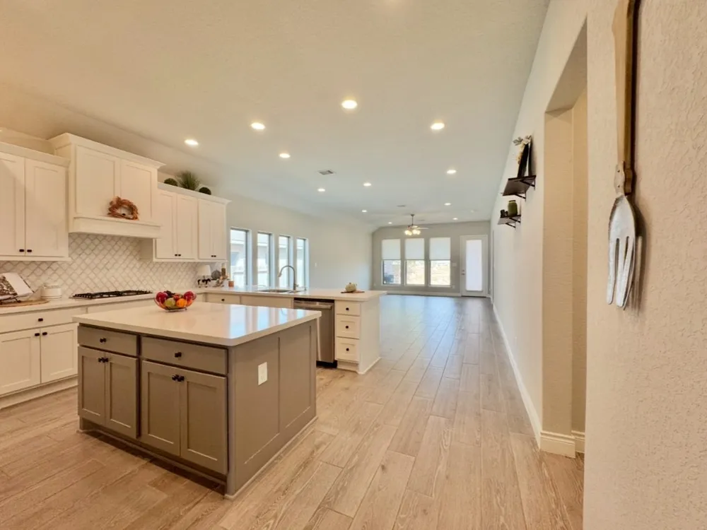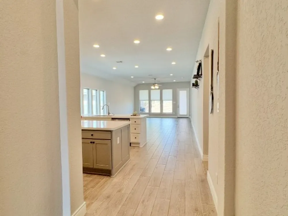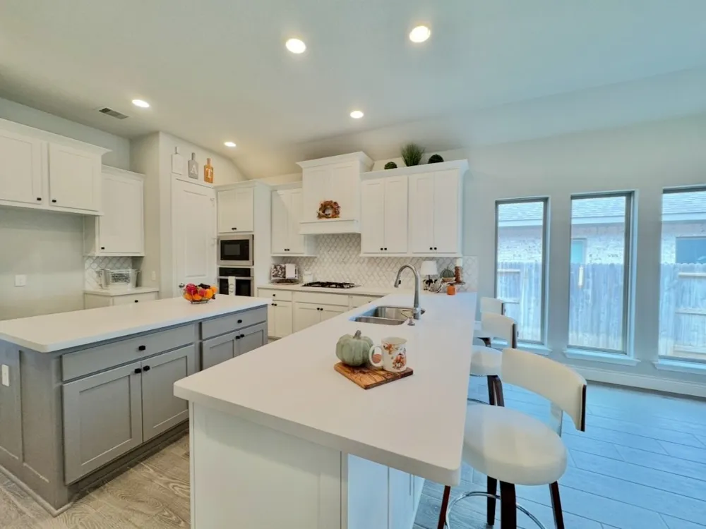 Welcome to 2157 Wildrye Lane! This home built by Perry Homes is sure to impress! With over 2100 sqft, this open concept floorpan consists of 4 bedrooms and 3 full baths! So much space for entertaining. The kitchen alone is any cooks dream with gorgeous quarts countertops, custom white cabinets, tile back splash, built in open and microwave, pantry, center island and breakfast bar that overlooks the dining and living area. The large windows throughout offer a ton of natural light. The primary bedroom is good size with a French door entry to the primary bath which consists of his and her vanities, an island soaker tub, huge walk in shower with arch window and a large walk-in closet. The other 3 bedrooms are separate from the primary bedroom. The two full baths are complete with a shower tub combo with one being connected to one of the bedrooms! Not to mention the large laundry room and mud space with built in hall tree! The backyard is nice and private with privacy fence and a stone back wall with no homes behind you. There is a covered back porch and nice landscaping already in place! Some other greats features include tankless water heater, water softener, sprinkler system, partial gutters, fiber internet and so much more! This home is like new and very well taken care of. Don't wait to schedule your showing today! Survey available