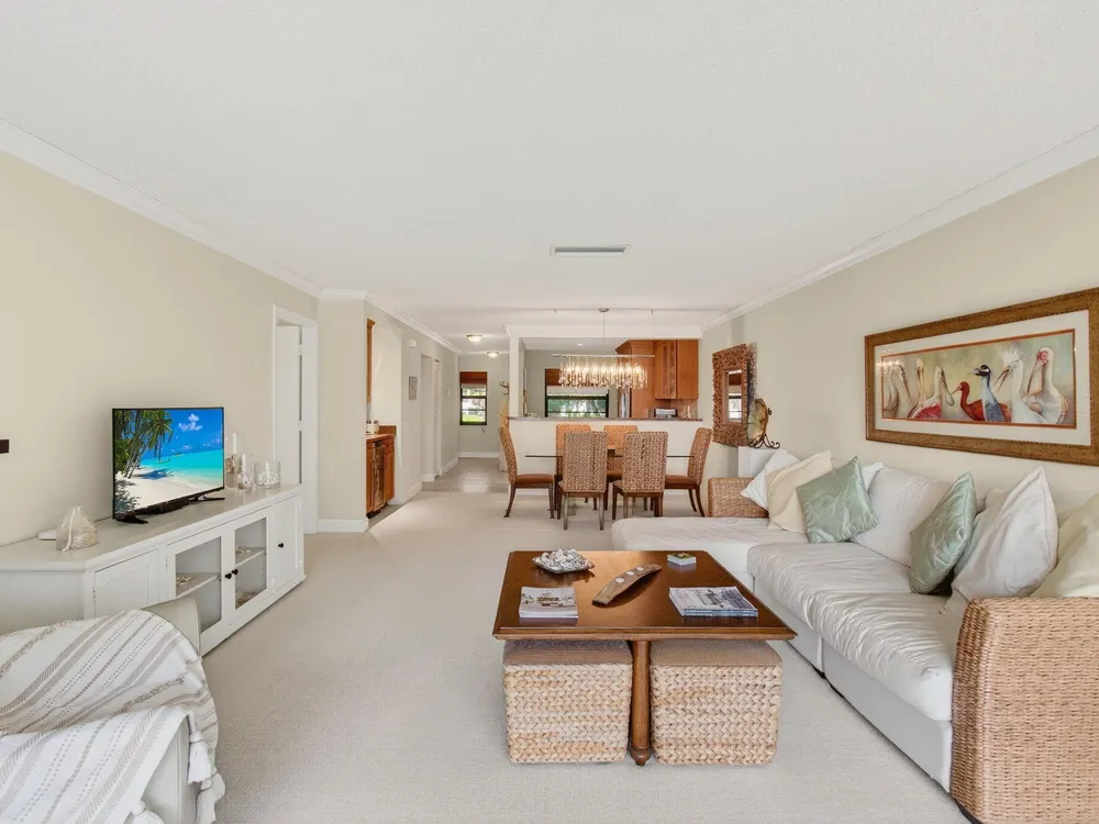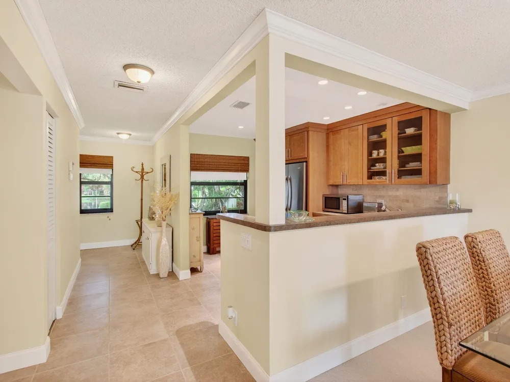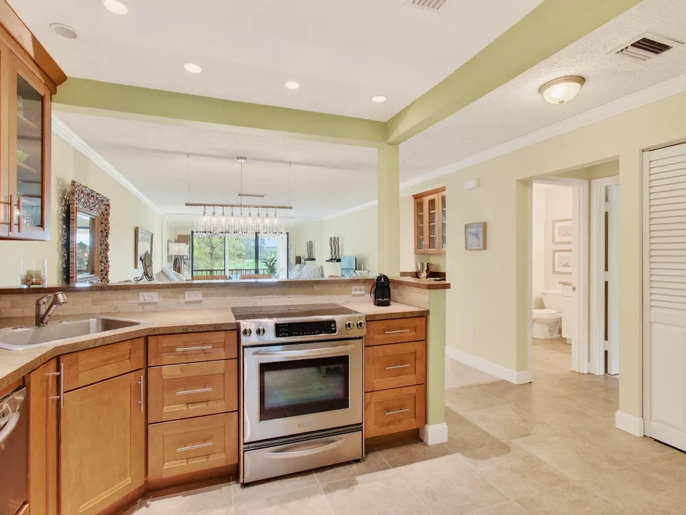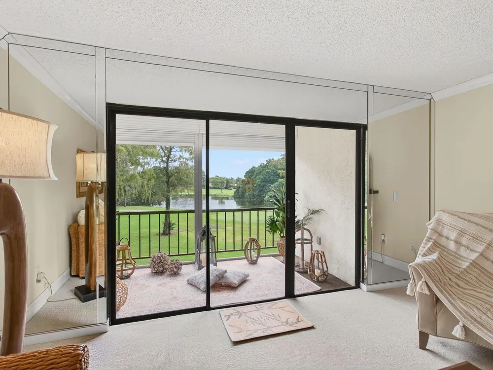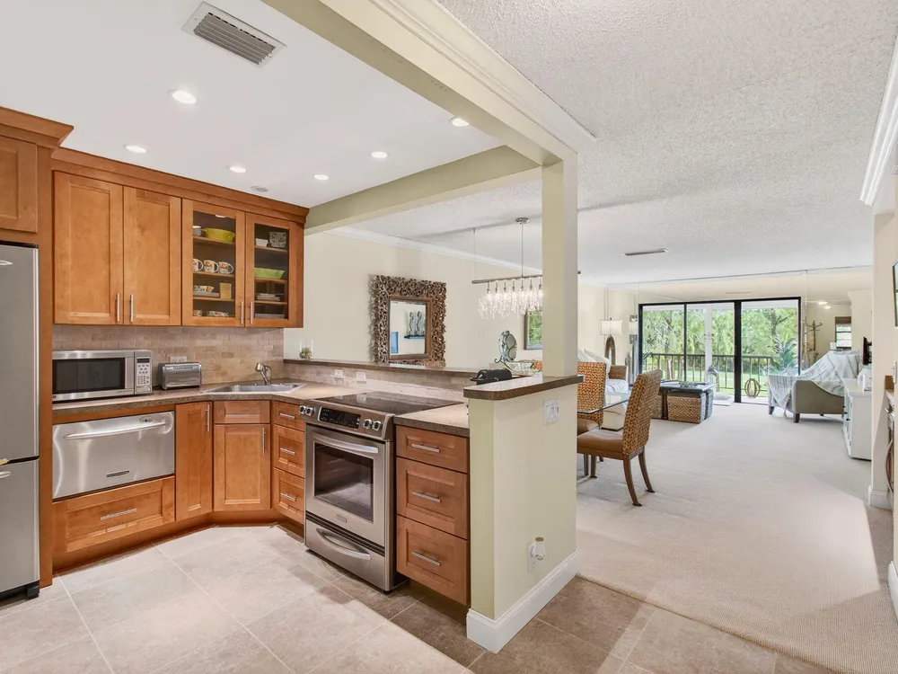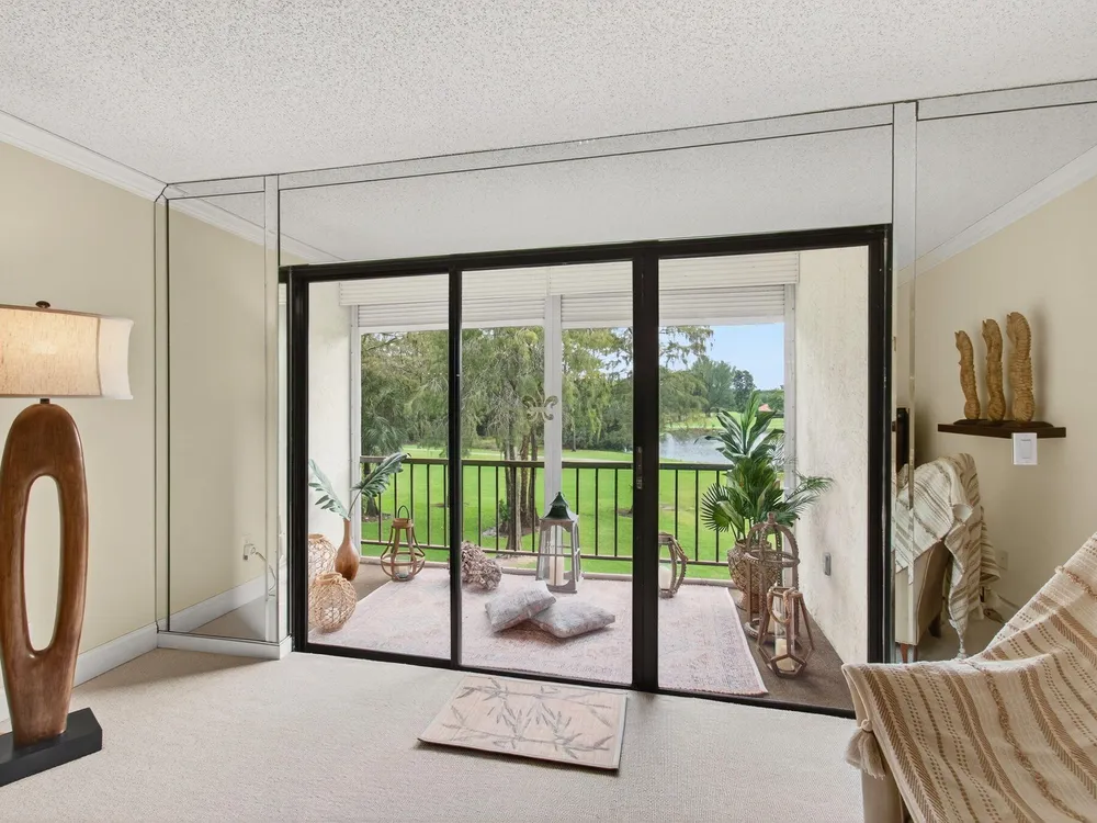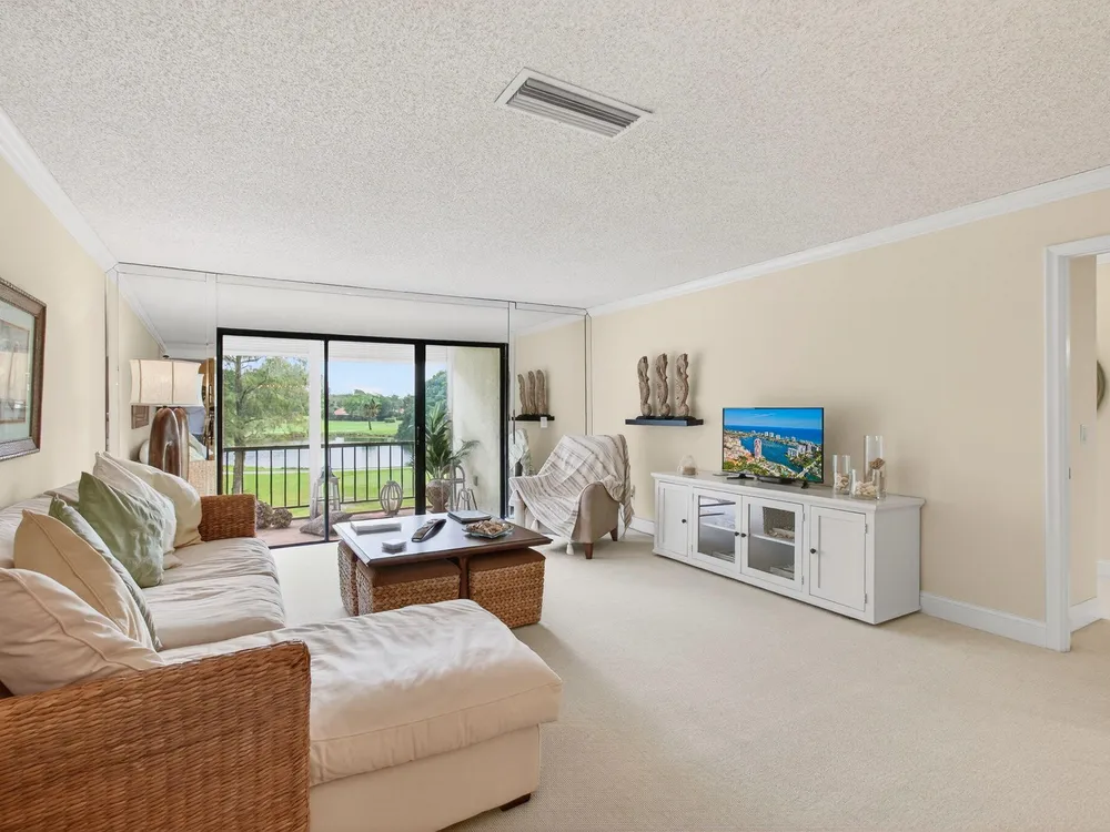 Discover this meticulously kept and beautifully furnished 2-bedroom, 2-bath home in the Vistas of Boca Lago, with desirable southeast exposure that fills the rooms with natural light. From the private balcony, enjoy tranquil lake views and sweeping golf course vistas. Inside, a renovated kitchen with stone countertops and stainless steel appliances opens seamlessly to the great room. The primary suite offers a walk-in closet and updated bath with granite vanity, complemented by a welcoming guest bedroom and bath. Sold fully furnished and move-in ready, this residence includes a washer and dryer, generous storage, and reserved parking. Located in a gated 55+ community just minutes from shopping, dining, and cultural attractions, it is attractively priced compared to current availability.