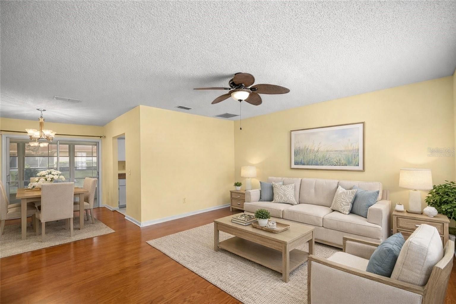 One or more photo(s) has been virtually staged. One or more photo(s) was virtually staged. Discover Carefree Living in Beautiful Ocala Palms Golf & Country Club! This charming Cocos II model offers the perfect blend of comfort and convenience in a premier 55+ gated golf community, featuring 2-bedrooms, 2-bathrooms, and a single-car garage. The well-maintained home boasts elegant plantation shutters throughout and a serene lanai overlooking a meticulously landscaped and spacious backyard. Move-in ready with all appliances included as well as a 2014 Roof and 2020 HVAC. Enjoy the convenience of Publix just across the street and quick access to the World Equestrian Center as well as I-75. Golf cart friendly community makes getting around a breeze! -----COMMUNITY AMENITIES----- Embrace the active adult lifestyle in this premier country club community featuring an impressive 18-hole golf course complemented by a dedicated driving range and putting green for perfecting your game. At the heart of the community stands a magnificent 19,000 square-foot clubhouse surrounded by top-notch amenities including: -Fully equipped fitness center - Sparkling outdoor Olympic-sized pool and hot tub - Year-round heated indoor pool - Versatile recreation spaces with card rooms, arts and crafts studio, and ballroom - Extensive library and game rooms - Outdoor recreation including: - Bocce ball courts - Shuffleboard courts - Walking/biking trails - Horseshoe pits - Manicured croquet lawns