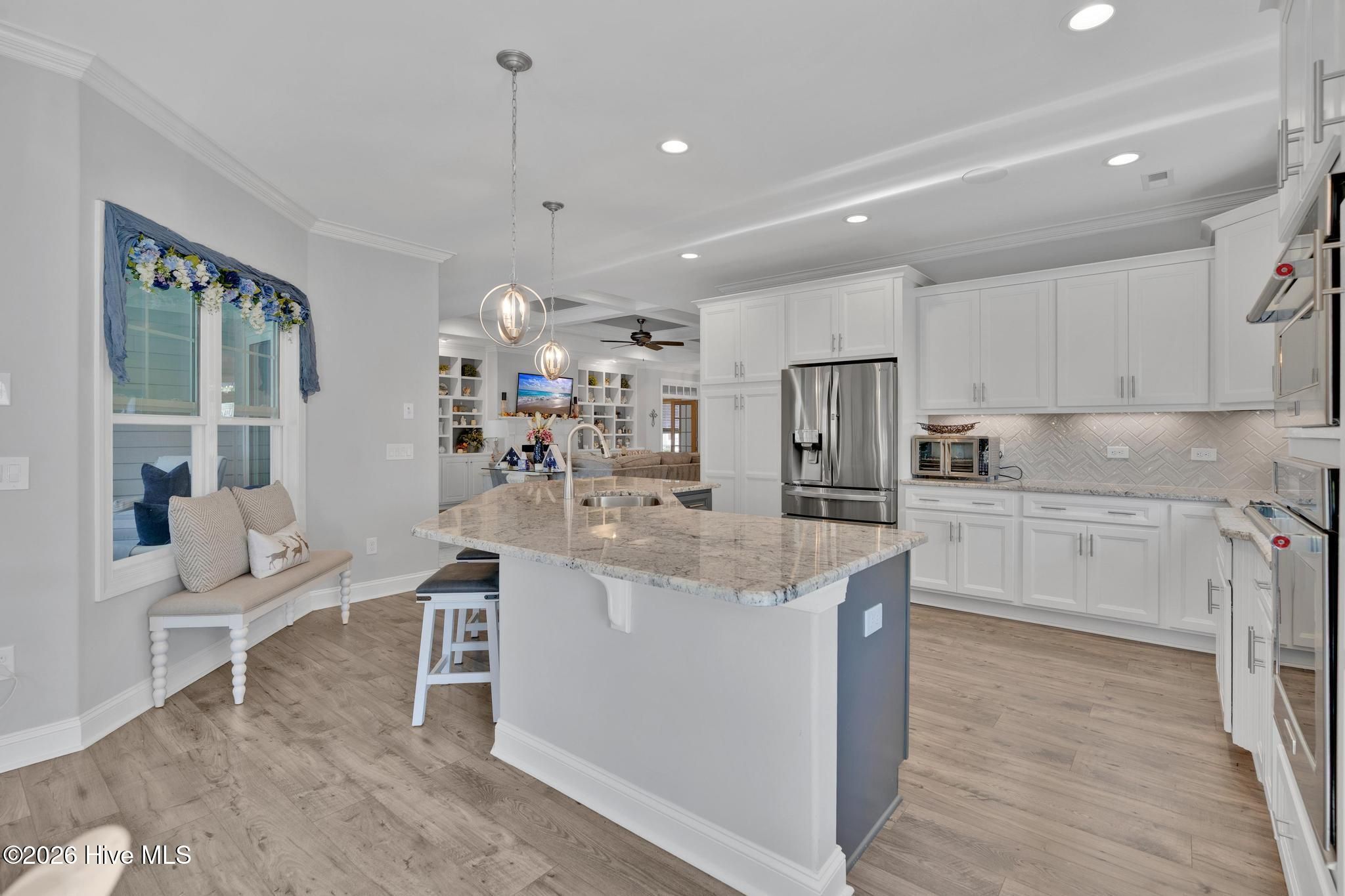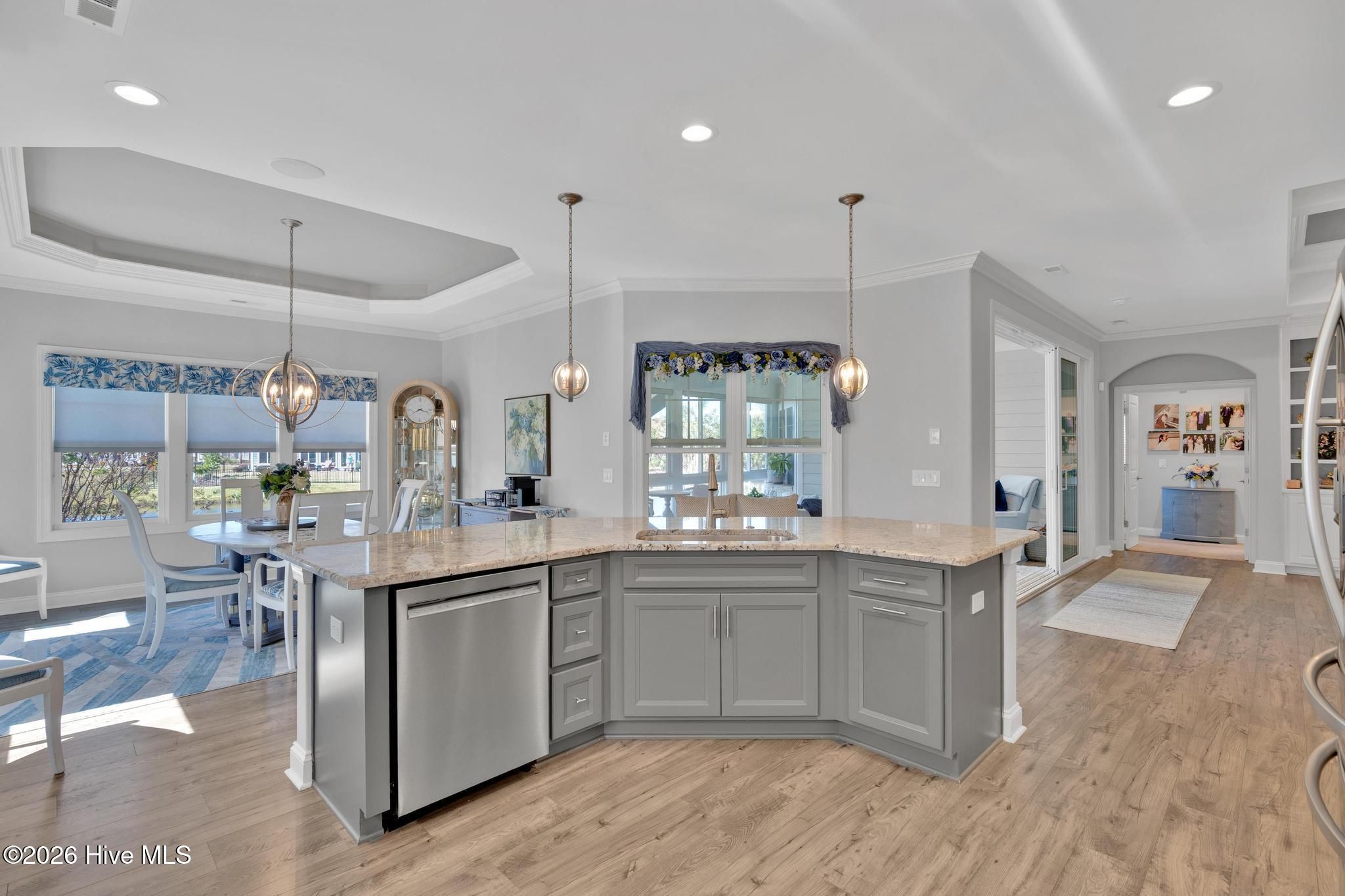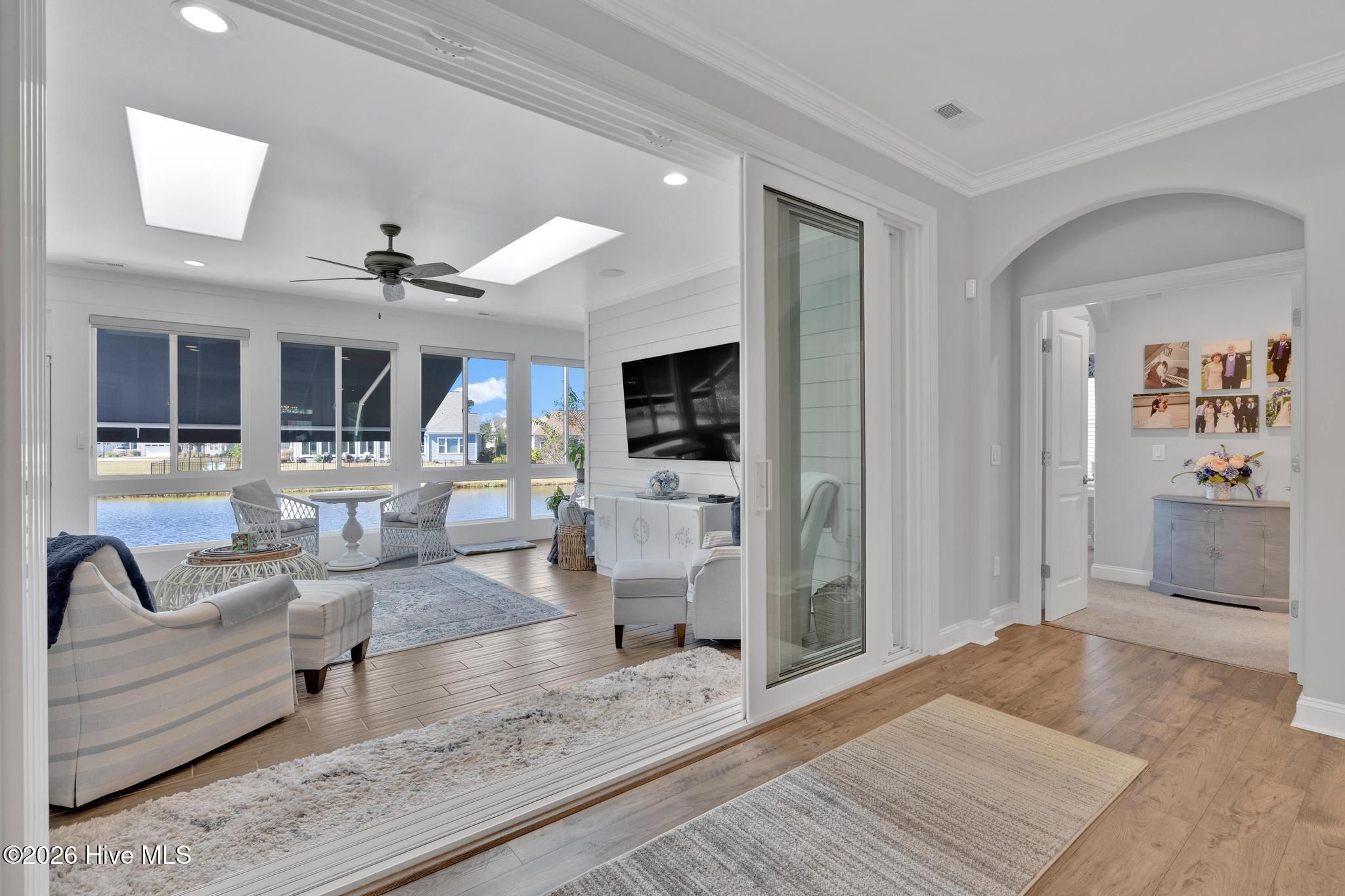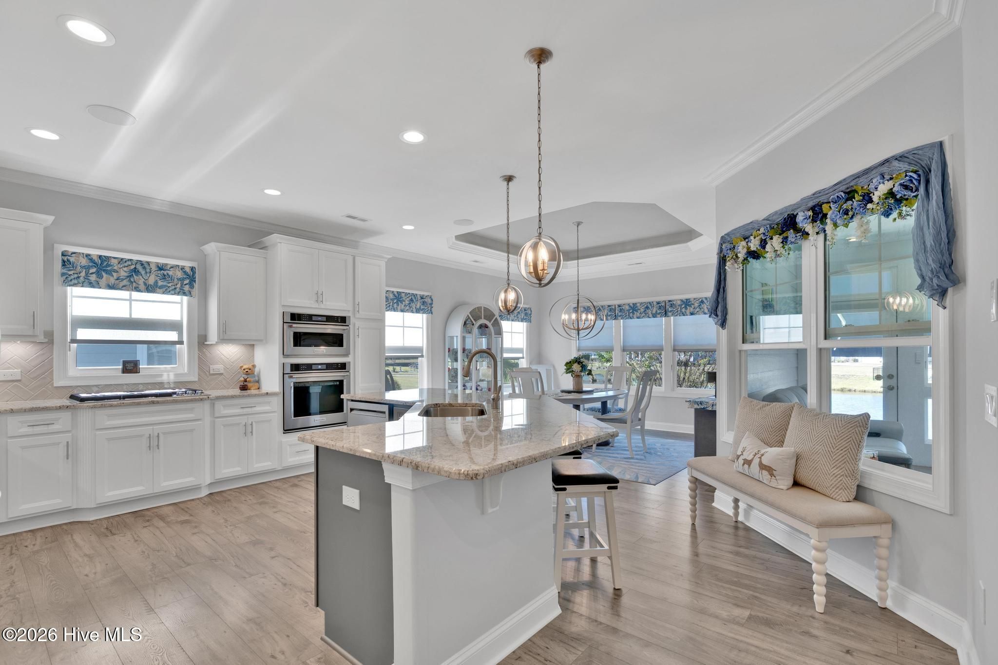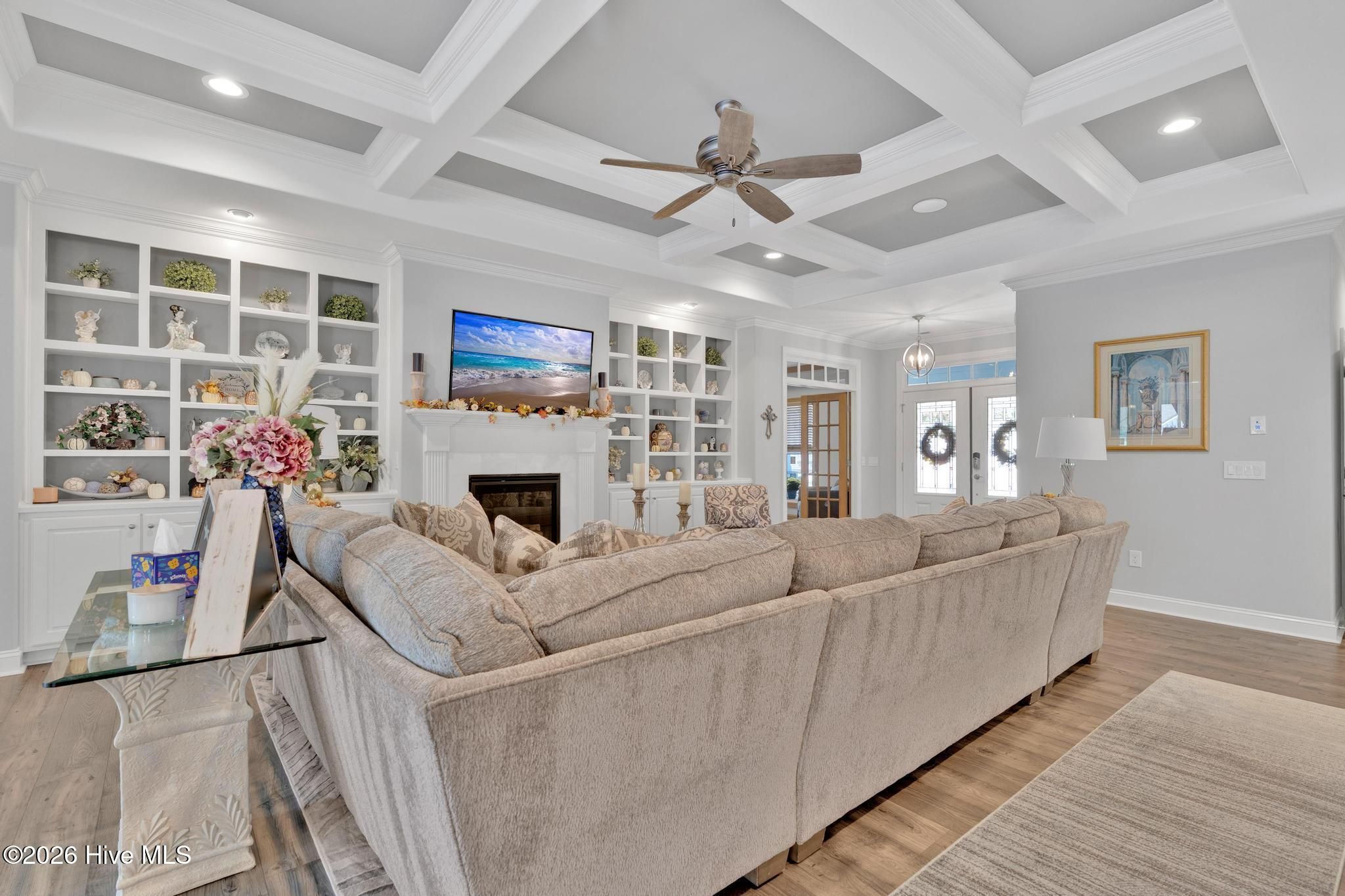 Thoughtfully designed and beautifully upgraded, this Trusst-built 2021 home in Compass Pointe offers 2,808 sq. ft. of refined coastal living with 3 bedrooms, 2.5 baths, and a layout that blends elegance, comfort, and functionality. A dedicated home office is conveniently located off the main living area, ideal for remote work or a quiet retreat. The home opens into a spacious, open-concept living area filled with abundant natural light, highlighted by a gas fireplace with custom shelving, creating a warm and inviting focal point. This expansive space flows effortlessly for both everyday living and entertaining, showcasing countless upgrades and designer touches throughout. The spacious primary suite serves as a calming sanctuary with a spa-inspired ensuite bath, double sinks, walk-in shower and his/her closets. Two additional bedrooms provide comfortable accommodations for guests with their own bathroom. At the heart of the home, the kitchen connects seamlessly to the living and dining areas and features a convection oven, making it perfect for both everyday cooking and hosting. Soft close cabinets and drawers for easy use. Just beyond, the large sunroom acts as a true extension of the living space, where walls of windows frame tranquil pond views and flood the home with natural light—ideal for morning coffee or evening relaxation. The oversized garage offers generous room for vehicles, golf carts, and ample storage, adding convenience rarely found. Set against a peaceful pond backdrop, this home delivers privacy and serenity in a beautiful coastal setting. Residents of Compass Pointe enjoy resort-style amenities including a championship golf course, grand clubhouse, indoor and outdoor pools, lazy river, fitness center, tennis and pickleball courts, scenic walking trails, and a vibrant social calendar—just minutes from downtown Wilmington, beaches, shopping, and dining. Coastal luxury, open space, and lifestyle—perfectly combined