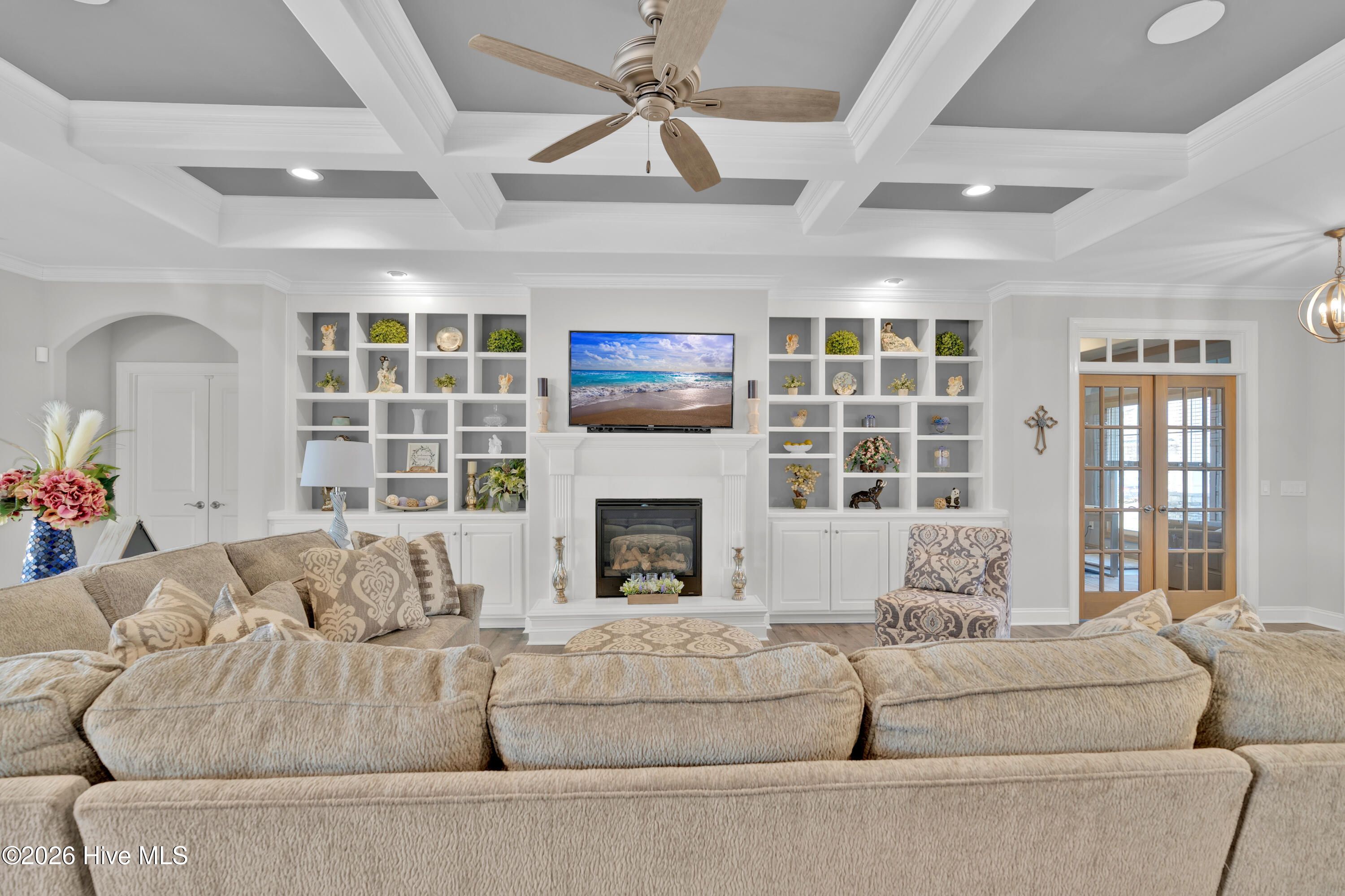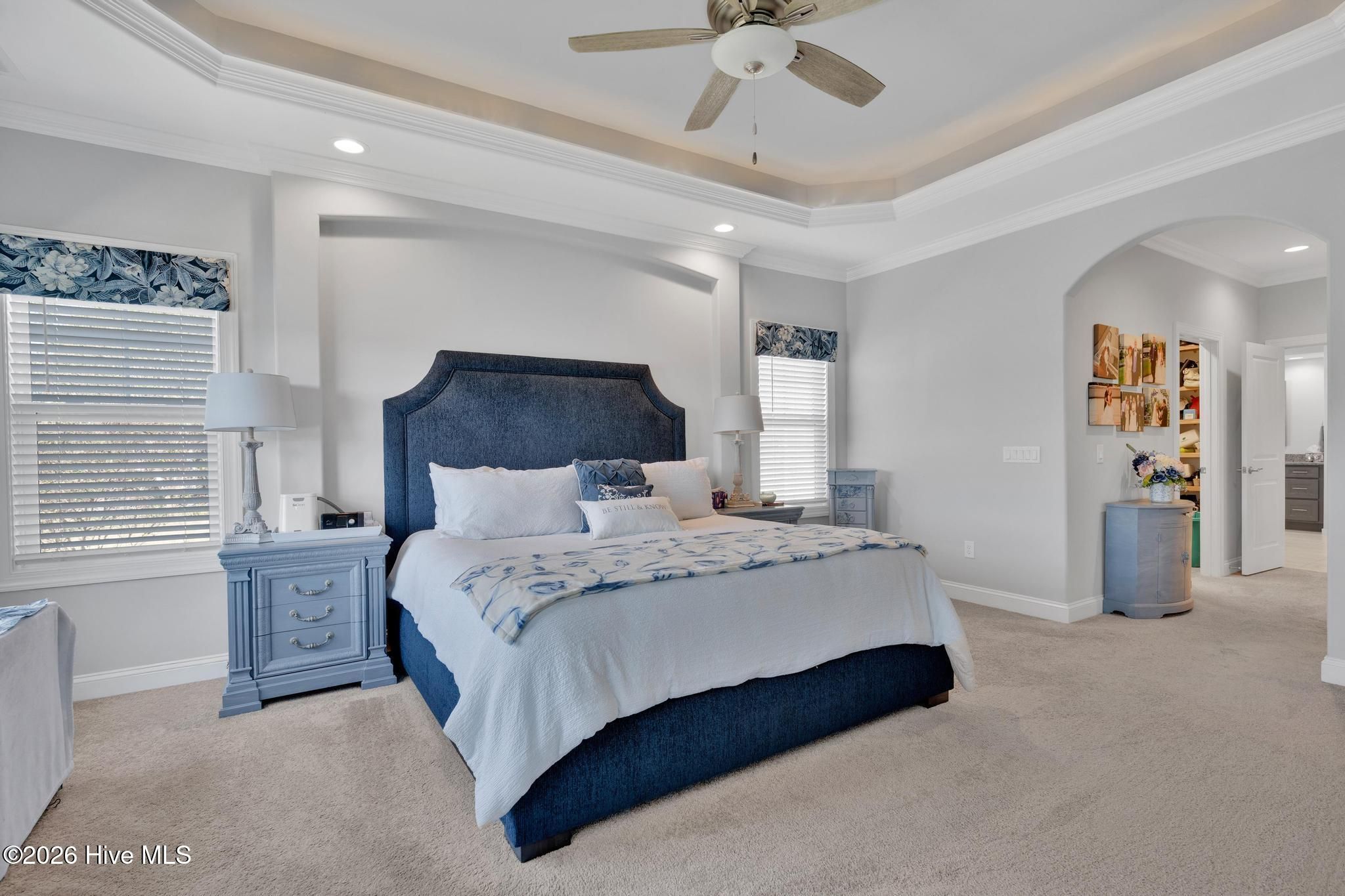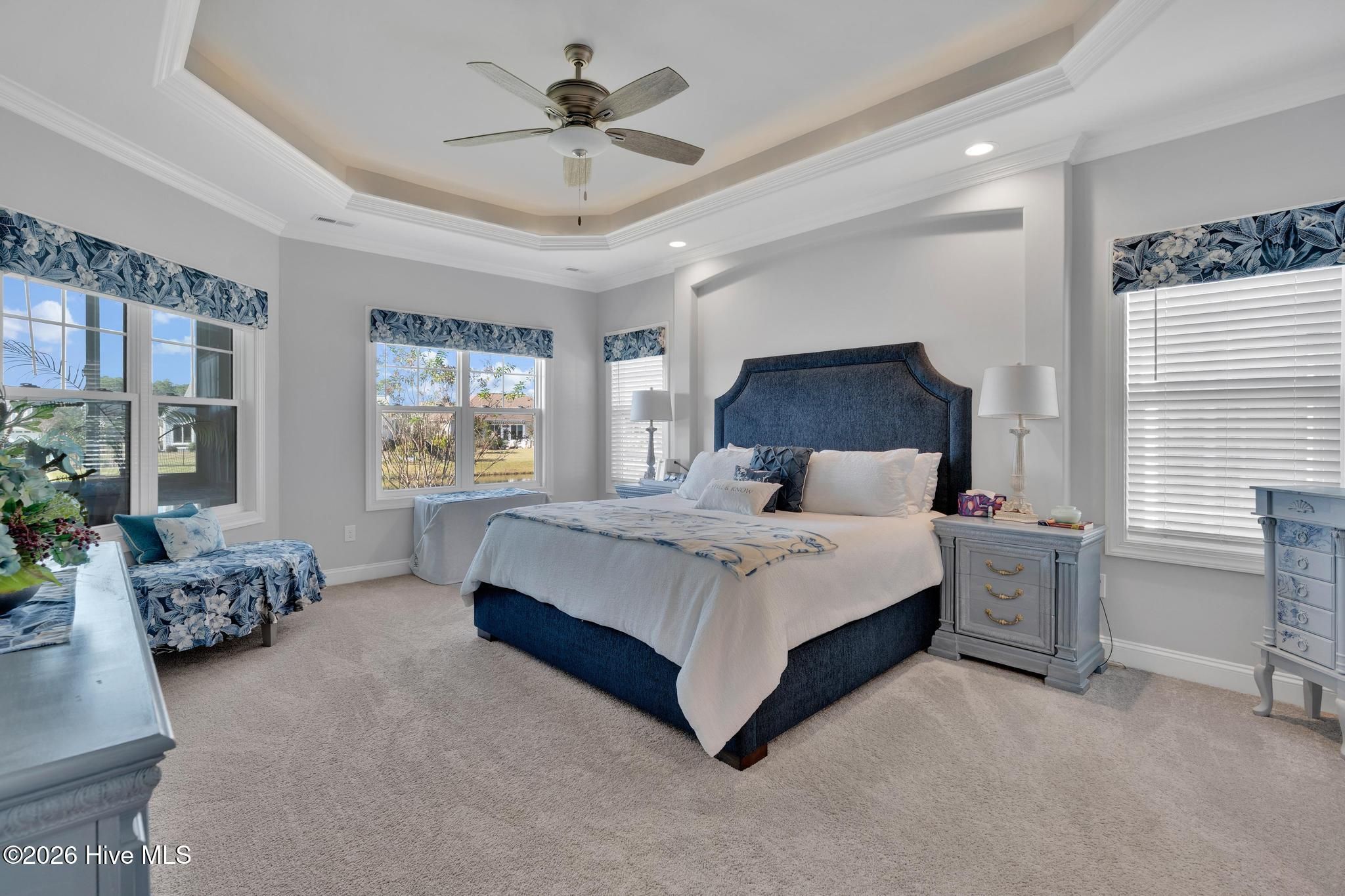- Sound System, Master Downstairs, Walk-In Closet(s), Tray Ceiling(s), High Ceilings, Entrance Foyer, Mud Room, Solid Surface Counters, Generator, Bookcases, Kitchen Island, Ceiling Fan(s), Pantry, Walk-In Shower, Blinds, Built-in Features, Eat-in Kitchen