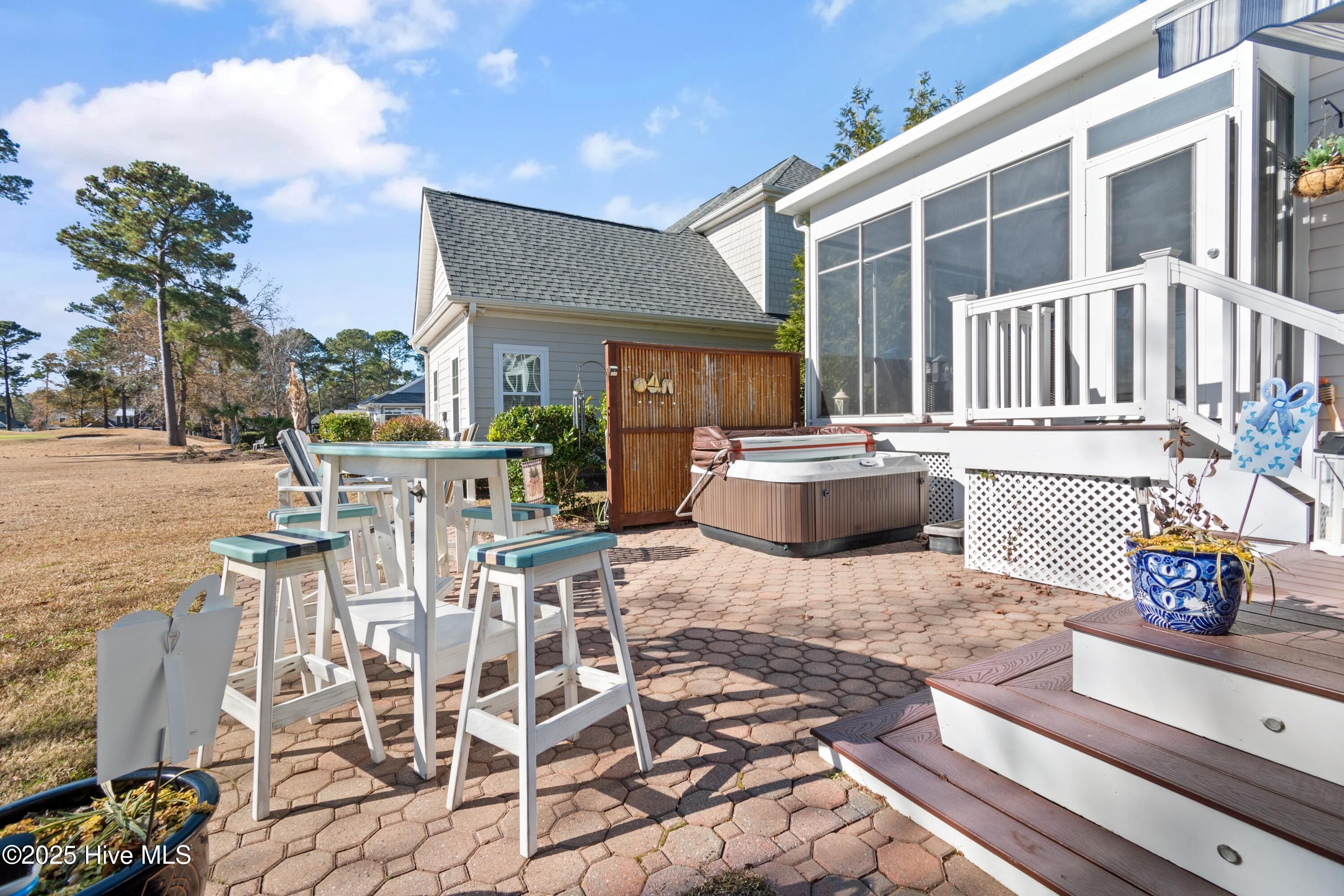 Check all your boxes with this amazing home available in Sea Trail overlooking the Jones Golf Course with a Carolina Room, Screened Porch, Trex Decking with new Remote Awning, Patio, Outdoor Shower, and Hot Tub to relax and unwind in your private backyard oasis with beautiful landscape lighting. New Roof 2020, Hot Water Heater 2022, HVAC 2021, Encapsulated Crawlspace 2021, Seller providing Supreme Home Warranty. Inside you will find an inviting open floor plan with a gas fireplace to cozy up to on these chilly winter nights. All 3 bedrooms on the main floor and a flex room upstairs. Oversized garage and many other included features. Only a 5-6 minute drive to Sea Trail private parking on Sunset Beach. Yes, there is more to enjoy with Sea Trail Resort Style Amenities including 3 championship golf courses, fine dining, multiple pools, tennis and pickleball courts, fitness center, sauna, hot tub, library, and chapel. Residents also enjoy a wide variety of clubs and social activities. Schedule your tour today!