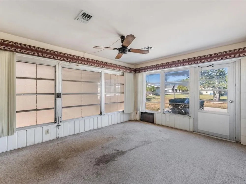 Welcome to your perfect Florida retreat! This 2 bedroom, 2 bathroom single family home with a 1 car garage is nestled in the heart of Sun City Center, one of Florida's premier 55+ active adult communities. Whether your seeking an active lifestyle or prefer the quiet enjoyment of home, this property has the best of both worlds. The living room and dining room combo with new carpet is great for entertaining. Enjoy your morning coffee or read a book in the climate controlled enclosed lanai, with a nice concrete patio to enjoy some sunshine. The 1 car garage provides extra storage and easy access, with room for your golf cart-essential for getting around this golf cart friendly community. This home also has a 2024 central air conditioner unit with fresh interior and exterior paint. Call for a showing and see your next home.