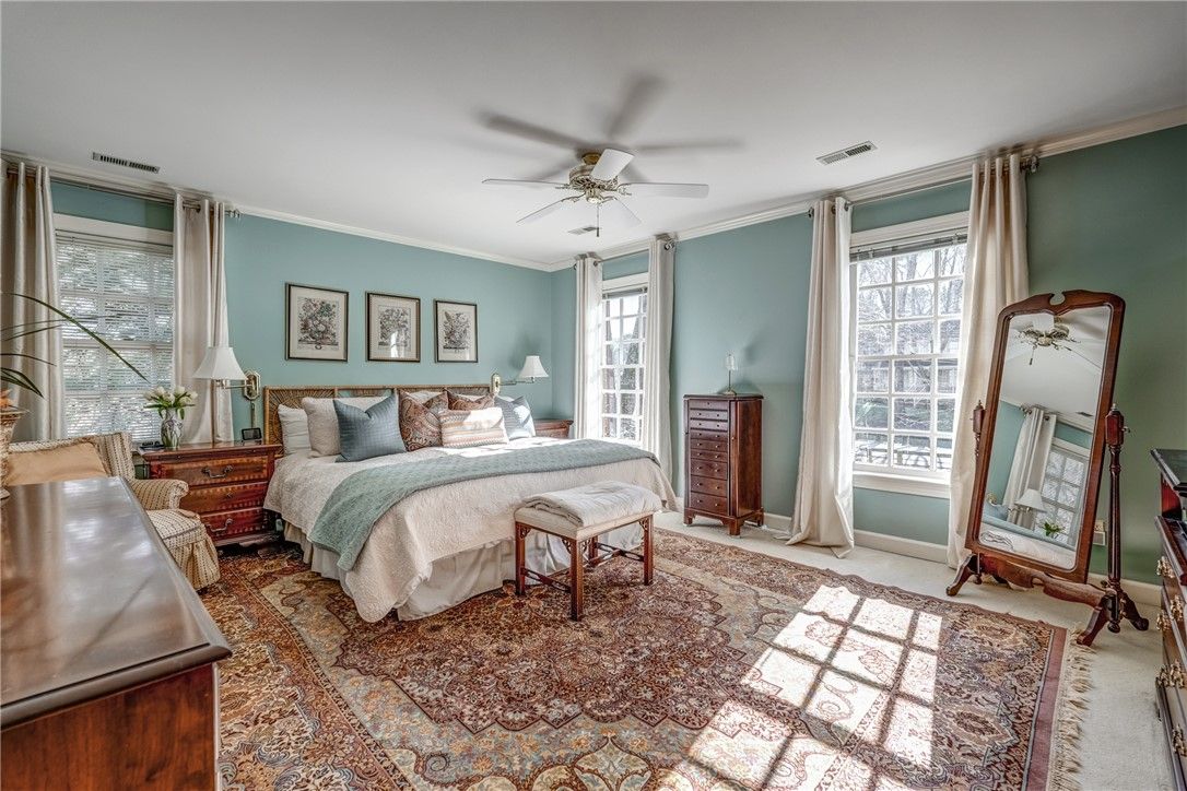 - Attic Access, Wet Bar, Bookcases, Built-in Features, Ceiling Fan(s), Dining Area, Separate/Formal Dining Room, Double Vanity, High Ceilings, Kitchen Island, Laminate Counters, Pantry, Recessed Lighting, Walk-In Closet(s)