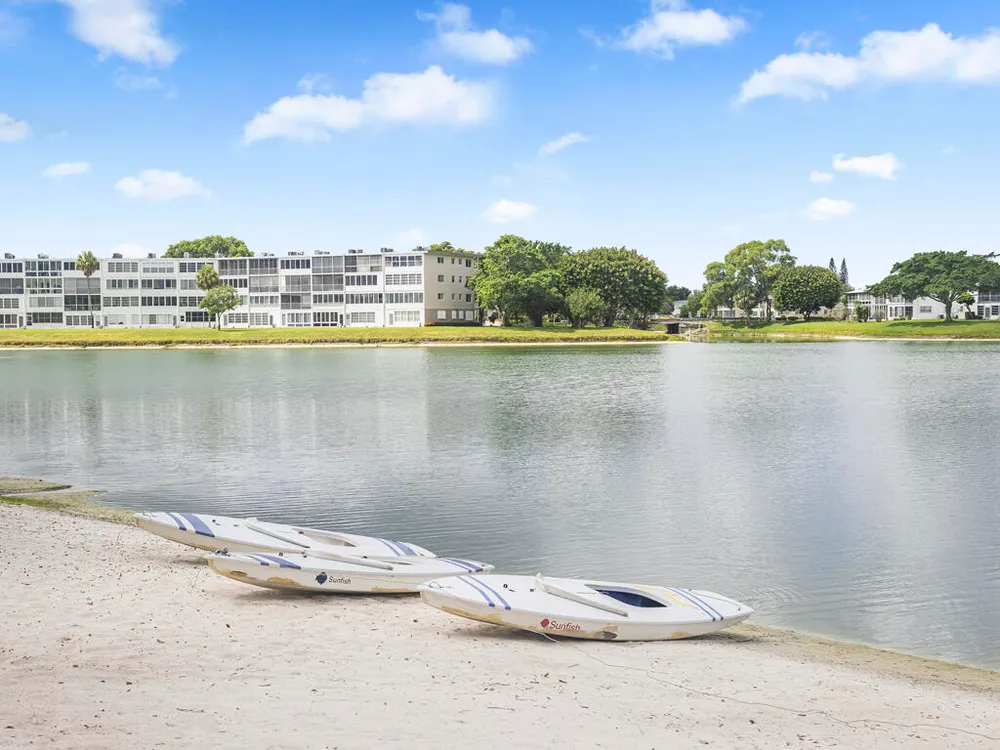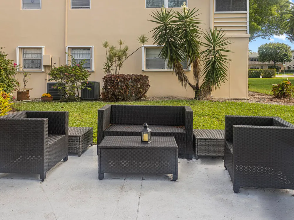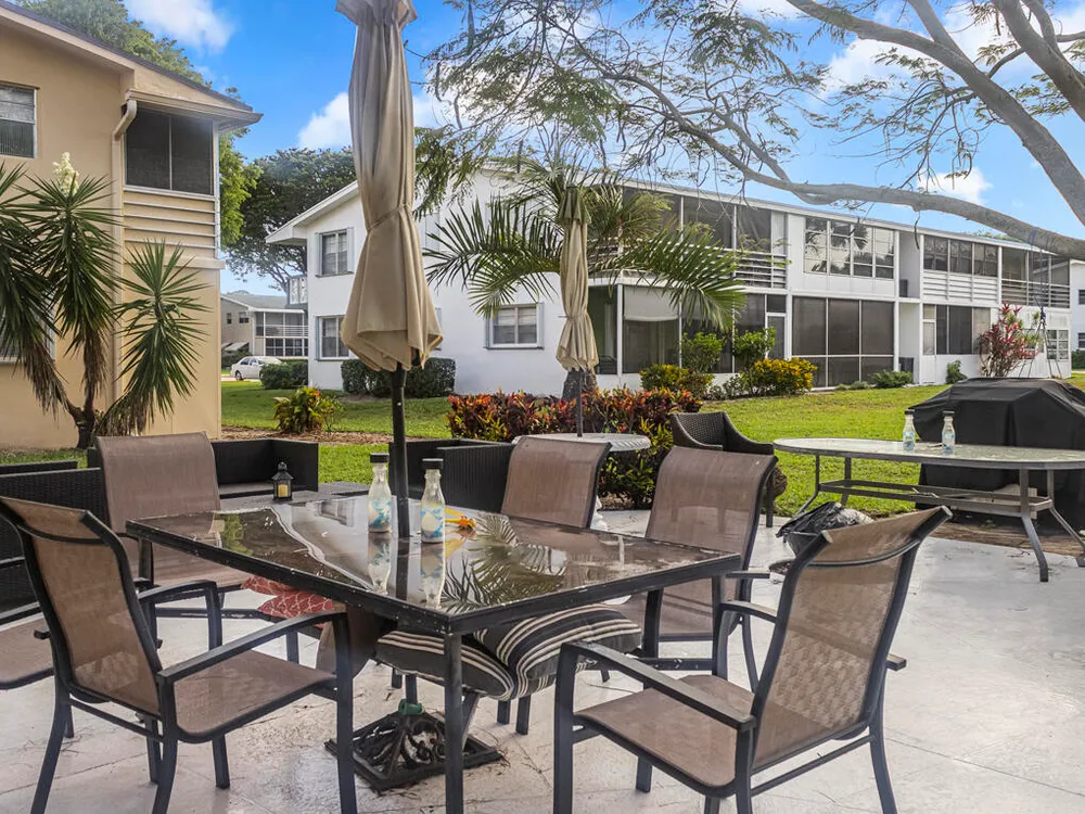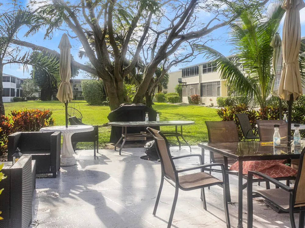Fully Renovated 1BD/1.5BA Corner Condo in Century Village - Resort-Style 55+ Living!Step into comfort and style with this beautifully updated 2nd floor corner unit featuring 1 bedroom, 1.5 bathrooms, and an enclosed patio with east/west exposures for all-day natural light. The spacious bedroom easily accommodates a king-size bed and includes his and hers'' closets. Flooring includes laminate in the living room and kitchen, tile in the bathrooms, and soft carpet in the bedroom.Completely open, modern kitchen with brand-new cabinets, ceramic tile flooring, and an abundance of counter space. All stainless steel appliances including refrigerator, electric range, vent hood, and dishwasher. Water heater and central A/C are approximately 7 years old. Please note: No Rentals Allowed