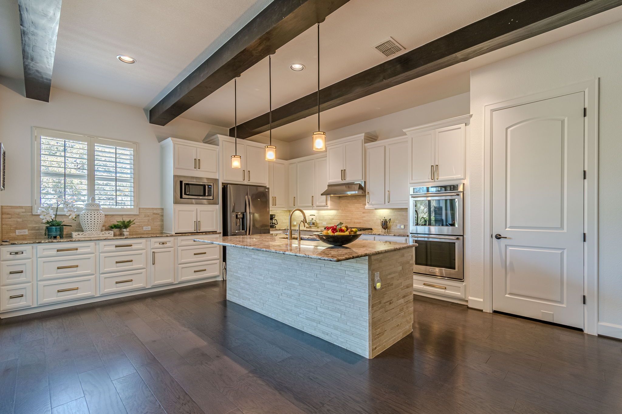 - Built-In Electric Oven, Cooktop, Dishwasher, Gas Cooktop, Disposal, Gas Water Heater, Microwave, Oven, Range Hood, Water Softener