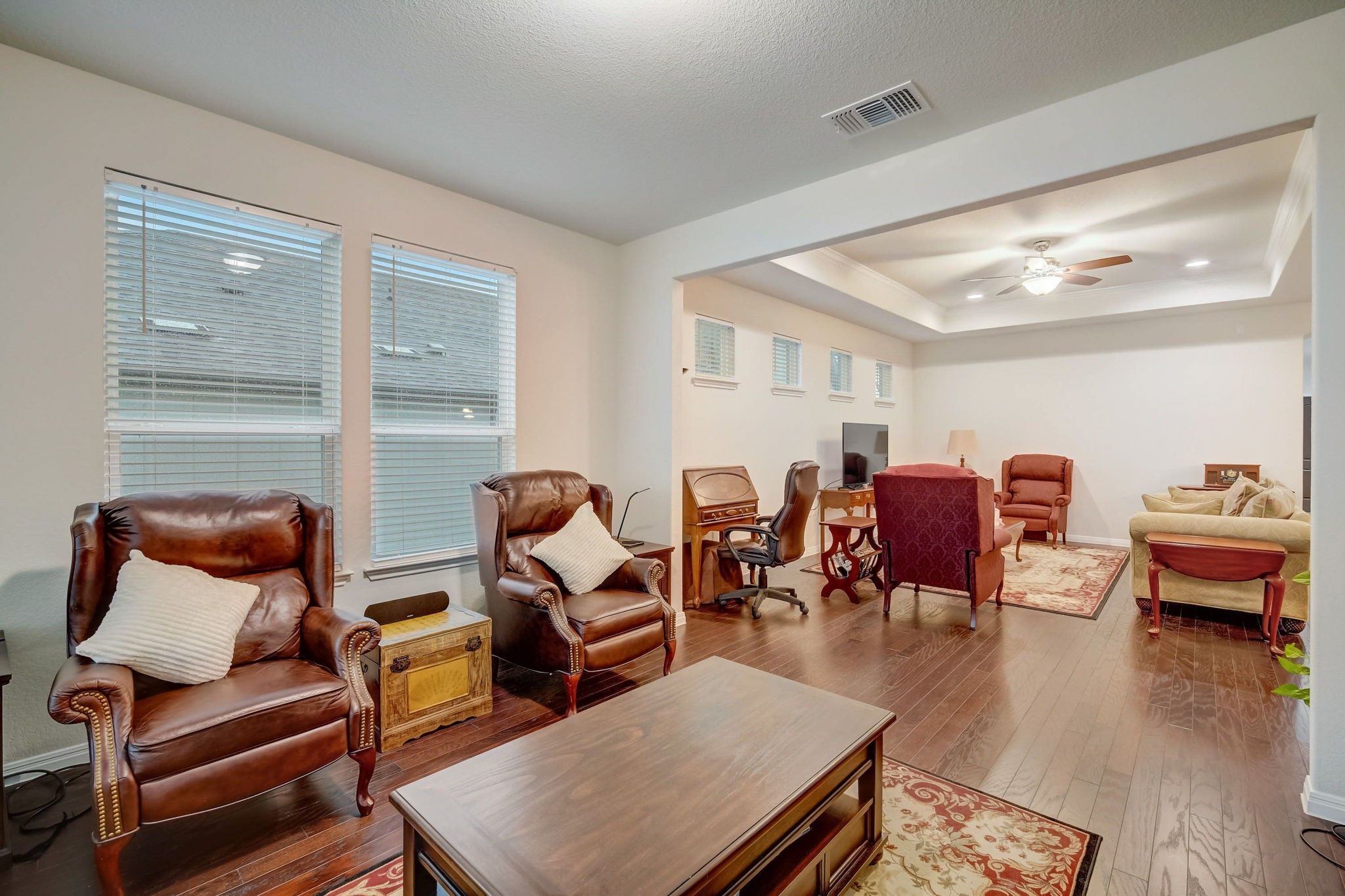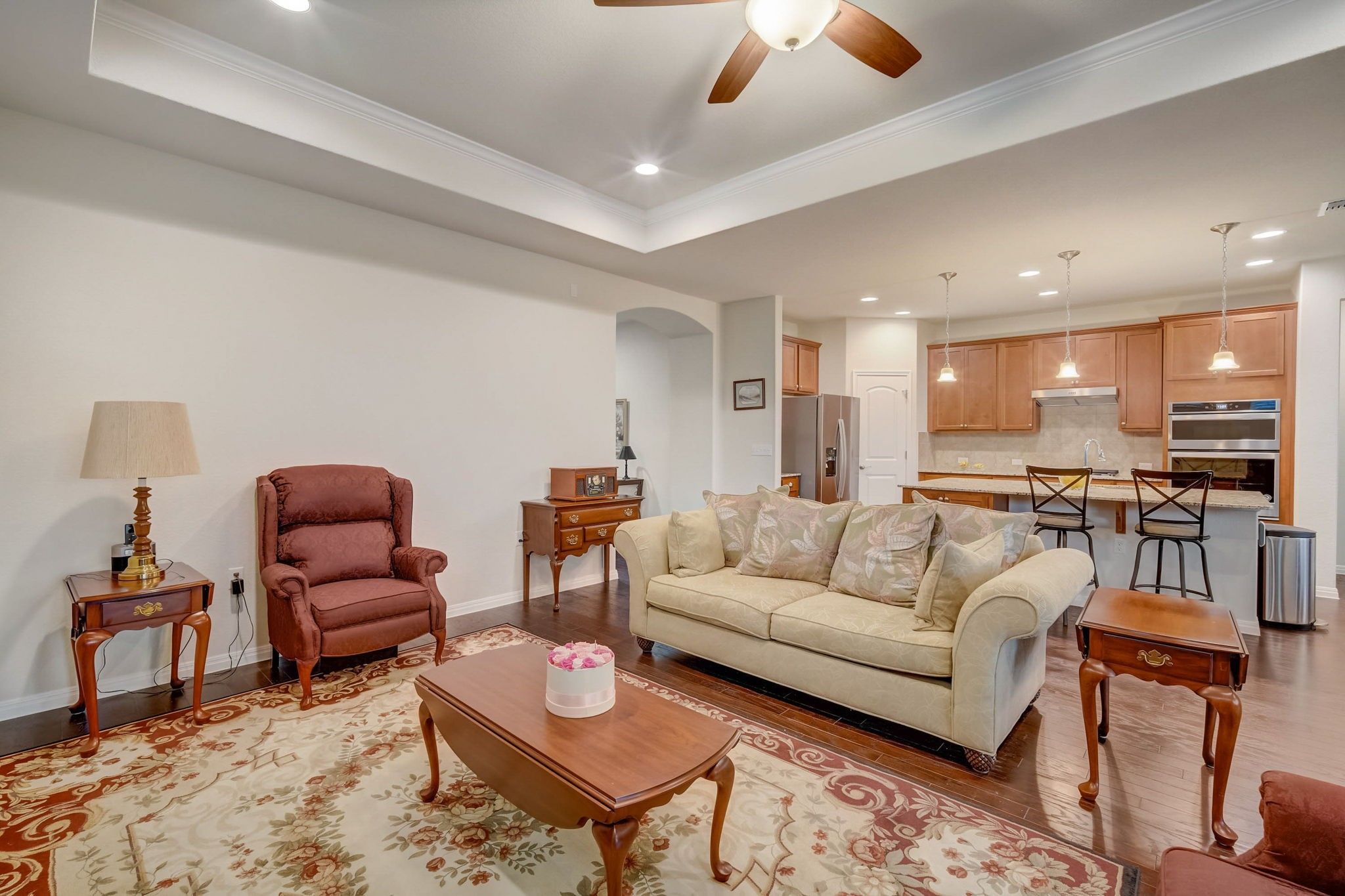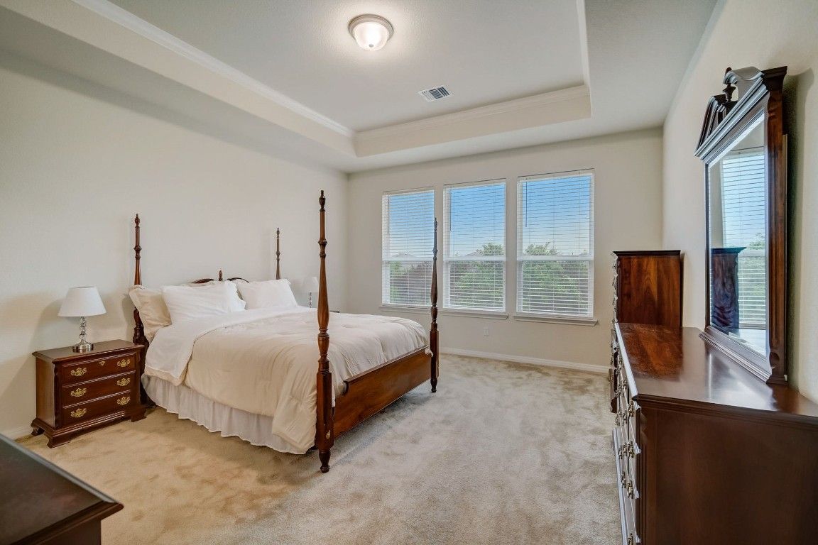 - Tray Ceiling(s), Ceiling Fan(s), Crown Molding, French Door(s)/Atrium Door(s), Granite Counters, High Ceilings, Kitchen Island, Main Level Primary, Recessed Lighting, Walk-In Closet(s)