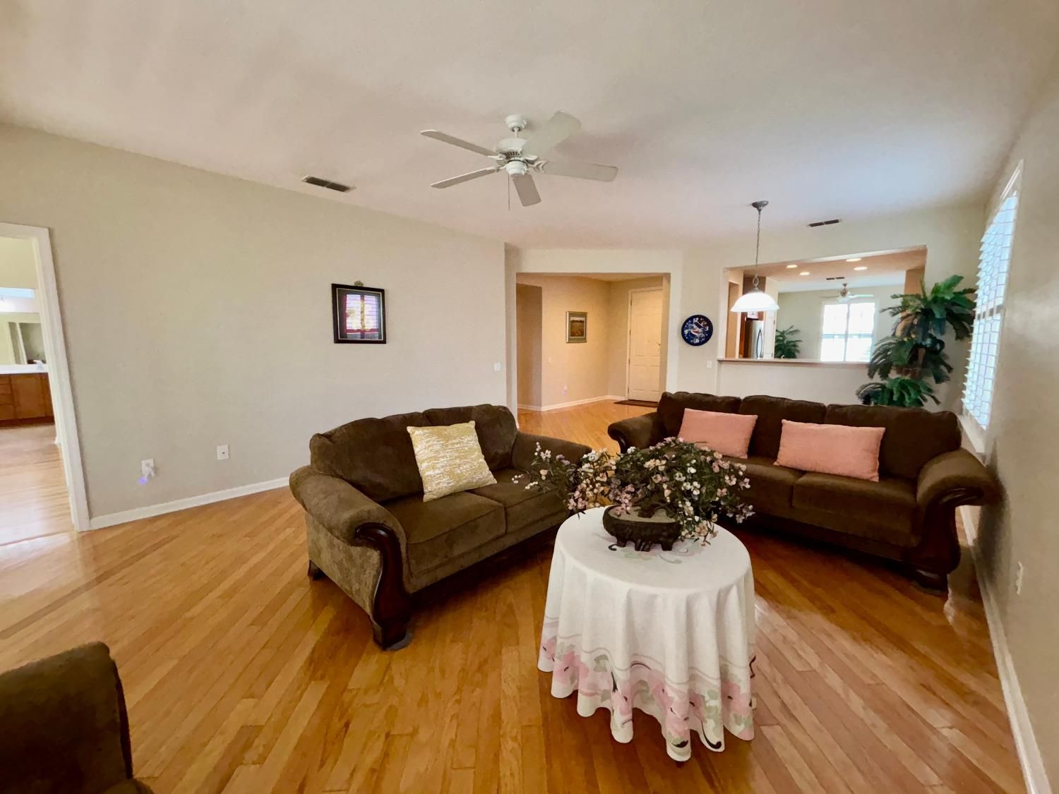 PRICED TO SELL! Upgraded Tehama Model 2Bedrooms/2Baths/Office approx 1795 sqft. UPGRADES: 2019 New HVAC, Laminated Wood Flooring, SS Appliances, Extended Aggregate Backyard Patio. 2O21 Hot Water Heater. 2023 Side Garage Door & 2024 Lg Garage Door Opener replaced. HOME FEATURES: Ceiling Fans, Shutters throughout, No Carpet & No Kitec per Builder. Kitchen has Maple Cabinets w/pull-outs, Under counter Lights, Gas 5-Burner Stove, Refrigerator, Microwave, DW & Lg Pantry. Primary Bedroom has Bump-out & Primary Bath with Separate Water Closet, Dual Sinks, Raised Vanity, Lg Shower and Walk-in Closet. Inside Laundryroom w/Extra Cabinets, Washer & Dryer Included. Kitchen appliances Convey w/No Seller Warranty. Spacious Backyard w/Covered Patio, Pergola, Remote-Control Shade, Fan/Light & Lawn. 2025 Home, Pest & Roof Inspections and work done. Close to Lincoln Hills Clubhouse & Local Shopping.