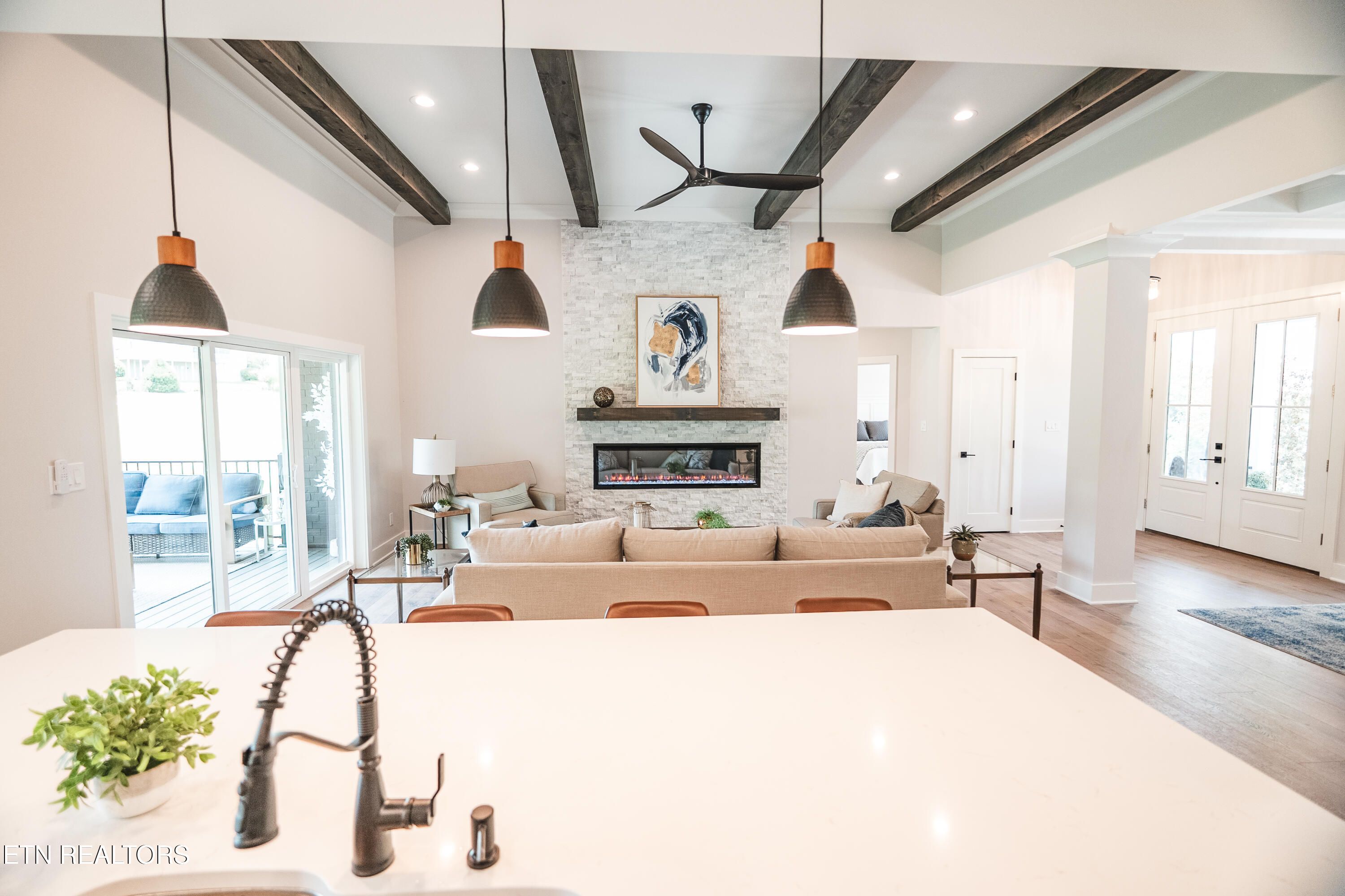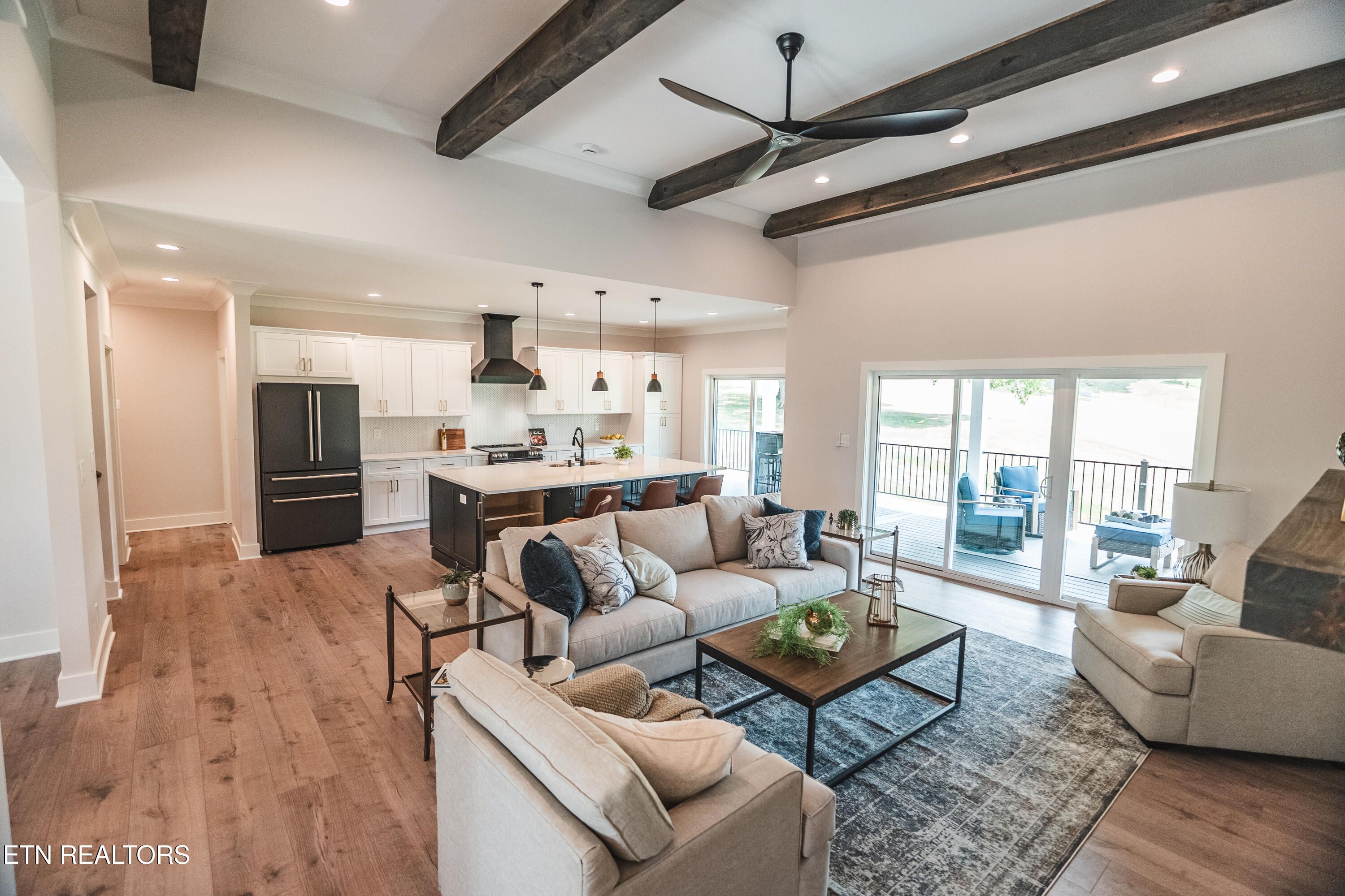 Rare Toqua Golf Course residence! Wake to golf views and enjoy lake views from the porch. This 4BR/4.5BA designer home features soaring ceilings, hardwoods, quartz, a chef's kitchen with GE Cafe appliances, and a spa-inspired owner's suite. Entertain on the 60' deck or in the heated/cooled man cave garage. Tellico Village amenities, free 1-year golf membership, and special financing available! WHERE GOLF MEETS GRANDEUR. THE LAST NEW HOME ON TOQUA GOLF COURSE. This new 4BR/4.5BA luxury residence is the only remaining new build on Toqua Golf Course a rare opportunity to own a home that blends modern sophistication with breathtaking views of both the course and Tellico Lake. DESIGNER LUXURY AT EVERY TURN Step inside to find custom lighting, upscale plumbing fixtures, rich hardwood floors, and quartz countertops. The gourmet kitchen boasts GE Café appliances in a sleek black finish, a large island, and abundant storage, perfect for everyday living and entertaining. A PRIMARY SUITE WORTHY OF A RETREAT The main-level owner's suite impresses with 11-foot ceilings, a premier walk-in closet, and a spa-inspired bath featuring a huge walk-in shower, brushed gold fixtures, and refined tilework. INDOOR-OUTDOOR LIVING AT ITS FINEST The open floor plan flows seamlessly from the 12-foot wood-beamed living room ceiling to the formal dining room with coffered ceiling, and out through expansive glass doors to a 60-foot deck with covered seating and extended dining space overlooking the golf course. From the front porch, enjoy peaceful lake views. VERSATILITY BELOW Downstairs, enjoy an 850+ sq. ft. heated/cooled "man cave" garage with a private safe room perfect for a workshop, hobby haven, or custom retreat. EXCLUSIVE LOCATION & FINANCING Nestled on a quiet cul-de-sac with no neighbor on one side. Special financing available with the seller's preferred lender: 2/1 buy-down starting at 3.99%, or 30-year fixed at 5.00% for qualified buyers. TELLICO VILLAGE LIFESTYLE Residents enjoy three championship golf courses, multiple marinas, full-service clubhouses with dining, state-of-the-art wellness centers, indoor/outdoor pools, pickleball and tennis facilities, and year-round events. Includes a free one-year golf membership plus an exclusive buyer perk for getting around the Village in style.