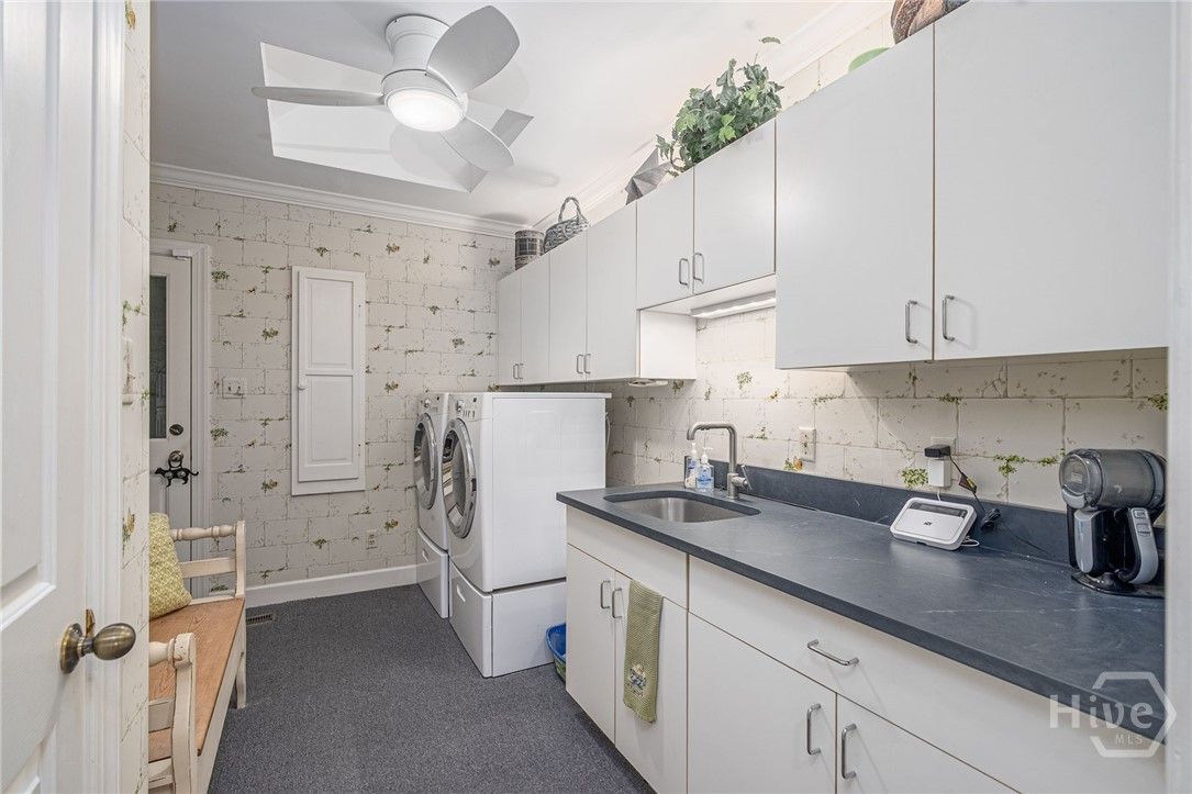 - Attic, Wet Bar, Built-in Features, Tray Ceiling(s), Ceiling Fan(s), Double Vanity, Entrance Foyer, Kitchen Island, Main Level Primary, Pantry, Permanent Attic Stairs, Recessed Lighting