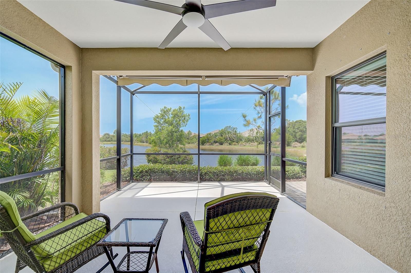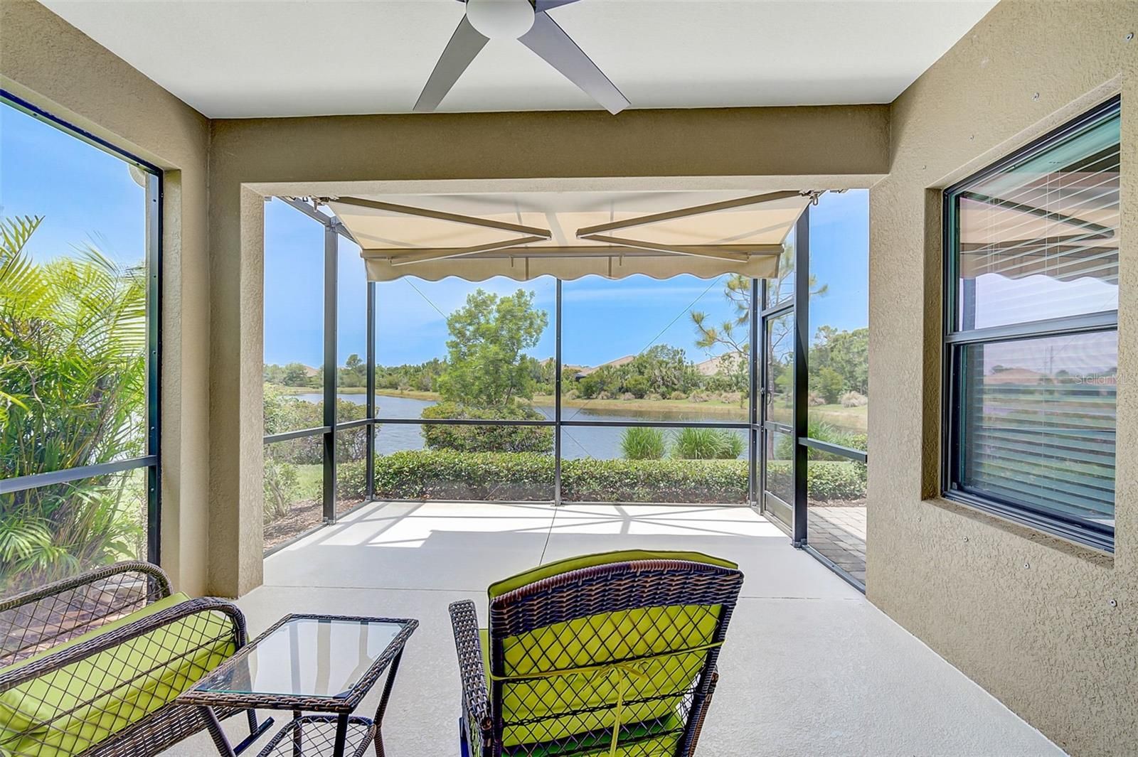 Priced to sell, lakefront villa on a quiet cul-de-sac lot for under $400,000. Opportunities like this in Grand Palm are rare. Welcome to this impeccably maintained villa located in the beautiful, gated, and highly sought-after Grand Palm community of Venice. Style and comfort come together with an unforgettable wide lake view, offering a peaceful setting and a true Florida backdrop. This flexible floor plan includes two spacious bedrooms, two full bathrooms, a den, and an extended covered and screened lanai, ideal for relaxed Florida living. The interior has been freshly updated with interior paint and a neutral color palette, creating a bright and inviting atmosphere from the moment you enter. The kitchen is both stylish and functional, featuring dark wood cabinetry, granite countertops, stainless steel appliances, a designer subway tile backsplash, gas cooking, and a large center island, perfect for casual dining or entertaining. The open living area is filled with natural light and highlighted by triple pocket sliding doors and a tray ceiling, seamlessly blending indoor and outdoor spaces. The primary suite offers a comfortable retreat with a large walk-in closet and an ensuite bath with dual vanities and a spacious walk-in tiled shower. Tile flooring runs throughout the main living areas, with carpeted bedrooms for added comfort. Step outside to the extended lanai and enjoy clear, tranquil lake views, ideal for morning coffee, evening relaxation, or simply taking in Florida’s natural surroundings. The lanai also features a power shade awning for added comfort and flexibility. Grand Palm is an amenity-rich community with low HOA fees, offering two resort-style amenity centers, multiple pools, a splash pad and water slide, fitness center, eight pickleball courts, miles of walking and biking trails, dog parks, and a full-time activities coordinator. Conveniently located just minutes from the highly sought-after Wellen Park, featuring new shopping, restaurants, Costco, the Atlanta Braves Spring Training facility, and more. Also just a short drive to Siesta Key, Venice Beach, Englewood Beach, Manasota Key, and Boca Grande, with nine public beaches within 30 minutes, plus nearby golf courses, state parks, and everyday conveniences. This home delivers location, lifestyle, and value in one package. Start living the Florida lifestyle today.