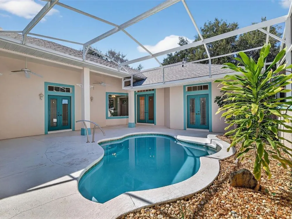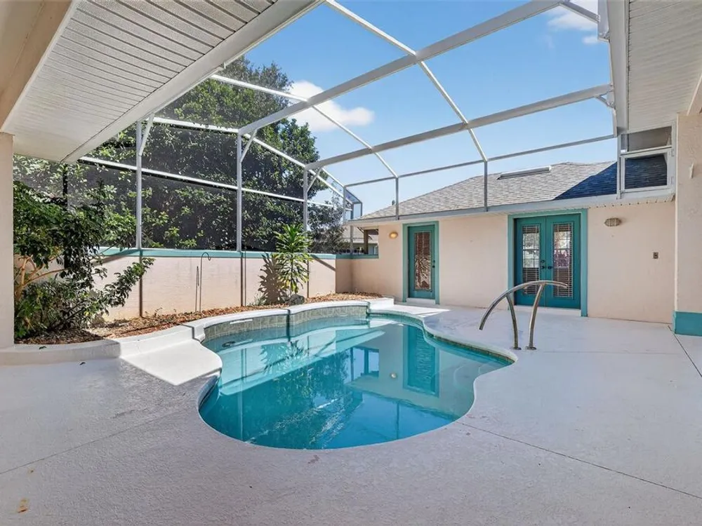 Welcome to this expanded Duke model in the highly desirable 55+ community of Royal Highlands—a home that truly has it all. Perfectly situated on a large cul-de-sac conservation lot, this residence offers both privacy and a sense of retreat. Step into the welcoming courtyard and discover your enclosed lanai and sparkling pool with a generous 6-foot depth at the center. Just off the pool, a private Casita serves as an ideal third bedroom, guest suite, or in-law retreat. Inside, a spacious foyer opens to a stunning 22x18 great room with a cozy gas fireplace, creating a central gathering space filled with warmth and charm. A formal dining room provides the perfect setting for entertaining, while the kitchen features tile floors, granite countertops and a cheerful breakfast nook overlooking the pool. The owner’s suite is a true retreat, showcasing floor-to-ceiling windows with serene conservation views, a walk-in closet, and a spa-like bath with dual sinks, a jetted tub, and a separate shower. Additional highlights include a generously sized guest bedroom and bath, a large inside utility room (ideal for crafts or hobbies), and an office/flex space that can adapt to your lifestyle. The oversized 25x20 garage offers abundant space for two cars, a golf cart, or a workshop. Thoughtful extras include two water heaters (gas and electric), ample storage throughout, and a brand-new roof and fully paid-off solar panels—keeping electric bills low and energy efficiency high. With its spacious floorplan, flexible living spaces, and desirable location, this home is an opportunity not to be missed. ?? Schedule your private showing today and experience all that this exceptional property has to offer! Royal Highlands is a premier, resident-owned community offering two pools (indoor & outdoor), an 18-hole golf course, restaurant, pro shop, tennis & pickleball, softball, billiards, fitness center, and a grand recreation hall for concerts, plays, and social events. HOA fee includes cable, internet, and secure RV/boat storage.