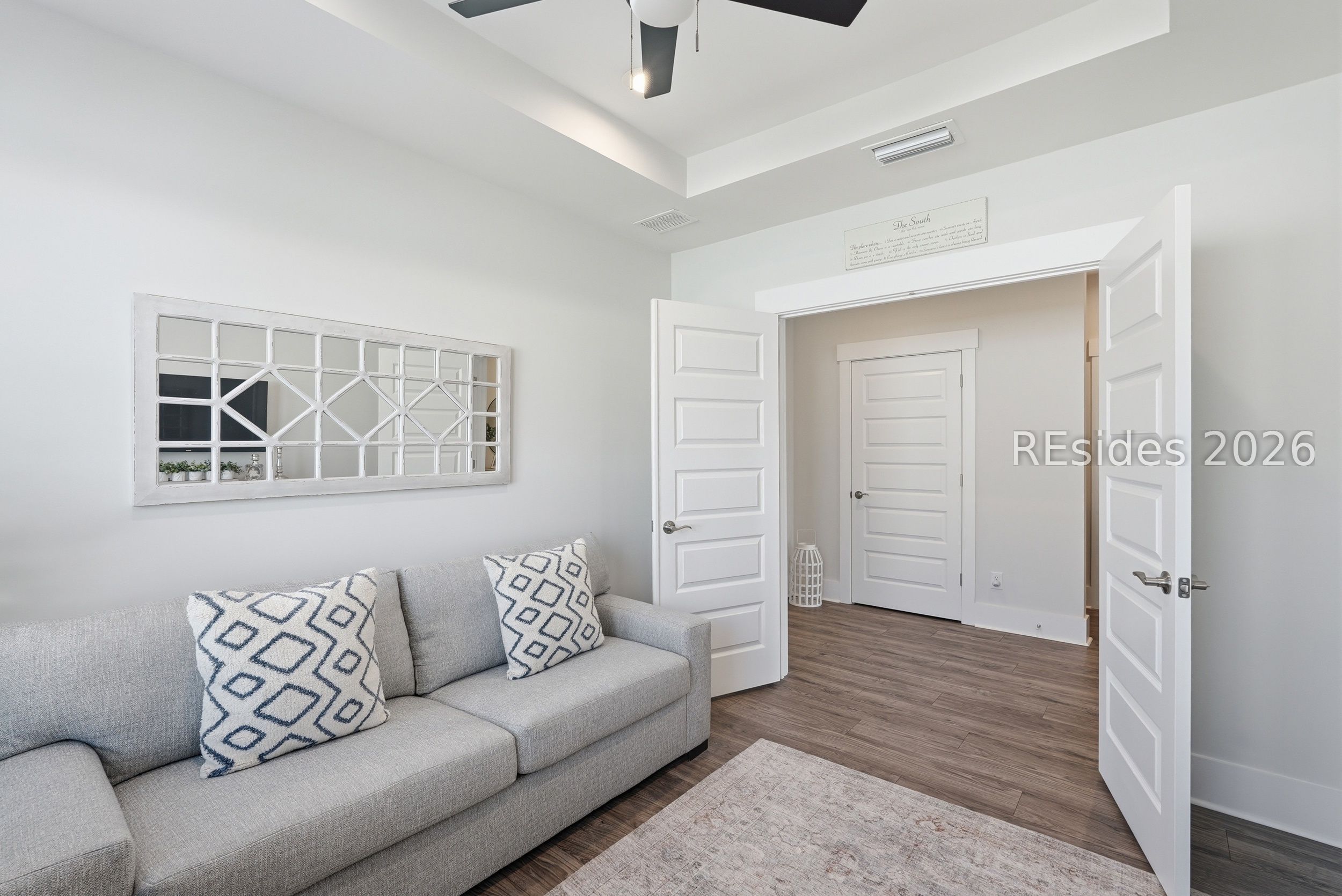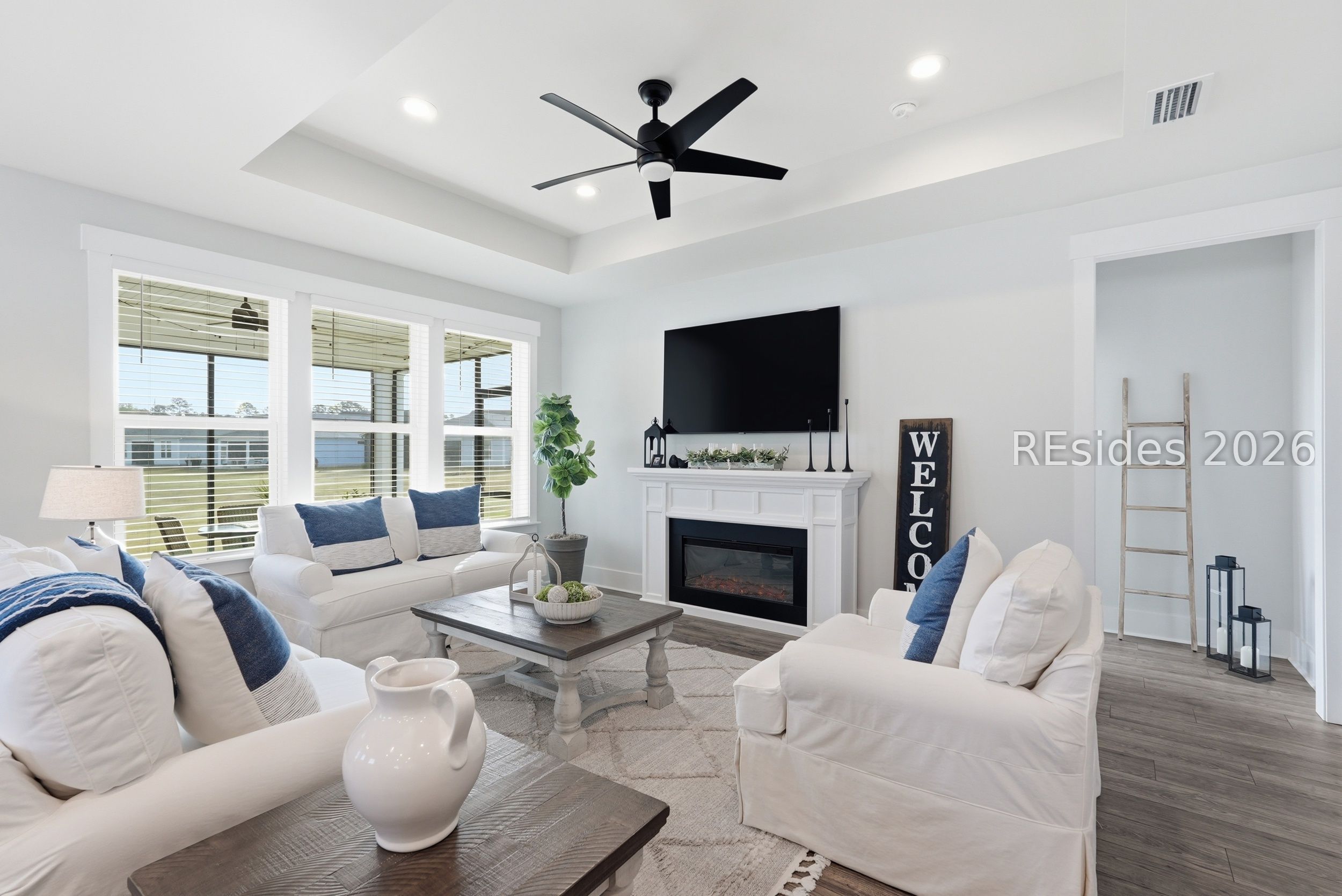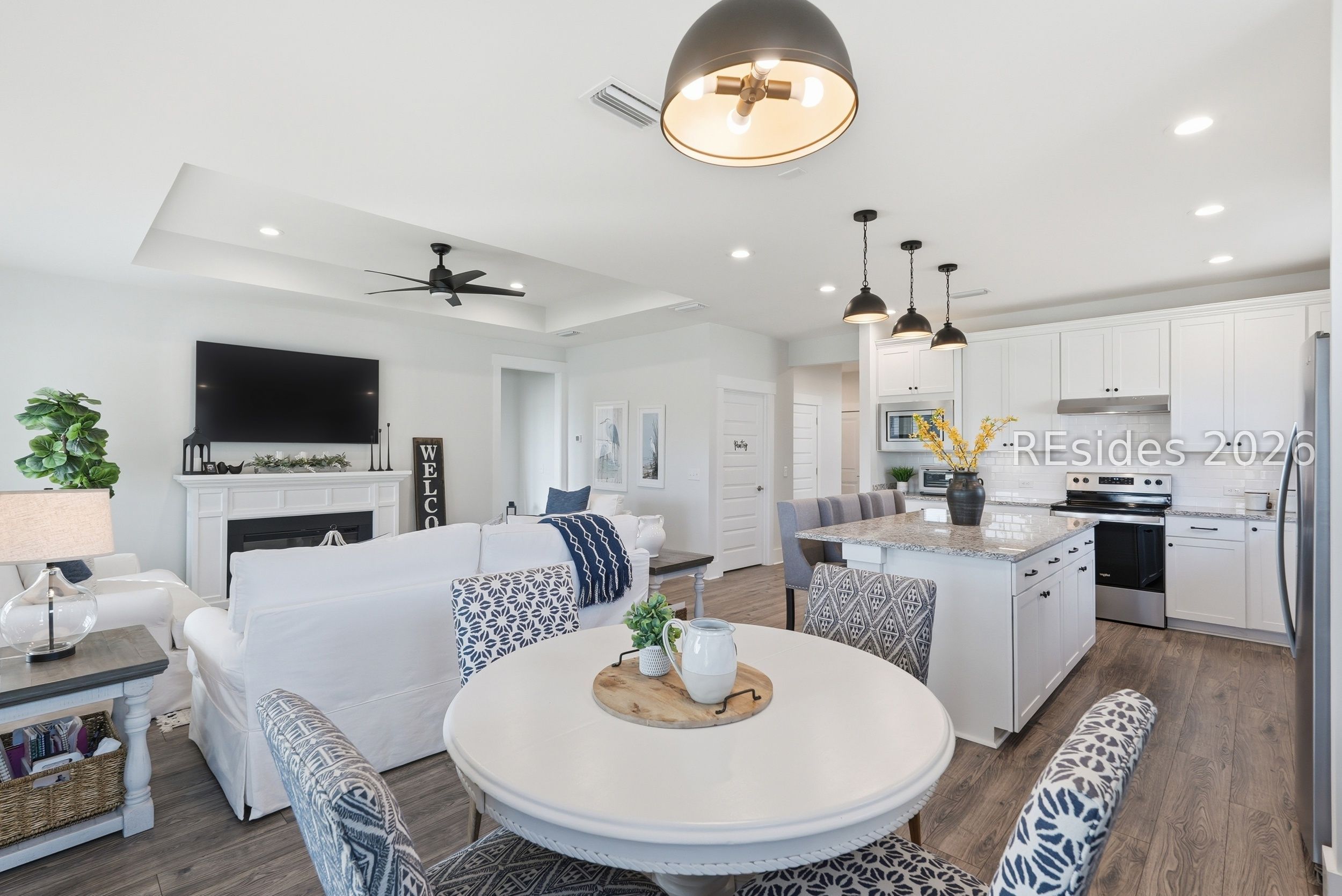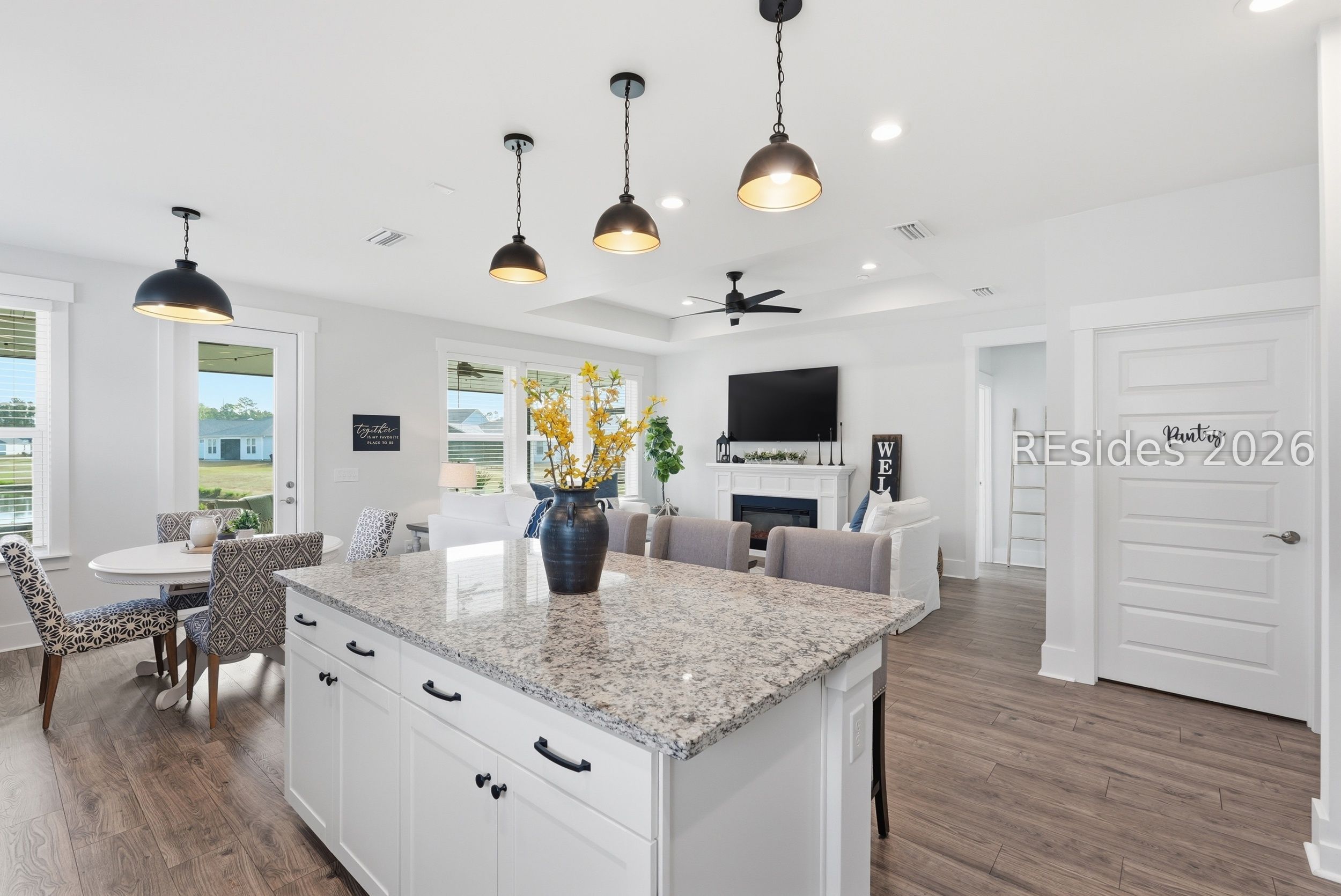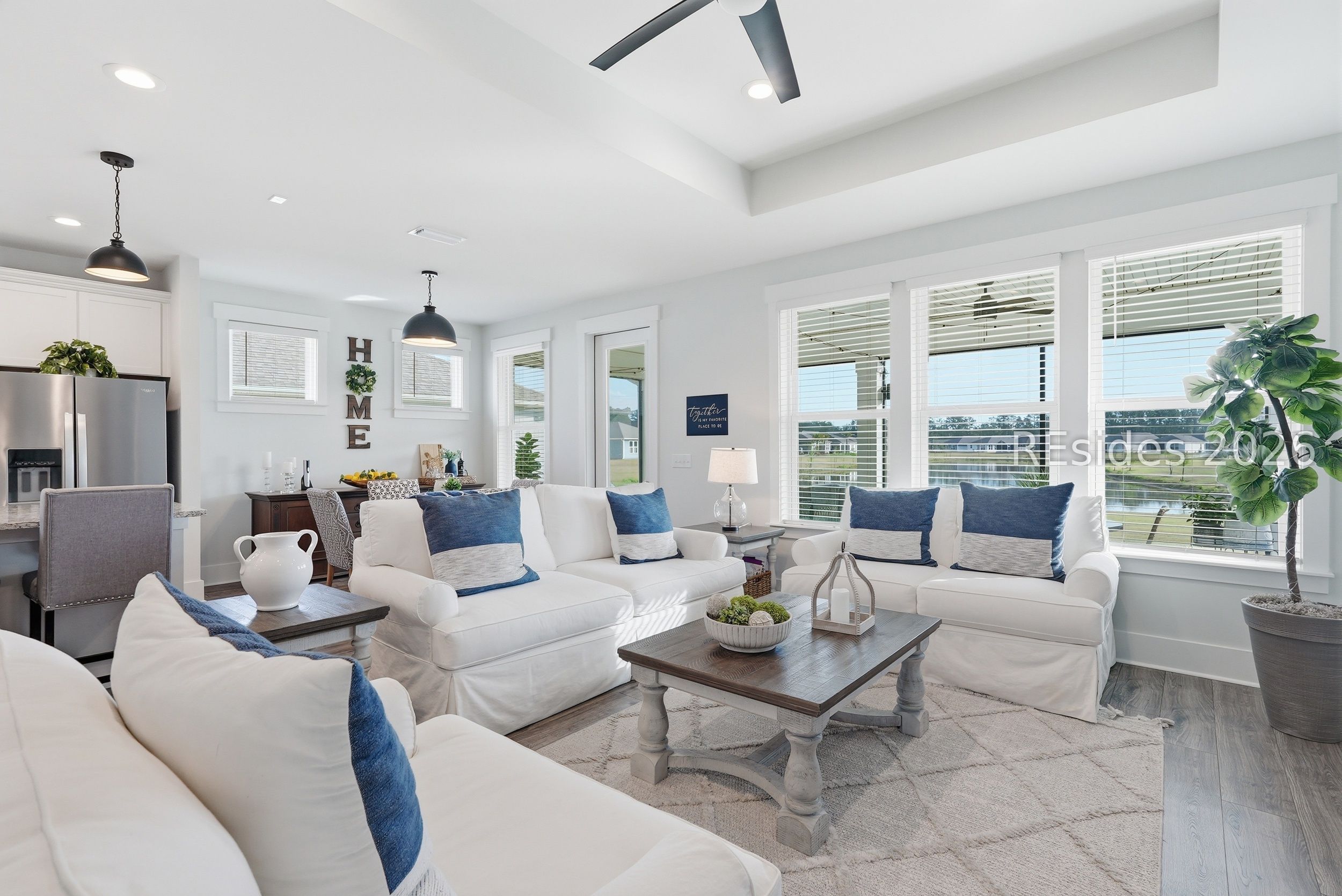 Welcome to this beautifully appointed 2-bedroom, 2-bath plus den Prosperity model, perfectly positioned on a peaceful lagoon in a quiet area of Sun City. Designed with both comfort and style in mind, the home features a gourmet kitchen complete with granite countertops, abundant cabinetry, a spacious center island, stainless steel appliances, a tile backsplash, and a walk-in pantry. The open-concept living area showcases luxury vinyl plank flooring, a tray ceiling in the great room, and a versatile den with French doors-ideal for a home office or additional living space. Notable upgrades include a Carolina room, extra large screened lanai, upgraded cabinetry and glass shower door in the primary bath. Start your mornings in the screened lanai while enjoying serene lagoon views. This home offers an exceptional combination of privacy, thoughtful upgrades, and easy Lowcountry living. Residents of Sun City enjoy a resort-style lifestyle with access to golf courses, indoor and outdoor pools, fitness centers, walking trails, numerous clubs, and an active social calendar. Conveniently located near shopping, dining, medical facilities, and just a short drive to the beaches of Hilton Head Island, this move-in-ready home delivers both comfort and convenience in a highly sought-after community.