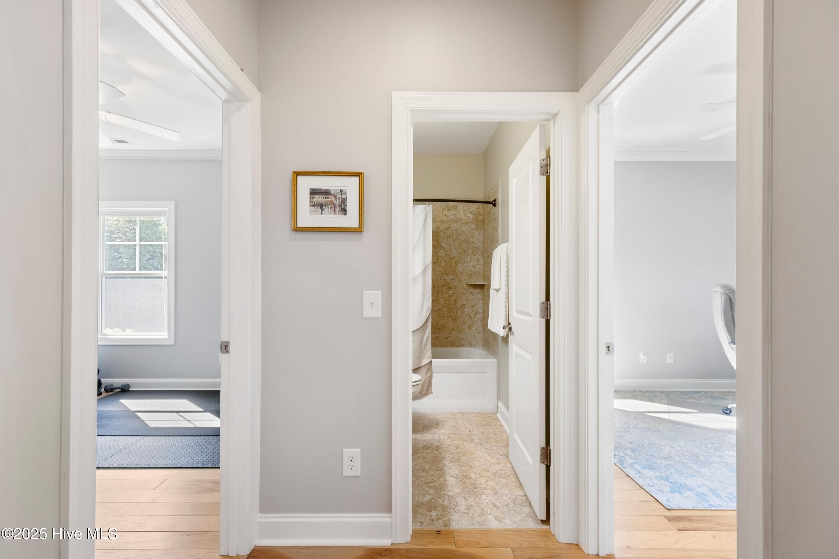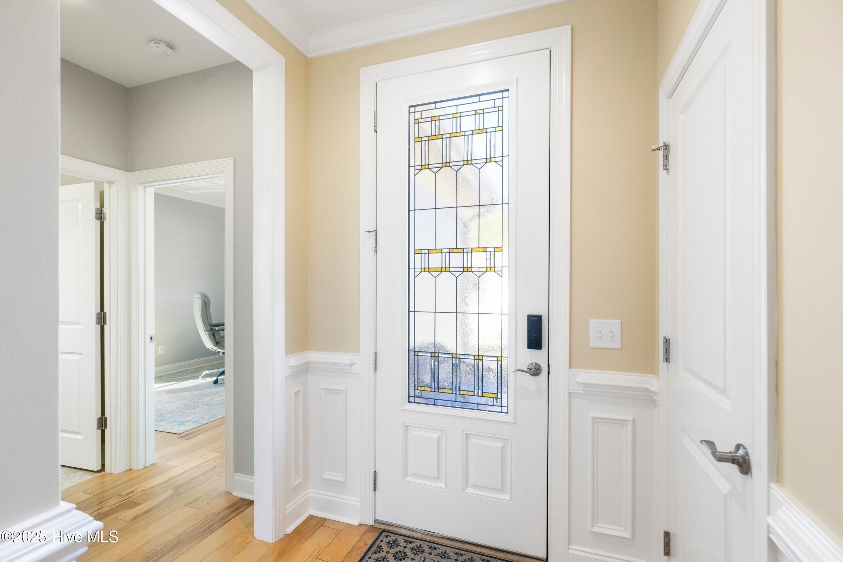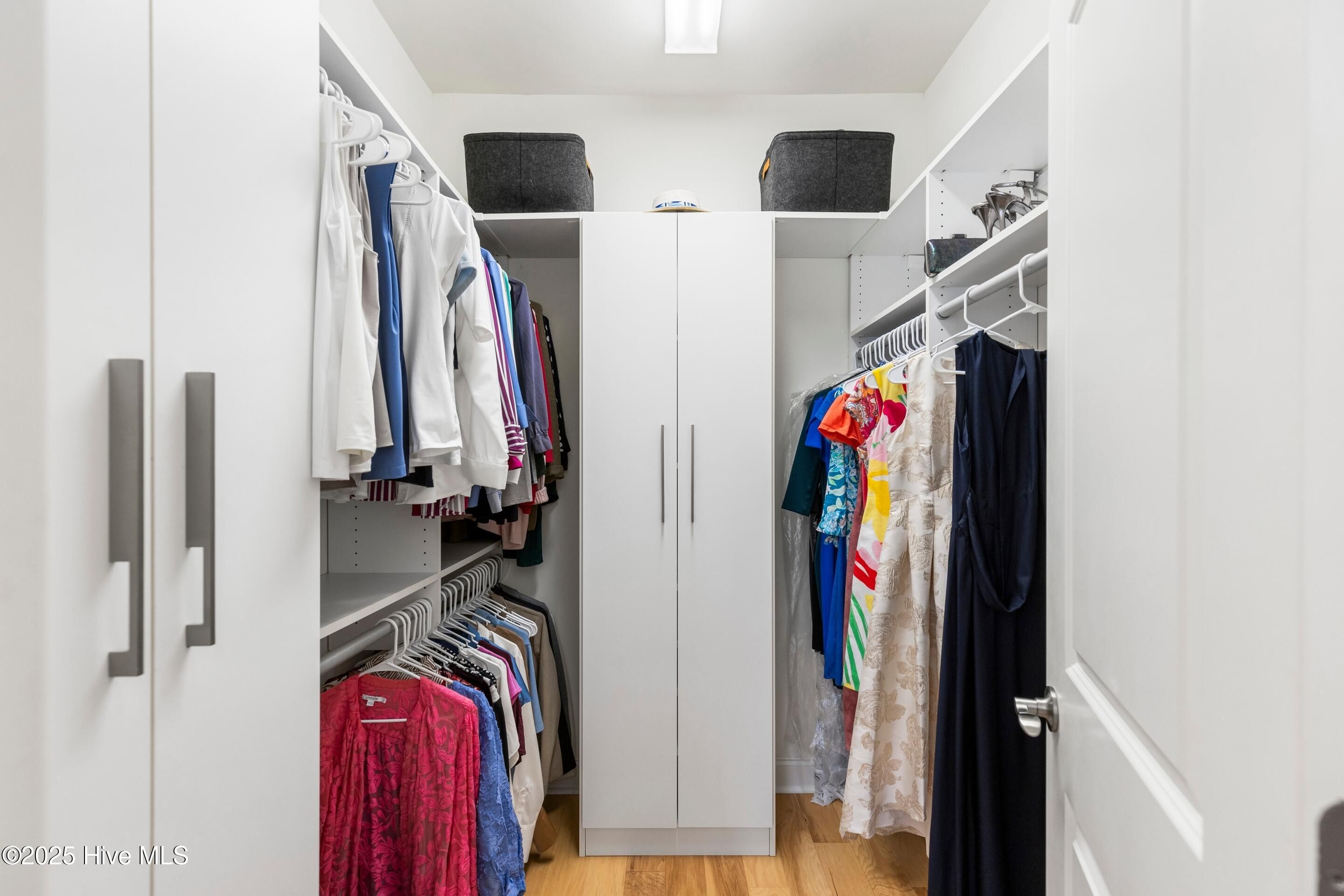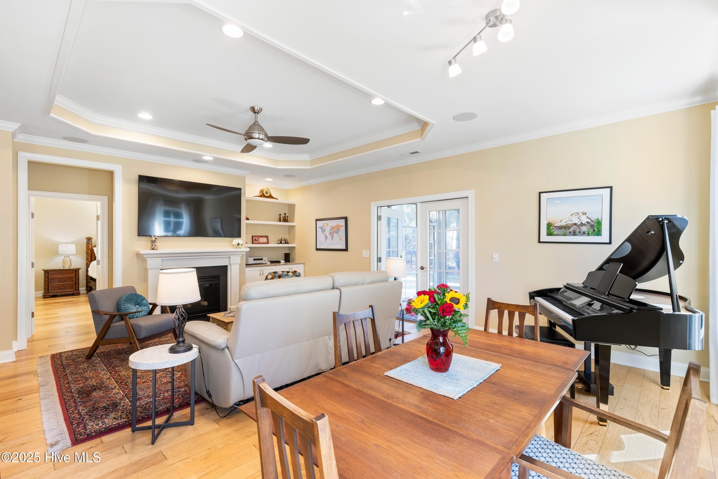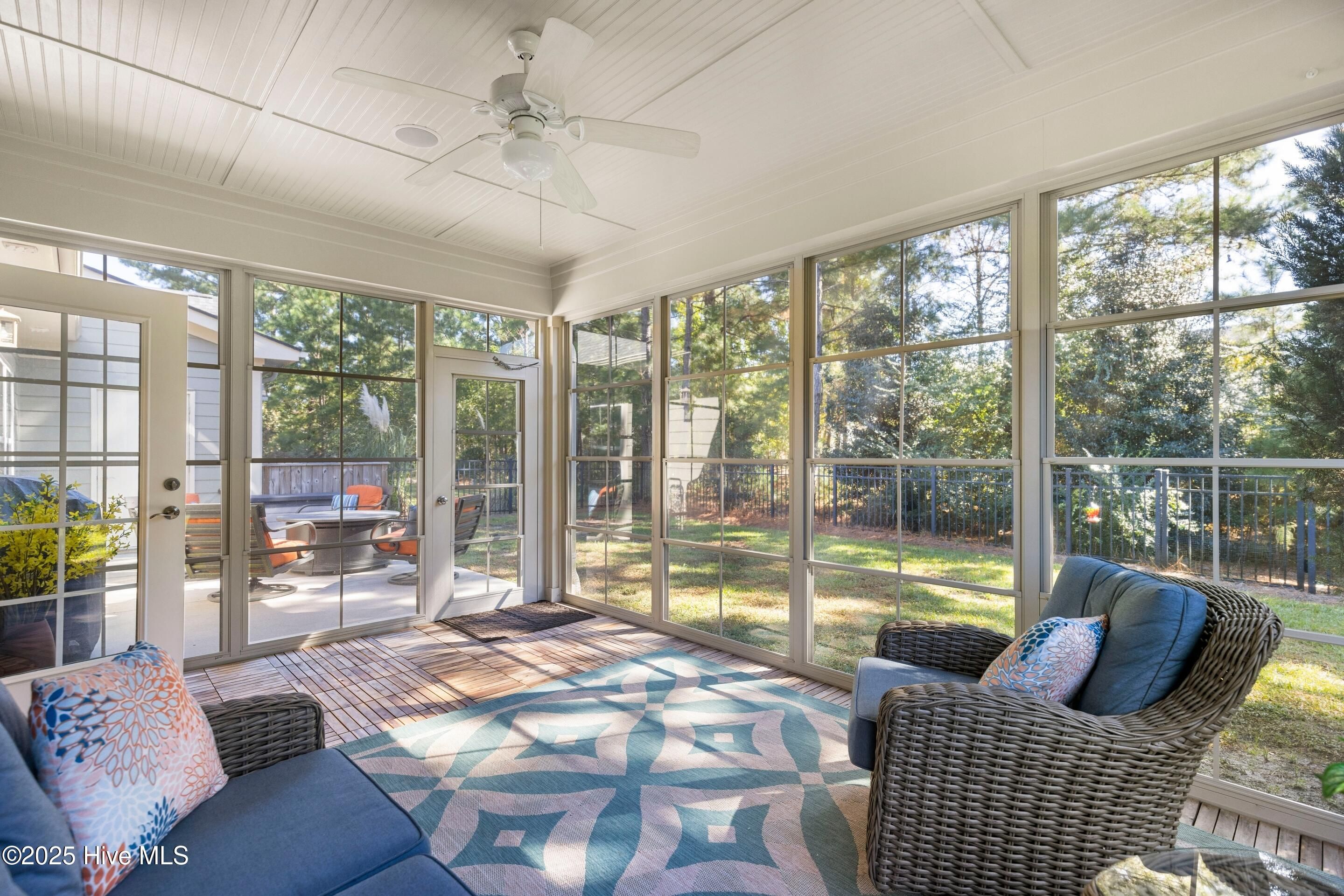 - Blinds/Shades, Tray Ceiling(s), Walk-In Closet(s), Walk-in Shower, Entrance Foyer, Pantry, Master Downstairs, Kitchen Island, High Ceilings, Gas Log, Ceiling Fan(s)