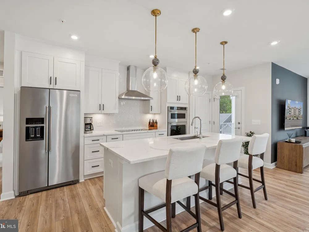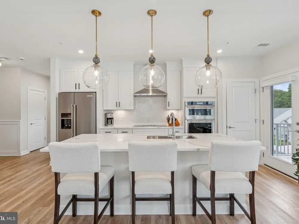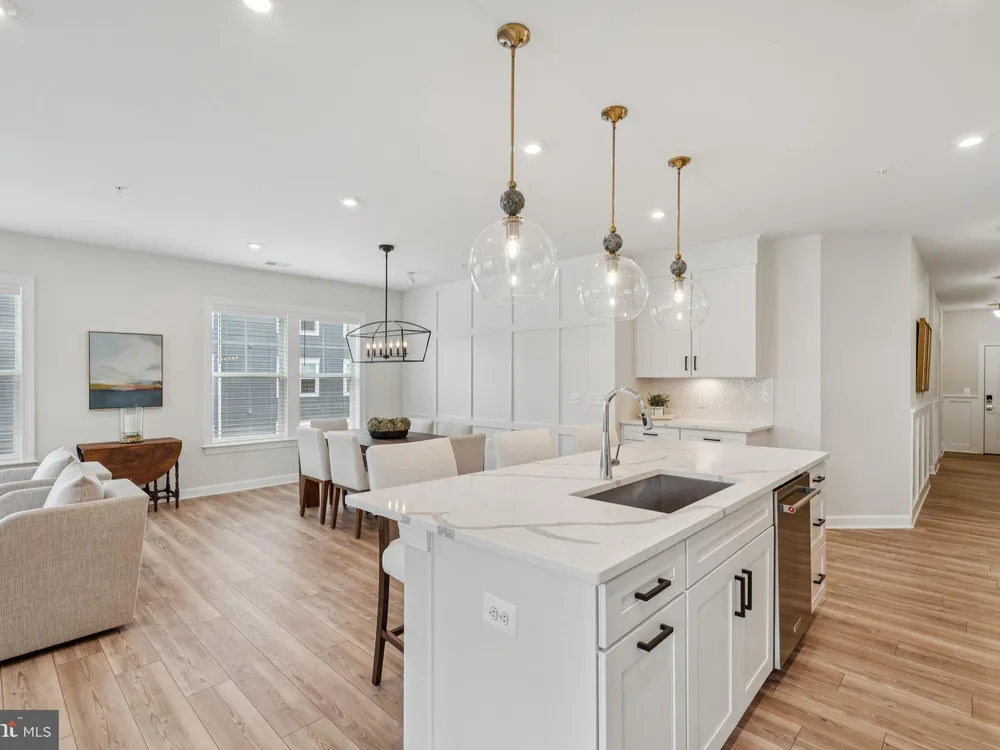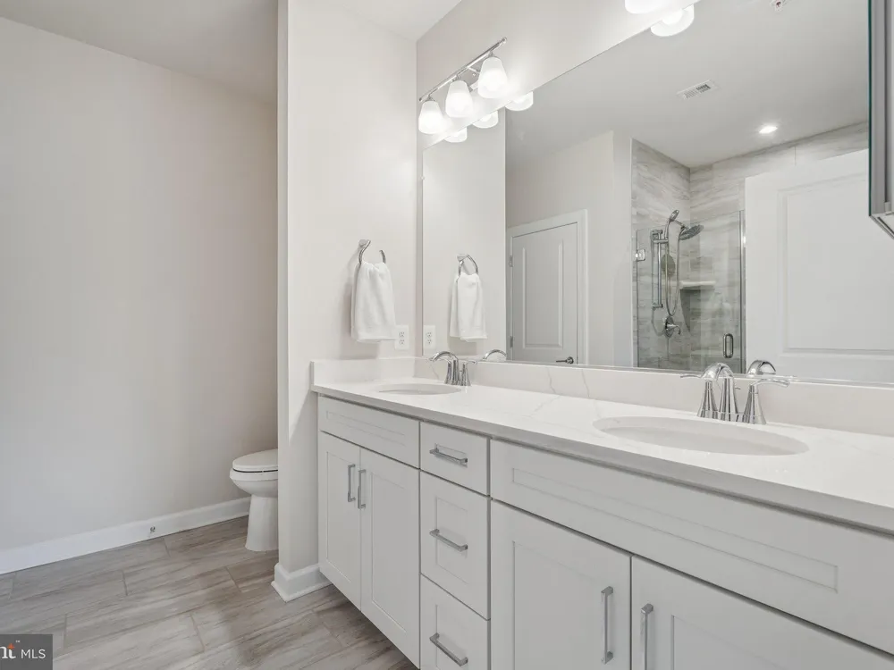 Welcome to the home you’ve been waiting for, fresh, stylish, and move-in ready in Del Webb’s premier 55+ community, Montebello. With approximately 1,900+ square feet, three bedrooms, and reserved parking for three vehicles, this sun-filled corner condo is the largest floor plan available, blending comfort with thoughtful upgrades throughout. From the moment you step inside, you’ll notice the details that make this home special: custom board and batten wainscoting in the entry and dining room, designer lighting, fresh paint, a herringbone ceramic backsplash, a retractable patio screen door, and built-in organizers in the primary closet. Even the laundry room has been refreshed with a brand-new (2025) Maytag washer and dryer, because little conveniences make a big difference. At the heart of the home is a bright and beautiful chef’s kitchen, complete with KitchenAid stainless steel appliances, white shaker soft-close cabinets, quartz countertops, and a breakfast bar for casual dining. The adjacent office nook with custom built-ins is wonderfully versatile; it can serve as a tucked-away workspace, an elegant butler’s pantry, or even transform into a fun cocktail bar for entertaining. The open layout seamlessly connects the dining and living rooms, where abundant windows fill the space with natural light, and continues out to a charming corner balcony, perfect for morning coffee or an evening glass of wine. The spacious primary suite features modern lighting, a walk-in closet with custom built-ins, and a luxurious ensuite bath with a double-sink vanity and a frameless glass walk-in shower complete with a built-in seat. Two additional bedrooms and a second full bath, also finished with a frameless glass shower, built-in seat, and quartz countertops, offer versatility for guests or hobbies. Throughout the main living areas, durable LVP flooring adds both warmth and style. Everyday living is made simple with its convenient location near the stairs, a deeded garage with epoxy floors, a driveway space, and a reserved parking spot right outside. Plus, you’ll have a storage cage on the lobby level for all the extras. Life at Montebello is designed for connection, activity, and pure enjoyment. The Guilford House clubhouse spans 14,000 square feet and offers something for everyone: an indoor pool and spa, fitness center, game room, demo kitchen, and plenty of inviting spaces for clubs, classes, and gatherings. Step outside to discover a resort-style pool with shaded cabanas, pickleball and bocce courts, and scenic walking trails that weave through the community. You’ll also find a community garden, outdoor grills, and picnic areas with tables and chairs, perfect for cookouts and casual get-togethers. And when it’s time to head out, you’re perfectly located near Routes 7, 28, 50, and the Dulles Toll Road, with shopping, dining, and even Costco just minutes away, not to mention the natural beauty of Claude Moore Park.