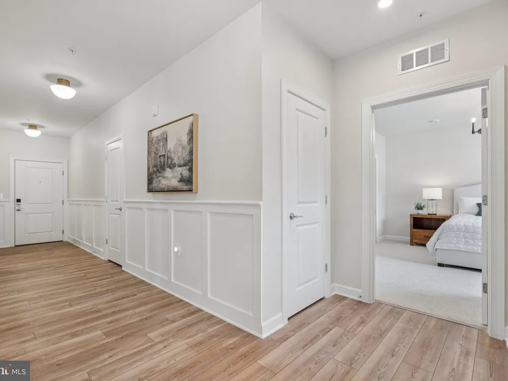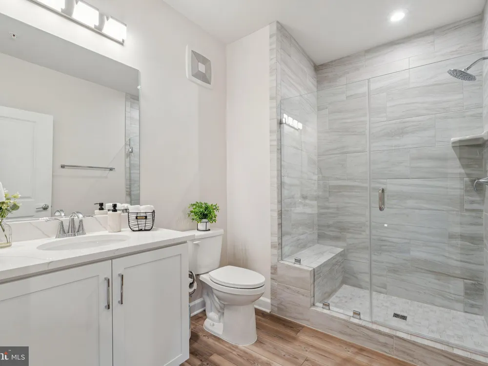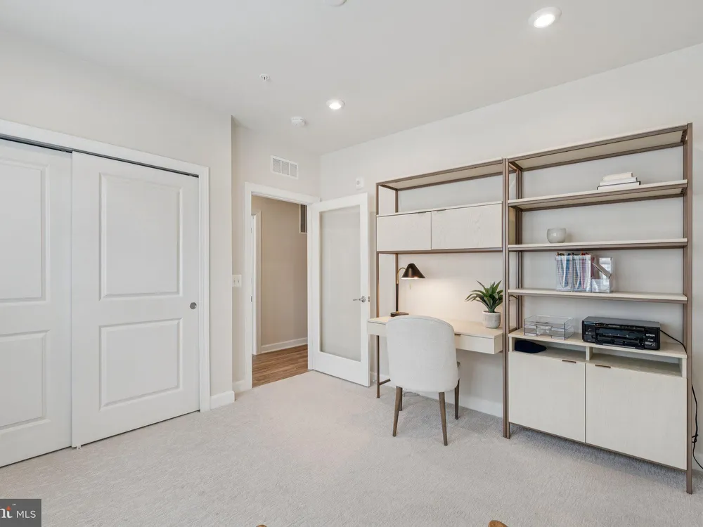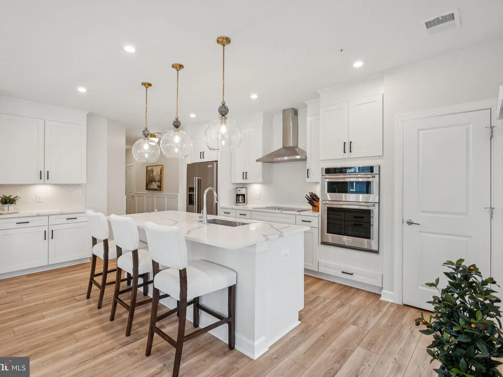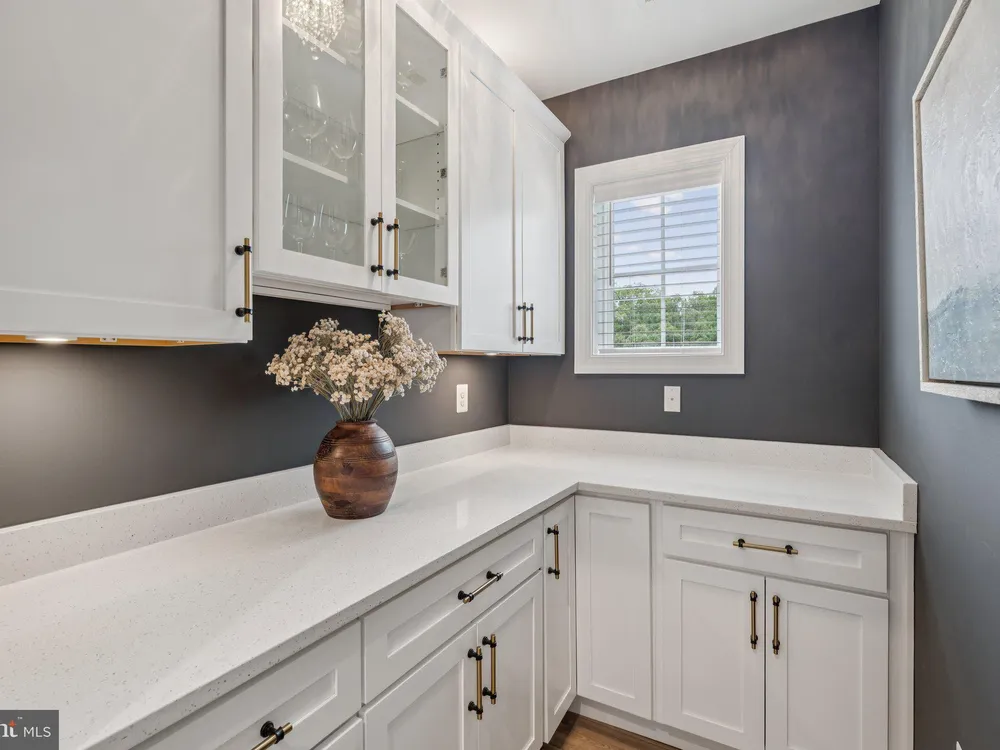 Welcome to the home you’ve been waiting for, fresh, stylish, and move-in ready in Del Webb’s premier 55+ community, Montebello. With approximately 1,900+ square feet, three bedrooms, and reserved parking for three vehicles, this sun-filled corner condo is the largest floor plan available, blending comfort with thoughtful upgrades throughout. From the moment you step inside, you’ll notice the details that make this home special: custom board and batten wainscoting in the entry and dining room, designer lighting, fresh paint, a herringbone ceramic backsplash, a retractable patio screen door, and built-in organizers in the primary closet. Even the laundry room has been refreshed with a brand-new (2025) Maytag washer and dryer, because little conveniences make a big difference. At the heart of the home is a bright and beautiful chef’s kitchen, complete with KitchenAid stainless steel appliances, white shaker soft-close cabinets, quartz countertops, and a breakfast bar for casual dining. The adjacent office nook with custom built-ins is wonderfully versatile; it can serve as a tucked-away workspace, an elegant butler’s pantry, or even transform into a fun cocktail bar for entertaining. The open layout seamlessly connects the dining and living rooms, where abundant windows fill the space with natural light, and continues out to a charming corner balcony, perfect for morning coffee or an evening glass of wine. The spacious primary suite features modern lighting, a walk-in closet with custom built-ins, and a luxurious ensuite bath with a double-sink vanity and a frameless glass walk-in shower complete with a built-in seat. Two additional bedrooms and a second full bath, also finished with a frameless glass shower, built-in seat, and quartz countertops, offer versatility for guests or hobbies. Throughout the main living areas, durable LVP flooring adds both warmth and style. Everyday living is made simple with its convenient location near the stairs, a deeded garage with epoxy floors, a driveway space, and a reserved parking spot right outside. Plus, you’ll have a storage cage on the lobby level for all the extras. Life at Montebello is designed for connection, activity, and pure enjoyment. The Guilford House clubhouse spans 14,000 square feet and offers something for everyone: an indoor pool and spa, fitness center, game room, demo kitchen, and plenty of inviting spaces for clubs, classes, and gatherings. Step outside to discover a resort-style pool with shaded cabanas, pickleball and bocce courts, and scenic walking trails that weave through the community. You’ll also find a community garden, outdoor grills, and picnic areas with tables and chairs, perfect for cookouts and casual get-togethers. And when it’s time to head out, you’re perfectly located near Routes 7, 28, 50, and the Dulles Toll Road, with shopping, dining, and even Costco just minutes away, not to mention the natural beauty of Claude Moore Park.