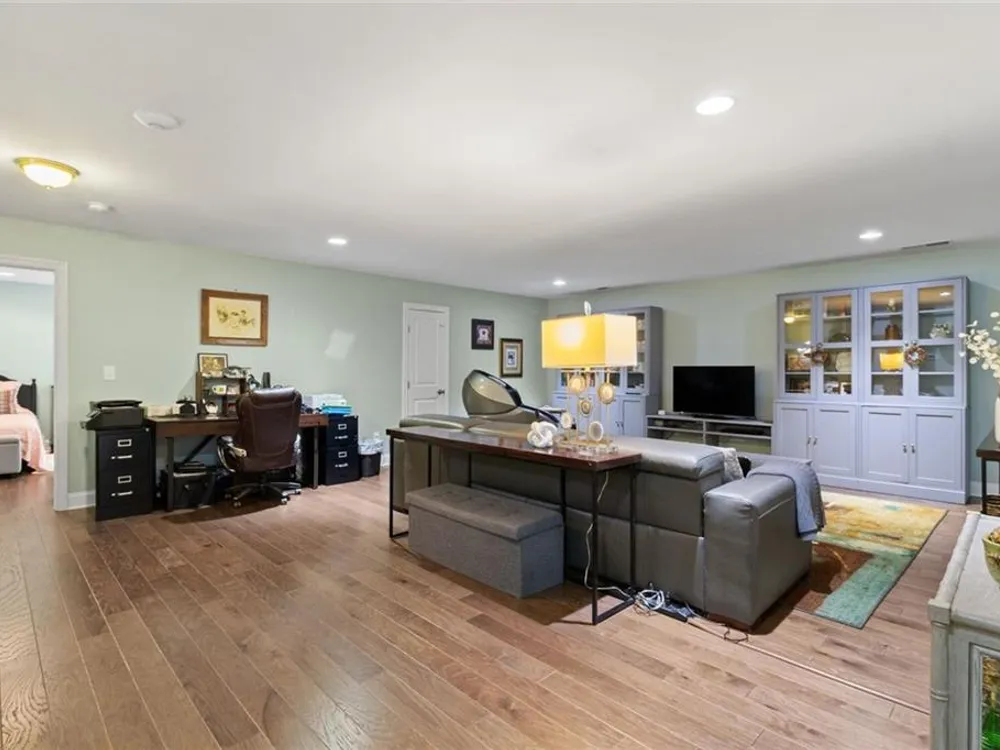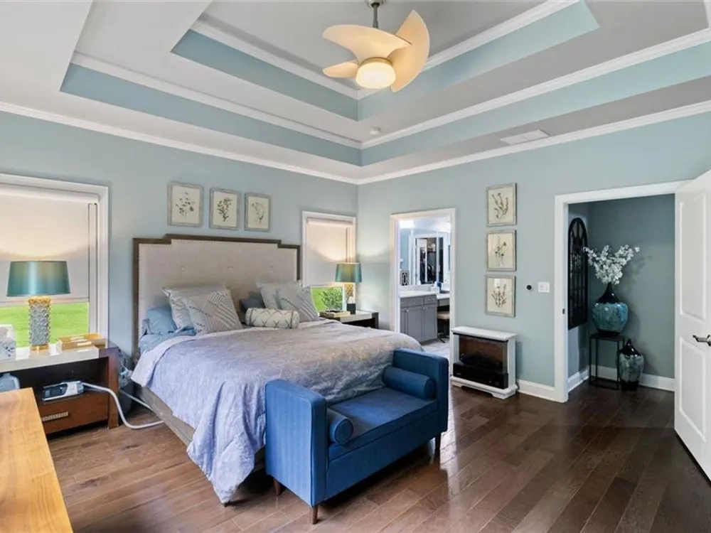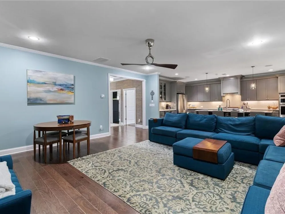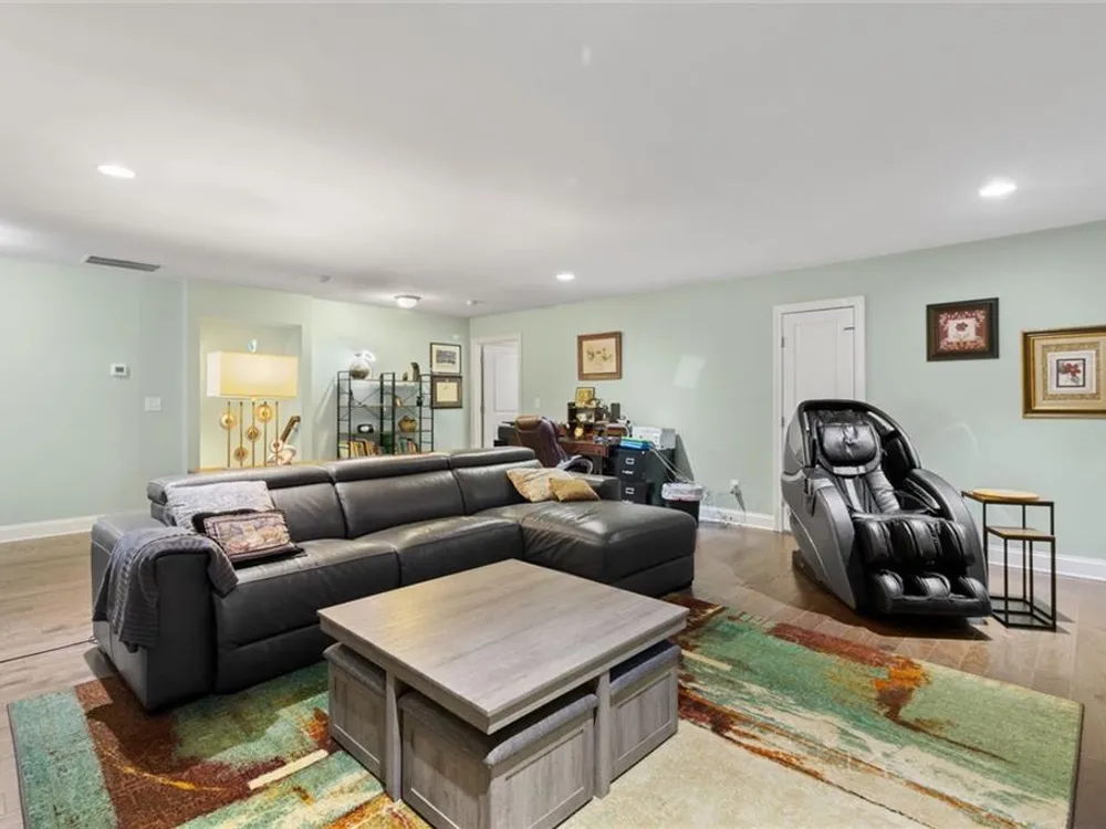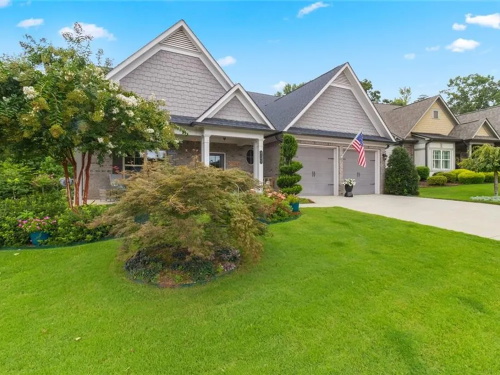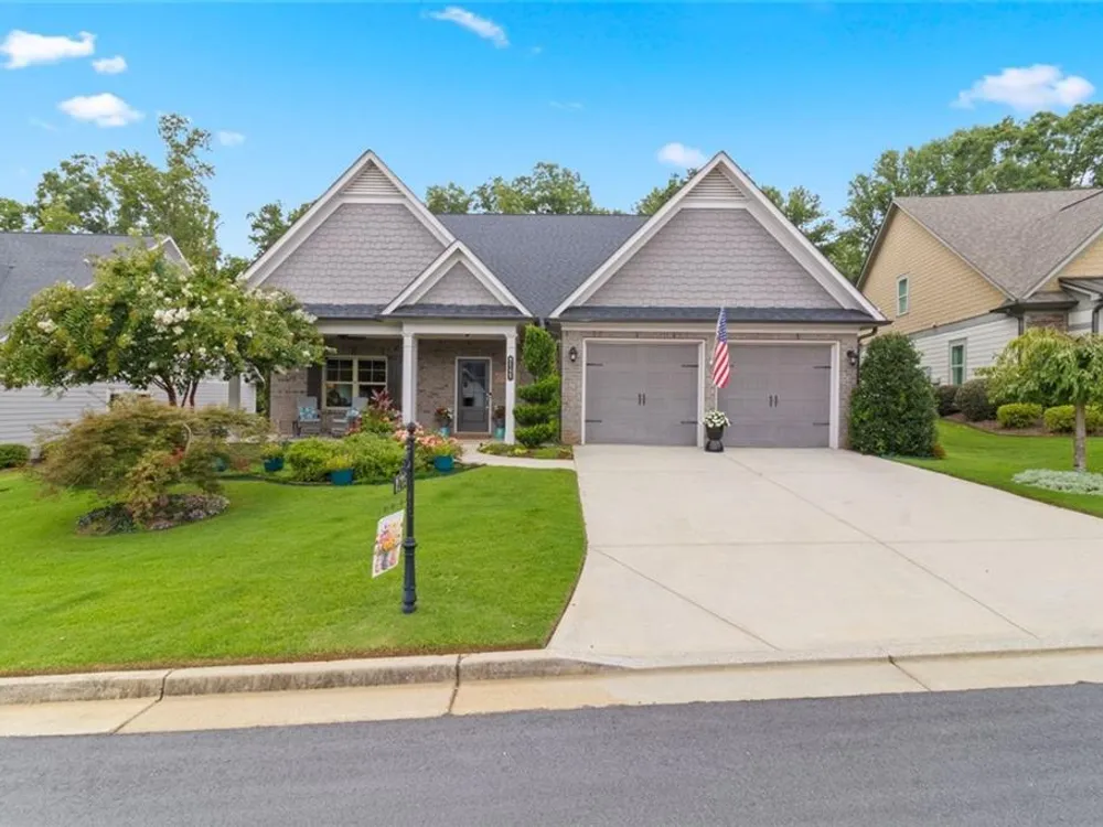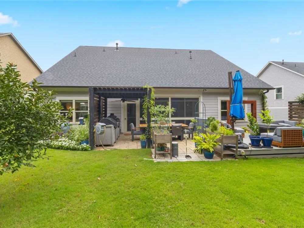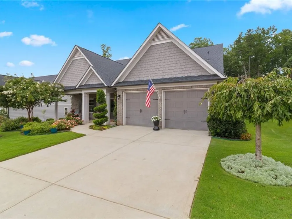 Discover this exceptional custom-built home nestled in the lively and active 55+ community of Nestledown Farm. Designed with delightful surprises, this residence offers a perfect blend of comfort and elegance. Step into the large, inviting foyer that leads to an open floorplan. The spacious living room flows seamlessly into the custom kitchen, featuring quartz countertops, soft-close cabinetry, pot and pan drawers, a stunning custom vent hood, beverage cooler, a huge island and a walk-in pantry. Surrounding the dining area are numerous windows that flood the space with natural light and create a beautiful setting for meals. And just outside the center window, a rain wall is strategically placed, at night the fire table glows behind the water feature, creating a captivating ambiance. Off the living room, a spacious tiled sunroom provides additional comfort and versatility. Beautiful, manufactured hardwood flooring flows throughout the home, adding warmth and style. From the garage, enter into a custom "drop zone" designed for convenience. The primary suite was thoughtfully designed, complete with a custom dressing room, washer and dryer, and an island for folding and storage. The luxurious primary bathroom you'll find quartz countertops that span the double vanity, a large curbless shower, and a Toto bidet in the water closet. You'll also find a private guest bedroom and a full bath on the main level. Upstairs offers a casual living room, two bedrooms, a full bath with a 66" spa tub w/shower, a couple of storage rooms, one with a Versa Lift lowering to the garage floor for easy access. The backyard is an entertainer’s paradise, featuring a pergola-covered grilling area, patio dining, low deck seating area, gas line for a grill and fire table, rain wall, and abundant fruit-bearing trees, including apple, peach, and cherry. The garden is home to raspberry, blackberry, blueberry, and strawberry plants. Nestledown Farm comprises 80 homes with a homeowner's association fee that covers refuse pick-up, lawn mowing, bush trimming, yard insect control, and annual mulch and fertilizer. The community also offers a garden, clubhouse, pool, fitness center, and a variety of events and clubs. Just a short ride by golfcart, bicycle or car, or take a walk to Cumming’s newest gathering place, City Center, to enjoy dining, shopping, and concerts.