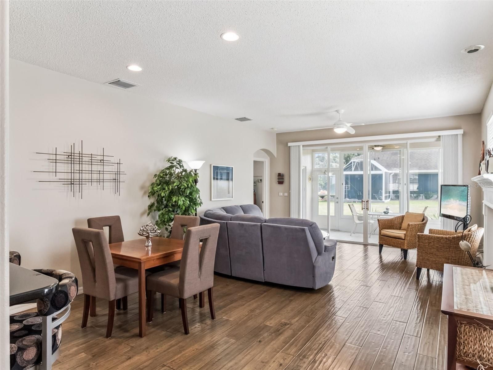Welcome to this charming 3-bedroom, 2 bathroom Balmoral Model home, perfectly situated in a quiet, gated 55+ golf community in Central Florida’s Lake County! The exterior has fresh paint, a paver drive & walkway, screened entry with ceramic tile and gorgeous landscaping. The open concept living and dining spaces create a bright and inviting atmosphere for relaxing and entertaining. All main living areas have high quality engineered wood flooring and the natural light in this home is exceptional. The spacious primary suite features a private bathroom and walk-in closet for added comfort and convenience. Linen closets, dual vanity, make up area, and an enlarged rain shower primary bath are just the beginning. Two additional bedrooms offer flexibility for guests, a home office, or give yourself a music, craft, and zen space! You’ll love the modern kitchen equipped with updated cabinets & appliances, granite countertops, built-in pantry, and a breakfast nook. Enjoy outdoor living with an enclosed screened front porch, mature landscaping, and a lovely rear Florida Room with ceramic tile flooring—perfect for morning coffee and afternoon tea! The attached garage provides secure parking and extra storage. Central heating and cooling ensure year-round comfort, but you’ll really love the gas fireplace in the living room, perfect for autumn nights and cool, quiet mornings. Boasting high ceilings, updated interior paint, tinted UV windows & sliders, new garage door opener, bull-nose corners, transferable termite bond, and an attic fan. You’ll immediately know this original owner took immaculate care and pride in this 1613 square foot home (including Florida Room). This is an easy choice. Call for your community & home tour today. Move-in ready and close to shopping, dining, amusement parks, historic districts, and the Florida Turnpike for ultimate convenience. Royal Highlands has two pools, an on-campus restaurant, driving range, courts, fitness center, billiards & craft rooms, softball field, dance hall, theater stage and 100’s of clubs and activities to choose from! What are you waiting for?
