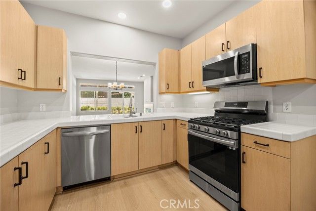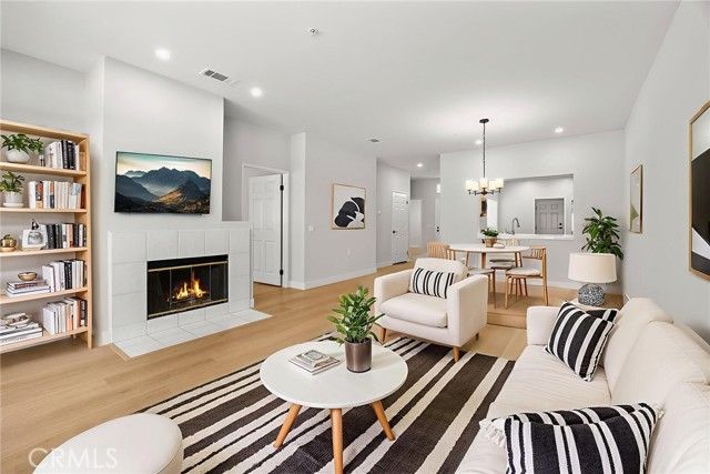 Listing Re-Launch! The market spoke, and the sellers listened. This beautifully renovated home (renovation completed 11/9) features brand-new luxury vinyl flooring, fresh designer paint, modern baseboards, contemporary door hardware, sleek ceiling fans, energy-efficient LED lighting, updated window coverings, stylish vanity lights, new faucets and fixtures, and a new dining area chandelier. All cabinets have matching pulls, and the eat-in kitchen boasts a complete suite of stainless steel Samsung appliances, including a new dishwasher. Both garages have freshly painted walls, coated floors, the included washer, dryer, and refrigerator make move-in easy. This spacious, open-concept floorplan offers approximately 1,278 sqft of living space with 2 bedrooms, 2 full bathrooms, 9-foot ceilings, and abundant windows for natural light. The large family room features a cozy fireplace, while the kitchen includes a breakfast nook, generous counter and cabinet space. The primary suite offers a ceiling fan, sliding glass door to a serene backyard, and a luxurious bathroom with dual sinks, ample storage, a walk-in shower, and a walk-in closet. The secondary bedroom is perfect for guests or a home office. Located in Palmia, a gated 55+ community, residents enjoy a resort-style clubhouse and amenities including a pool, spa, tennis courts, pickleball, an 18-hole natural grass putting green, and multiple community activity rooms. Lake Mission Viejo access is included, and HOA fees cover cable and internet services.