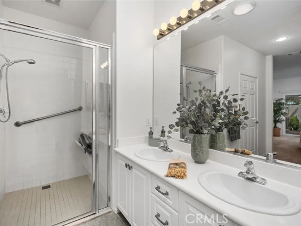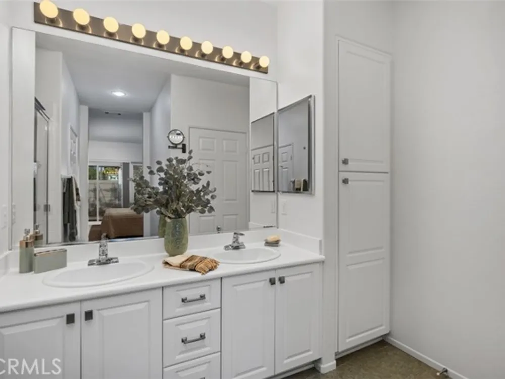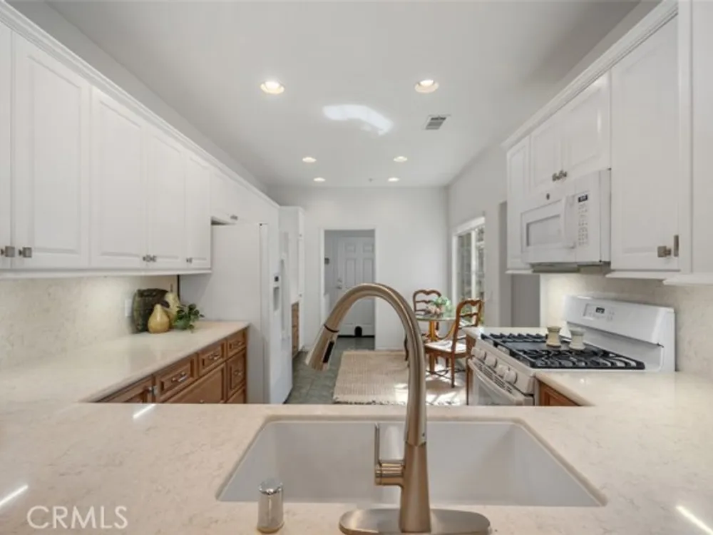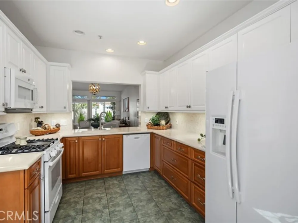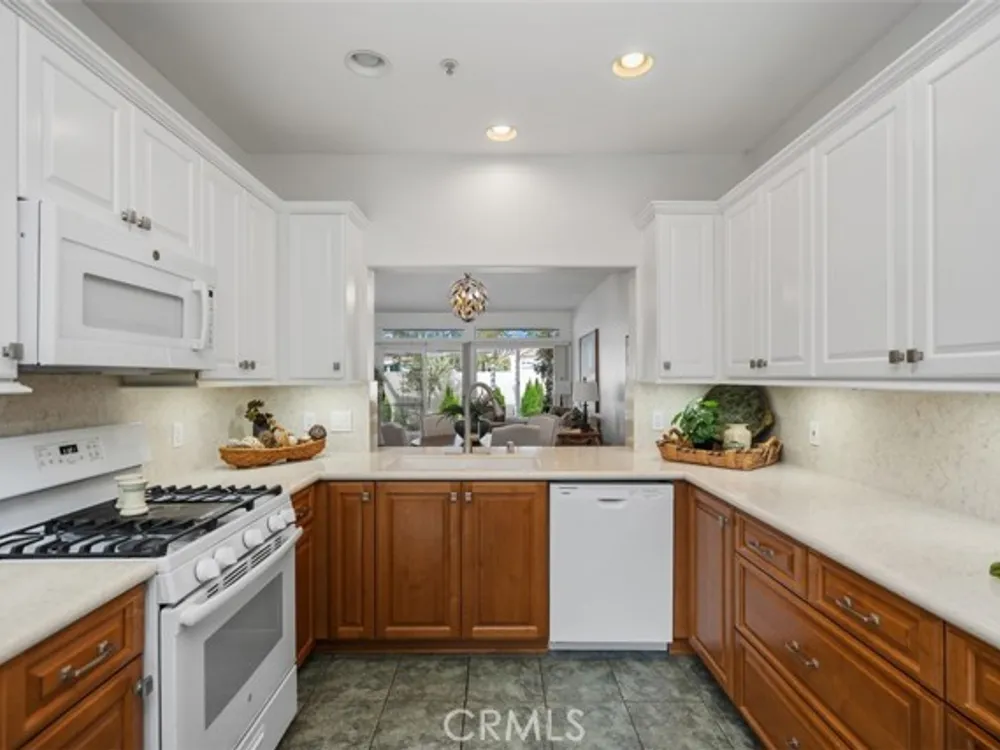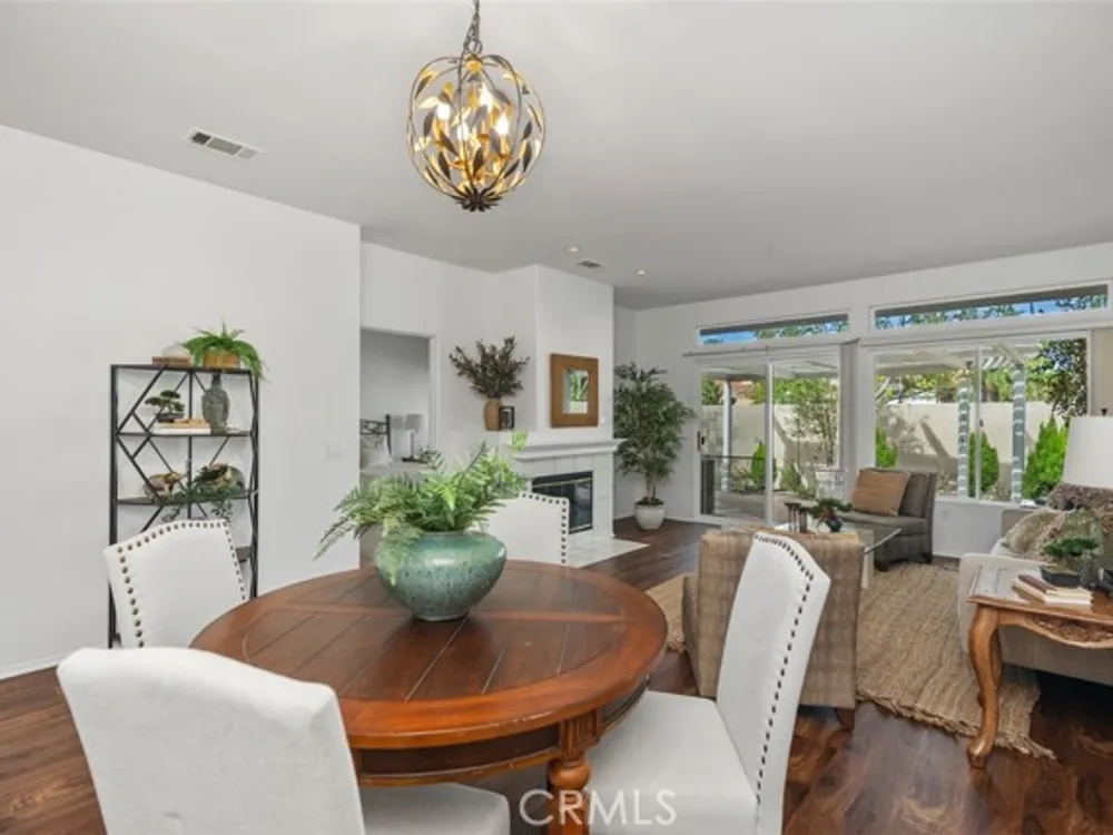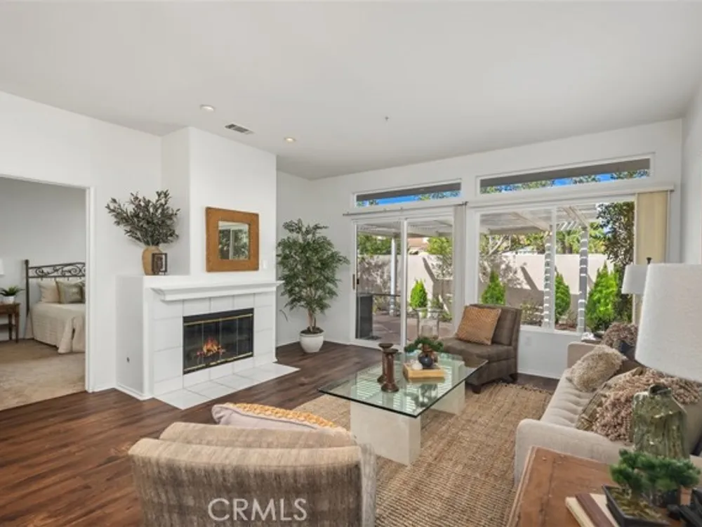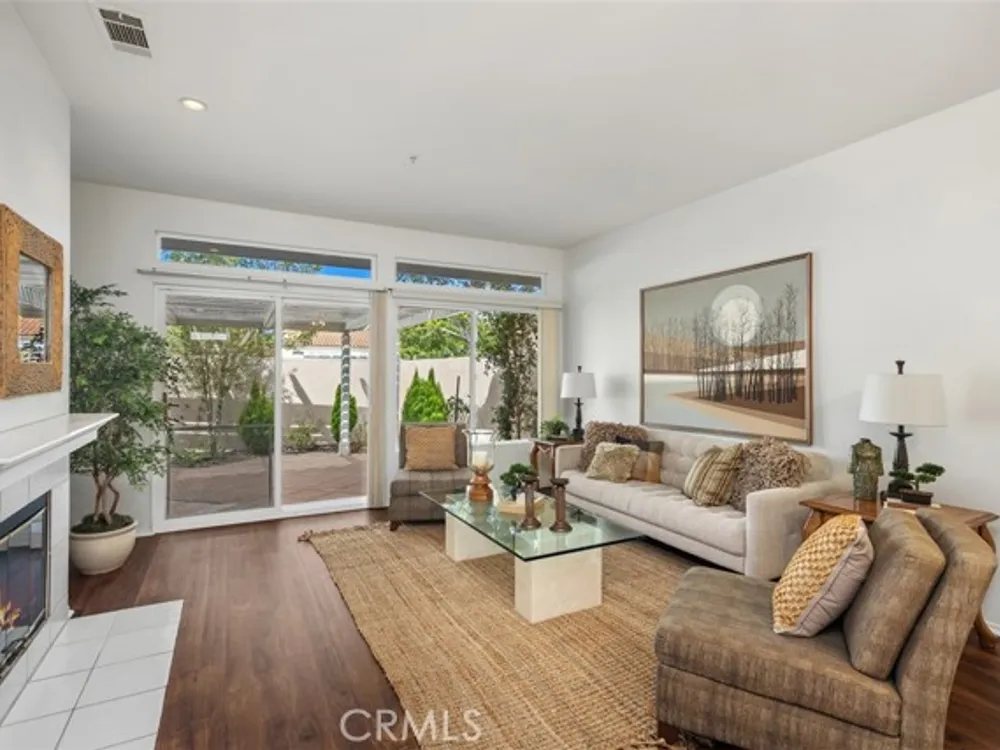 A Palmia Senior Community condo in immaculate conditioner. A single story, 2 bedrooms, 2 baths, home with 1278 sq. ft. Freshly painted, upgraded kitchen with beautiful cabinets, newer counters with a cheerful breakfast nook. Wood floors in the entry, dining room and living room. Large living room and dining area with high ceilings, lovely fireplace, and direct access to a private patio, great for relaxation and entertaining family and friends. Nice size primary bedroom suit, with a walk-in-closet. Primary bathroom has a double sink vanity, large stall shower and separate room for the commode. The guest bedroom is at the other end of the house next to the guest bathroom. A convenient inside laundry area, with direct access from the garage. There is also a 2nd garage without direct access. This home is beautifully decorated and ready to move into. Palmia Senior Community is second to none with an 18 hole putting green, tennis, paddle tennis, pickle ball, bocce, fabulous fitness center, billiards, card room, library, beautiful club house, many clubs, parties, and much more. You also have access to Lake Mission Viejo, with beautiful sandy beaches, boating, snack bar, and fabulous summer concerts.