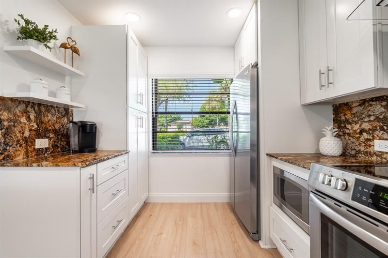 Experience effortless living in this light-filled first-floor condo overlooking the golf course. This inviting home features spacious bedrooms, abundant closets throughout, and a thoughtfully redesigned kitchen, newly renovated with permits in 2023 and equipped with modern appliances for style and convenience. Freshly painted from top to bottom, the unit also boasts brand new closet doors, a water heater, and a washer and dryer—all installed in August 2025. The building’s roof was replaced in 2023 and there are accordion shutter on all openings ensuring peace of mind for years to come. Located in a well-maintained 55+ community in desirable Boca Raton, residents enjoy beautiful surroundings and easy access to shopping, dining, and local attractions.