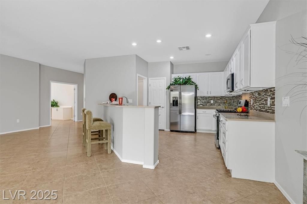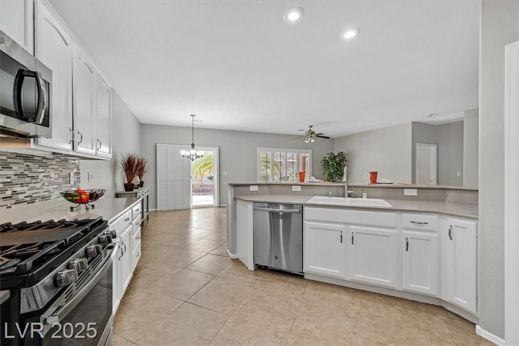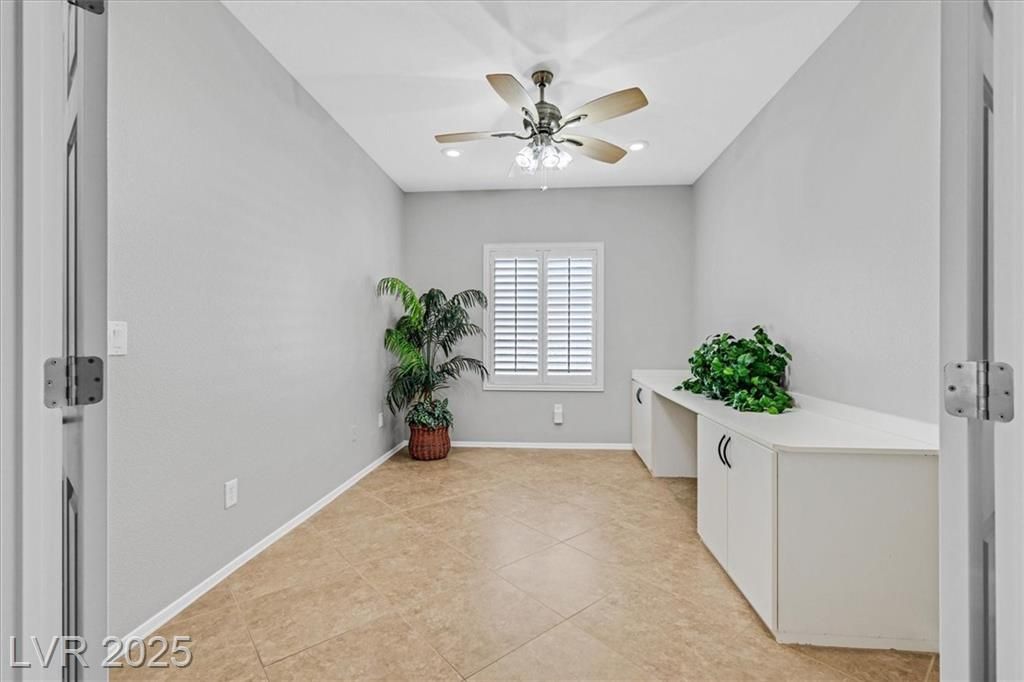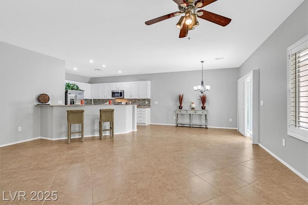 This meticulously maintained 1,610 sf Virginia model in Sun City Anthem is immaculate. Featuring 2 bedrooms, a versatile den with double doors, 2 bathrooms, new interior paint, & move-in ready. Enjoy open concept floor plan. Easy clean Corian counters, featuring a modern backsplash & breakfast bar in your kitchen w/ newer stainless steel appliances, lots of cupboard space & a pantry. The primary suite has outdoor patio access. Large diagonal floor tiling. NEWer water heater ensure efficiency. Stylish plantation shutters enhance privacy and elegance, while upgraded closets and shelving maximize storage. Perfectly located in a vibrant 55+ community Highly ranked Nationally w/ world-class amenities. This Immaculate home blends comfort, convenience, and sophistication. Perfect as a 1st or 2nd home! This community offers 3 clubhouses, pickleball, tennis, indoor & outdoor pools, indoor walking track, fitness centers and too many clubs to join! Schedule your showing today!
