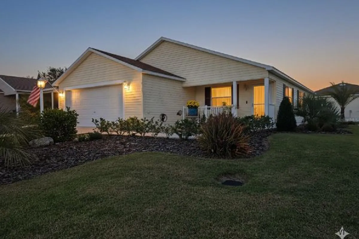 AN ASSUMABLE MORTGAGE AT JUST 5% IS AVAILABLE!!!—a rare and valuable opportunity in today’s market. Step inside this home from anywhere! To experience a fully immersive walk-through of this home click on the Video or Virtual Tour button on this page. Experience Premier Living in The Villages with a Smart Home Welcome to your dream home in the heart of The Villages! Situated on an oversized corner lot just minutes from Lake Sumter Landing, this exquisite three-bedroom, two-bathroom smart home effortlessly blends high-end comfort, sophisticated design, and resortstyle living. From the moment you arrive, you’ll be captivated by the immaculate curb appeal, featuring lush, professionally maintained landscaping and an inviting covered front porch—perfect for enjoying your morning coffee as the neighborhood comes to life. Step inside and be greeted by vaulted ceilings, an abundance of natural light, and luxury vinyl plank flooring that flows seamlessly throughout the main living areas. The open-concept living and dining area offers a spacious and elegant setting for both entertaining guests and enjoying quiet evenings at home. The chef-inspired eat-in kitchen is a standout, boasting granite countertops with matching backsplash, custom crown molding cabinetry with under- and over-cabinet lighting, pull-out shelving, and a breakfast bar. Premium stainless-steel appliances, including a new high-end DECO refrigerator, Bosch dishwasher, and upgraded garbage disposal, elevate the culinary experience. A ceiling fan and generous dining space add functionality and charm. The private primary suite is a tranquil retreat featuring a custom walk-in closet with built-ins, and an updated, ADA compliant en-suite bath with a quartz-topped vanity and luxurious tile walk-in shower complete with a foldable seat—ideal for comfort and accessibility. Two spacious guest bedrooms offer versatility for family, friends, or a home office, and share a beautifully appointed guest bathroom with a shower/tub combo and a sleek modern barn door. Indoor-outdoor living is at its finest in the temperature-controlled, fully enclosed Florida room with elegant tile flooring—perfect for year-round enjoyment. Step outside to your private backyard oasis, complete with a trellis-covered patio and pergola, ideal for al fresco dining, entertaining, or simply relaxing in the Florida sunshine. The oversized two-car garage includes an extended driveway, a mud sink, cabinetry, and a dedicated laundry area. Additional upgrades include a whole-house RainSoft water softener and filtration system, Wi-Fi-enabled irrigation system, Wi-Fi thermostat, updated exterior lighting, and ceiling fans throughout. The entire home is app-controlled, offering ultimate convenience and smart living. For peace of mind and enhanced value, a fire hydrant on the property may reduce insurance premiums. The roof is just 11 years old, & the home is move-in ready—furnishings are available for purchase, making your transition effortless. The community pool is just a quick two-minute golf cart ride away, & nearby amenities include Mallory Square, the Havana Country Club & Championship Golf Course, and all the dining, shopping, and entertainment Lake Sumter Landing has to offer. This is more than a home— it’s a lifestyle. Discover the elegance, convenience, & community that only The Villages can offer.