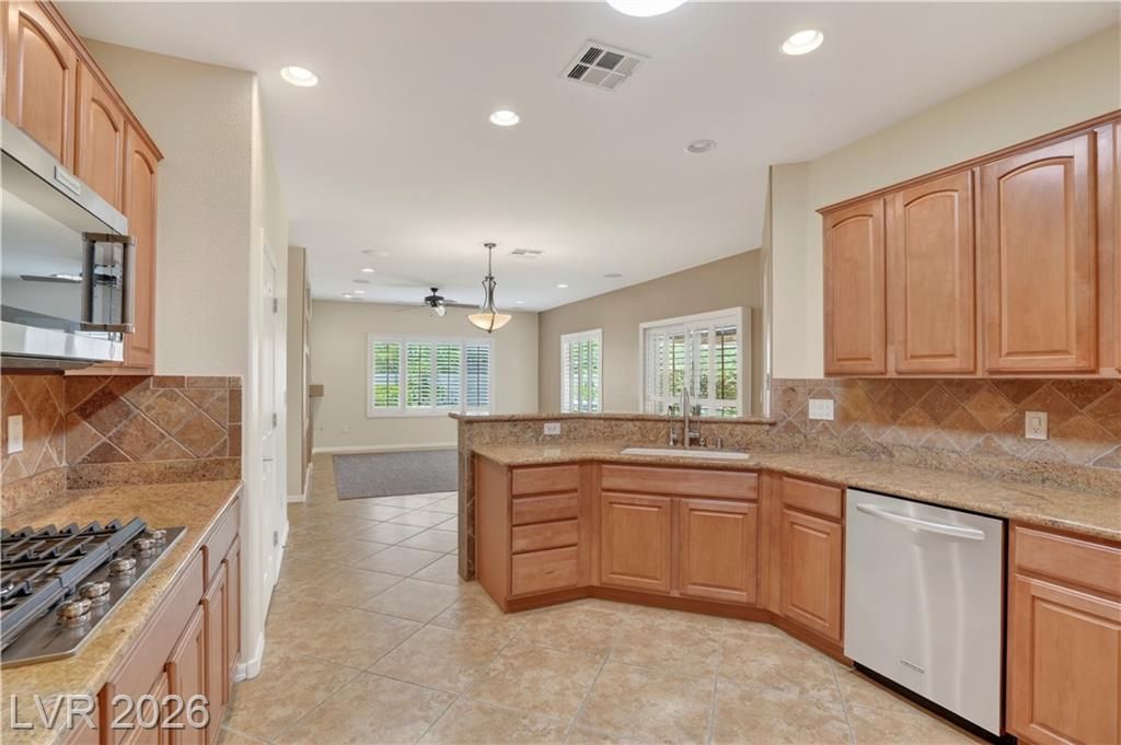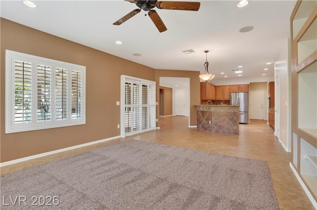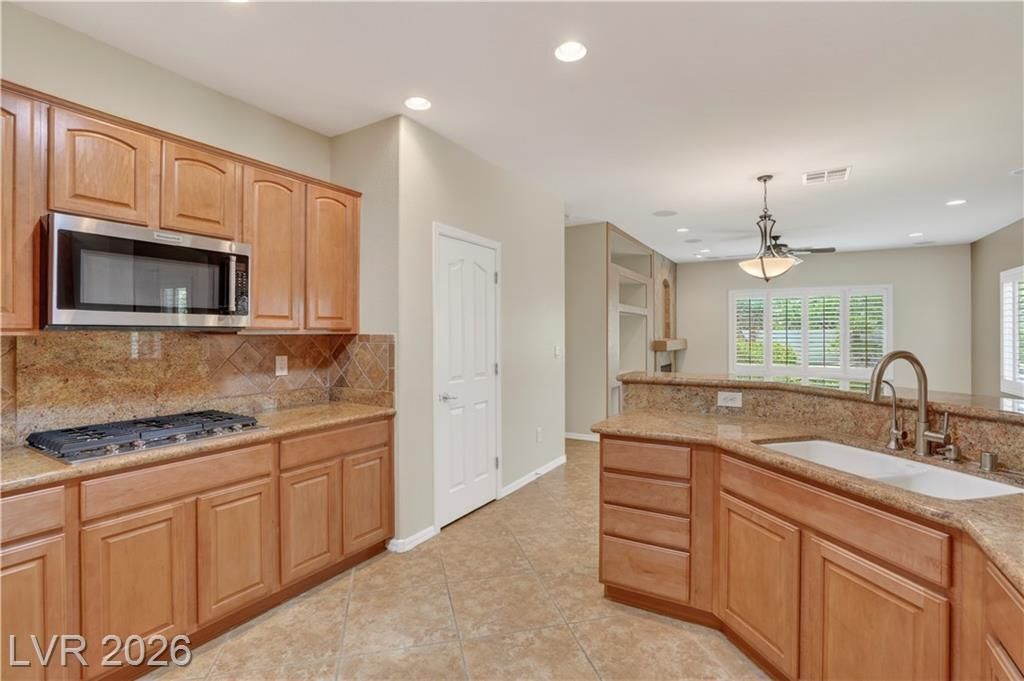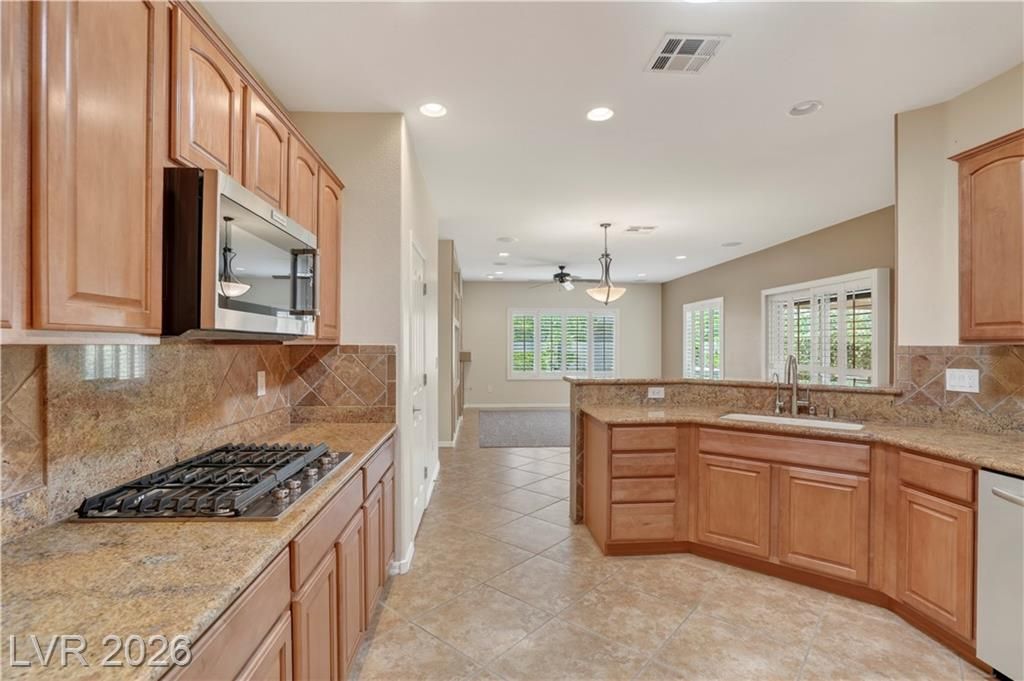 WOW!! MUST SEE - Gorgeous Upgraded Home With Stunning City Views - GOURMET KITCHEN With GRANITE COUNTERS And Tile Accents- Separate Primary With Walk-In Closet, Jacuzzi Tub & Shower - Spacious Family Room With FIREPLACE & Surround Sound - Fresh 2-Tone PAINT In & Out - New Upgraded CARPET - TILE Flooring Throughout - Window Shutters - Stainless APPLIANCES Including Fridge And Washer/Dryer - Ceiling Fans - LAUNDRY/STORAGE ROOM With Sink, Cabinets & Closet - 2 Car GARAGE With Workshop - Water Softener - Exterior Roladden Security Shutters - Paver Driveway, Walks, Patios - Extended Covered Patio - Custom Iron Security Gates - Lovely Low Maintenance Landscape With STRIP VIEWS from Front & Backyard - Plus More On NICE LOT On QUIET Street In Sun City Anthem - Abundant Community Amenities, Facilities, And More - Priced BELOW Market - You Will Not Find A Better House At This Price - Over 55 Community - BRING YOUR OFFER, This Home WILL Be Sold!