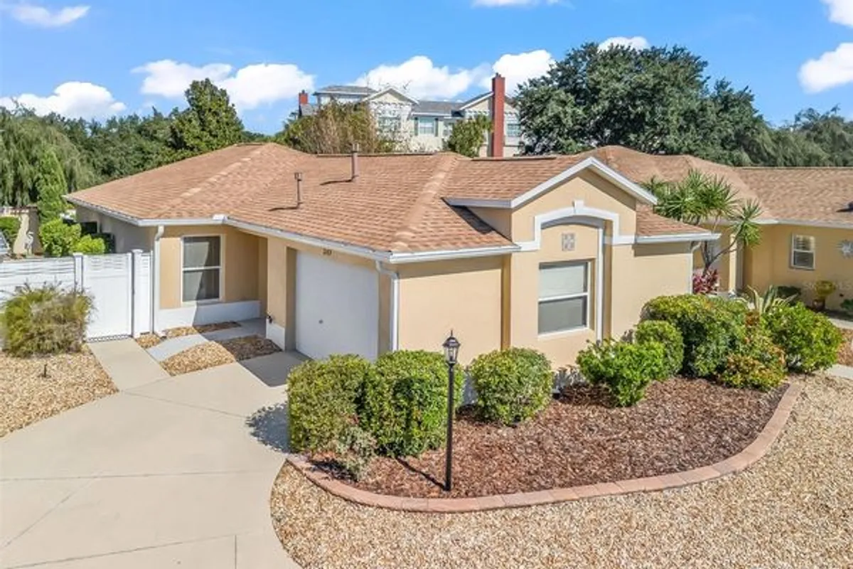 ABSOLUTELY STUNNING! NEW ROOF!! THIS ONE IS WAITING FOR YOU!! COMPLETELY RENOVATED! MOVE-IN READY 2/2 COURTYARD VILLA! HIGHLY desired LOCATION for living or rentals! This beautiful villa sits just one street over from all your favorite shopping, dining, and amenities! Enjoy UPGRADED landscaping and professional tree removal, plus brand NEW LVP FLOORING throughout—NO CARPET! Fresh/NEW interior PAINT brightens every room, and VAULTED CEILINGS create an open, airy feel. The kitchen SHINES with NEW STAINLESS STEEL appliances, plenty of cabinet space, and recessed lighting. PLANTATION SHUTTERS add an elegant touch throughout. NEW ROOF and hot water heater soon to be replaced!!! Nestled in the highly desirable Tall Trees community, this stunning 2-bedroom, 2-bathroom villa is designed for low-maintenance living. The open floor plan connects the living and dining areas seamlessly—perfect for entertaining or relaxing at home. Both bedrooms feature en-suite bathrooms, ideal for guests or family. The guest suite offers a private closet and a shower/tub combo, while the primary suite impresses with a large walk-in closet, private patio access through sliding doors, double sinks, and a spacious walk-in shower—WOW! Step outside to your covered, screened-in patio and enjoy a low-maintenance, fully fenced backyard—perfect for privacy, pets, and outdoor living. LOW BOND BALANCE! Don’t miss your chance to own this beautifully updated home in one of The Villages’ most convenient locations. Schedule your private tour today!