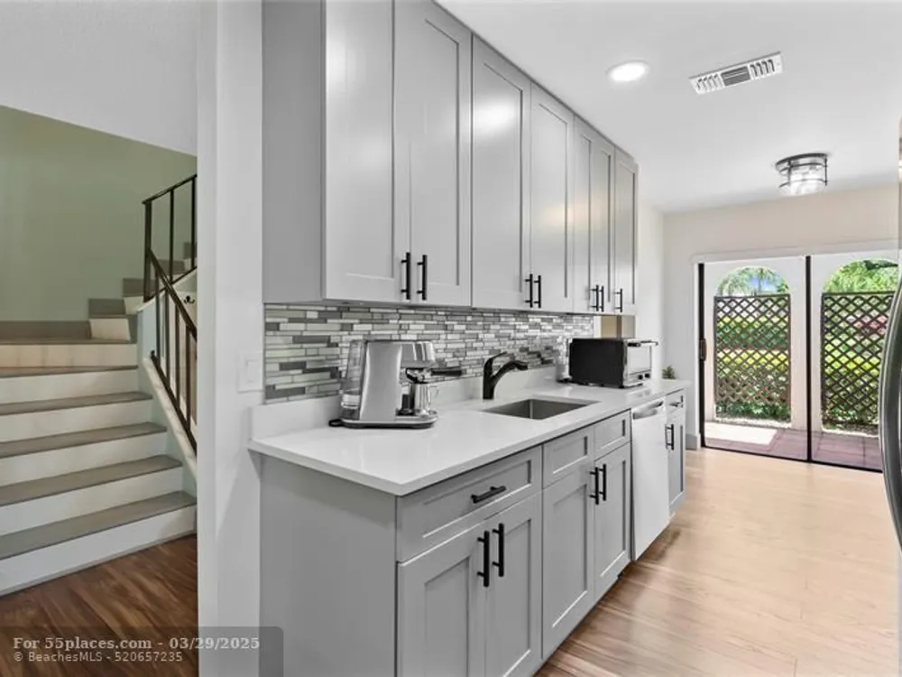 Stunning 2/2.5 Condo in Gated Boca Lago Community – All Ages Welcome! This fully renovated first-floor condo offers modern living in a peaceful, golf course community. Located in the desirable Boca Lago, this home features a beautifully updated interior with shaker kitchen cabinets, quartz countertops, and sleek stainless steel appliances. Both full bathrooms have been tastefully remodeled with new tile in the showers, glass shower doors, new vanities, lighting, and fixtures. The spacious primary bedroom boasts a generous walk-in closet for ample storage. Enjoy the convenience of a full-size washer and dryer, plus a serene private patio perfect for relaxing. Situated in a quiet golf course community, membership is optional. Don’t miss the chance to own this move-in-ready home!